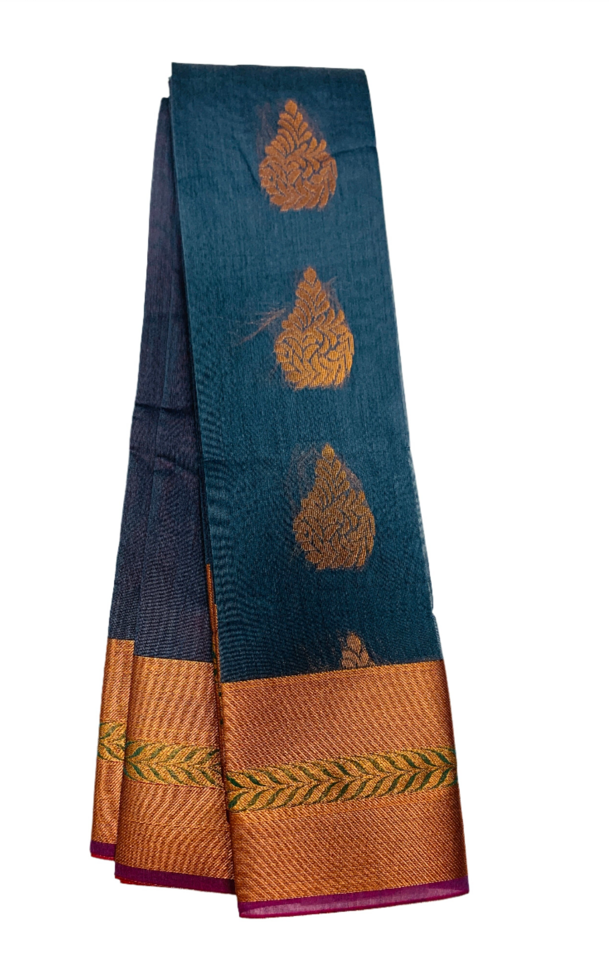 Gray Shade Silk Cotton Saree with Copper Zari Border
