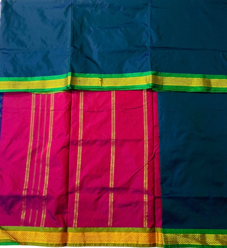 9 yards Pure Vegan Silk Saree Green Colour with Golden Border.