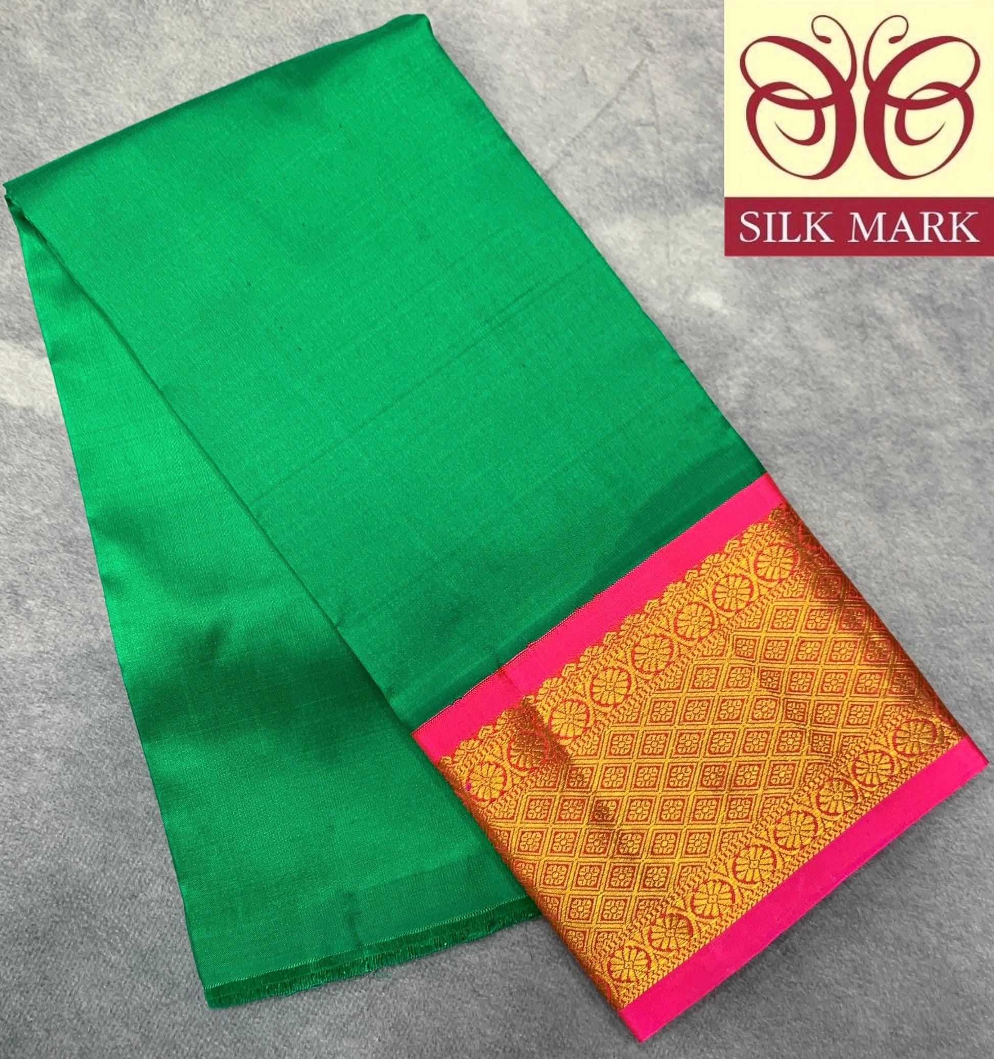 Green Shade with Pink Contrast Border Pure Kanchipuram Pattu Pavadai Material for Kids Age Newborn to 2 Years