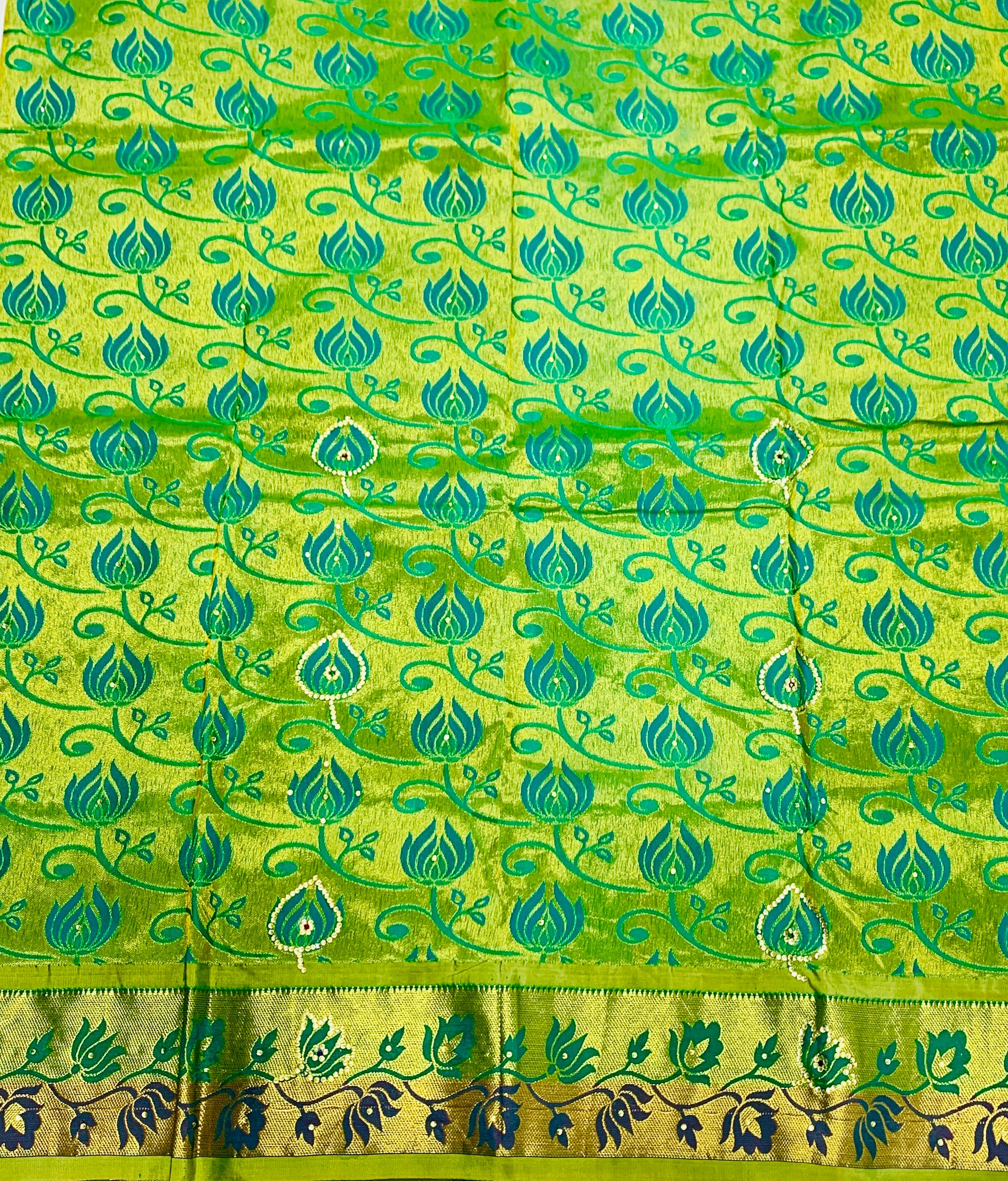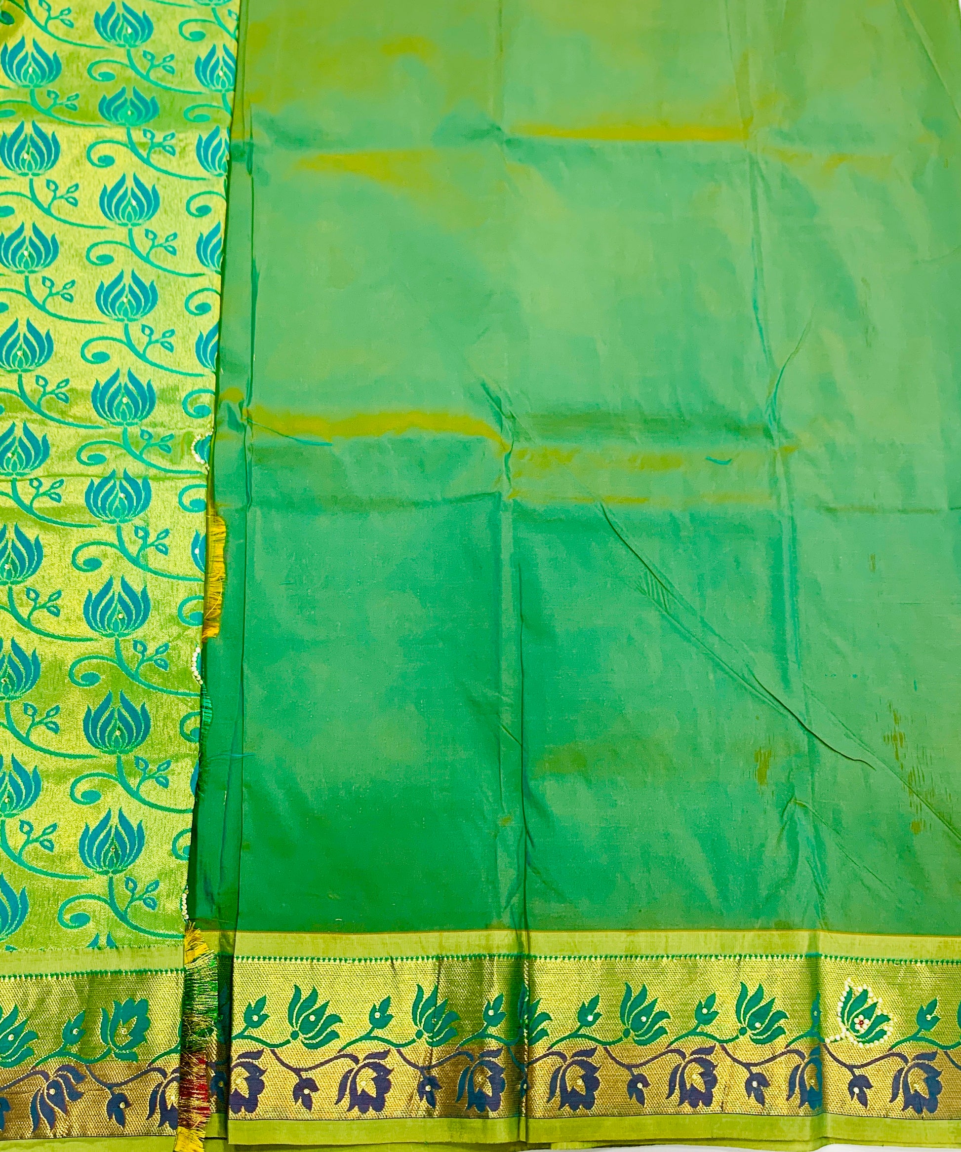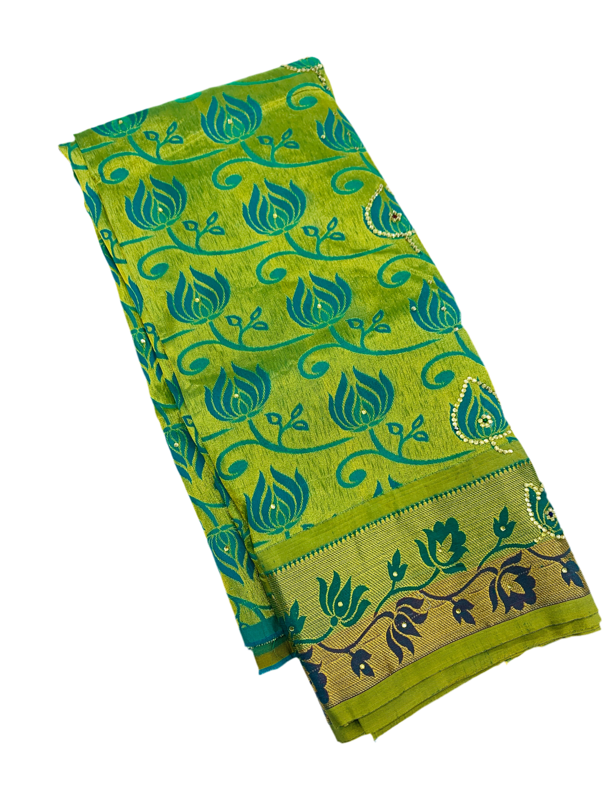 Blouse : Golden and Green border with Floral Design