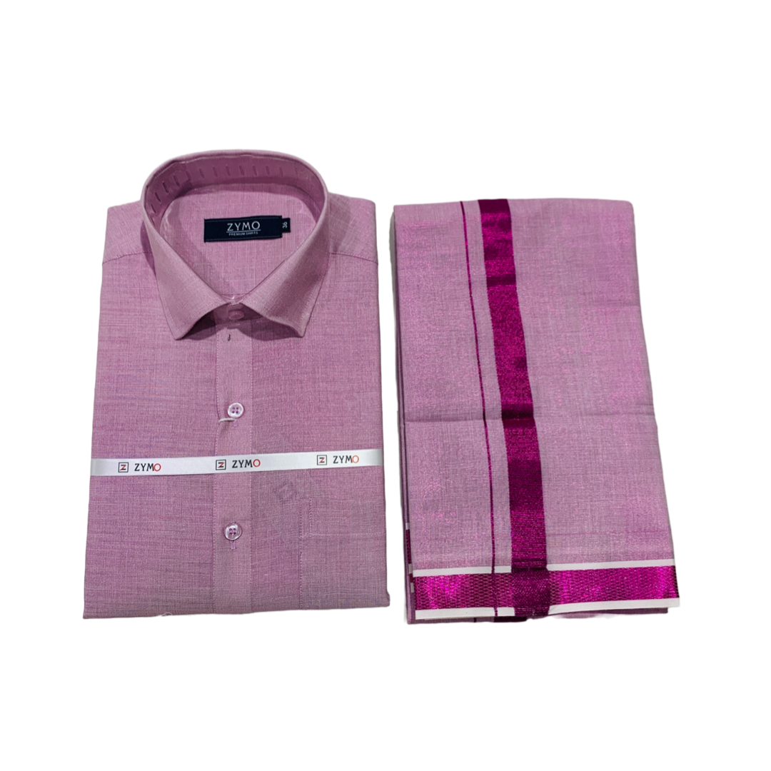 Pink Colour Cotton Dhothi and Shirt.