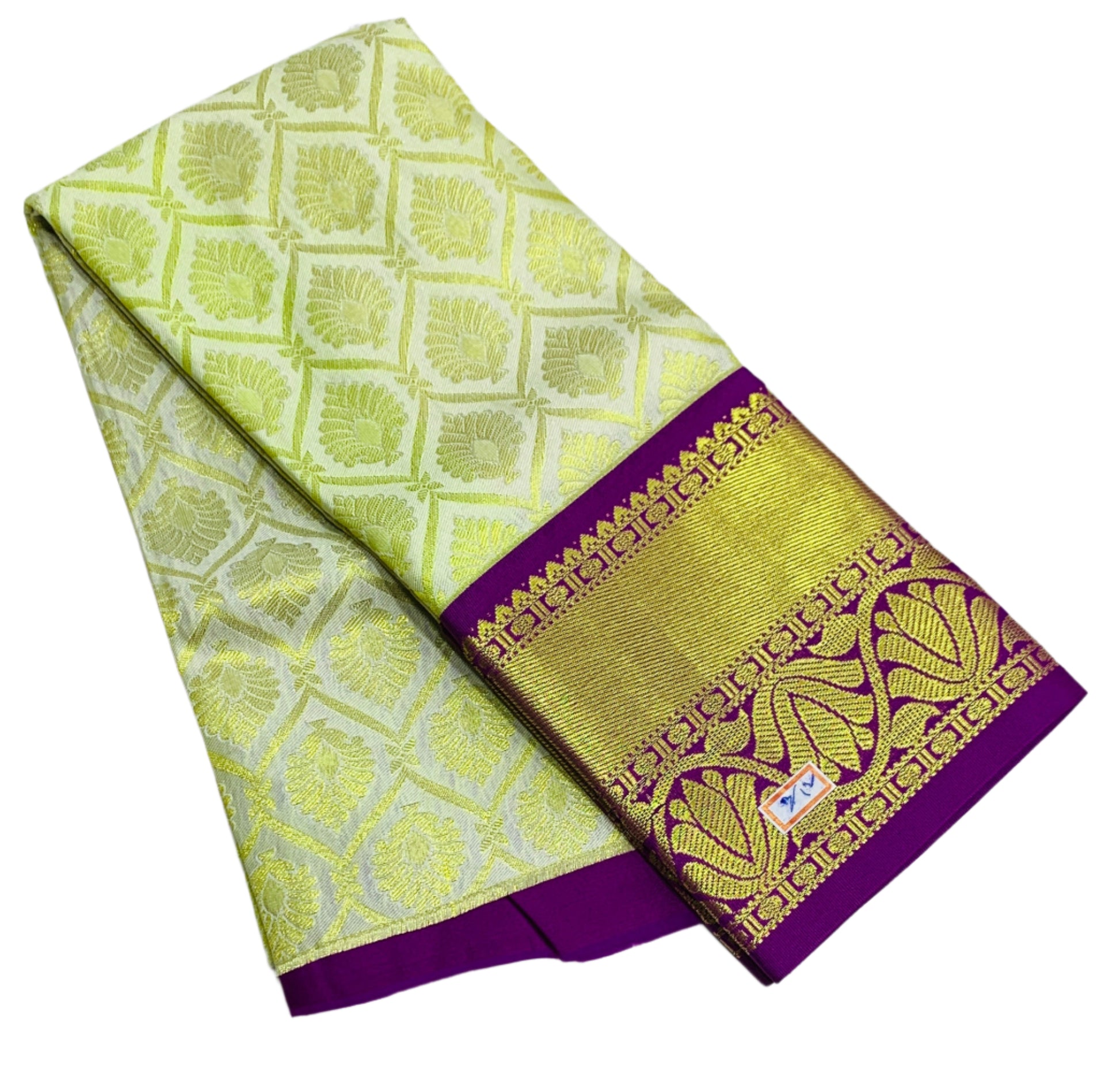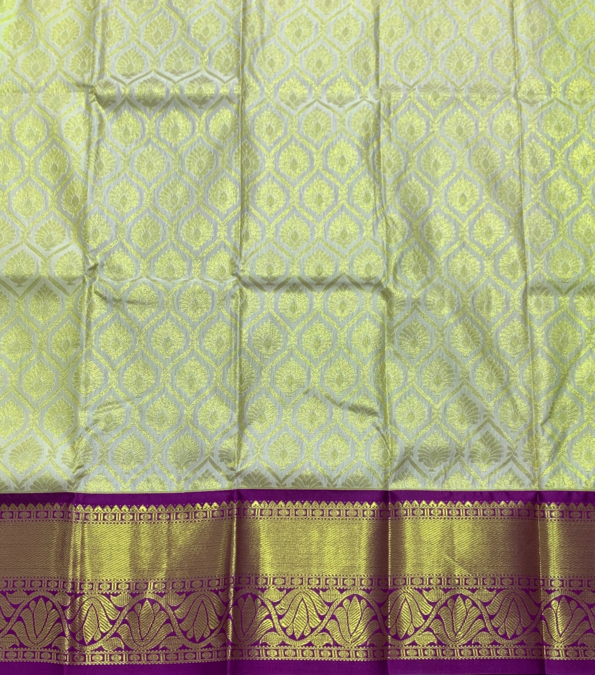 Ivory Shade with Contrast Border Vegan silk unstitched Pattu Pavadai material for kids age 2 to 5