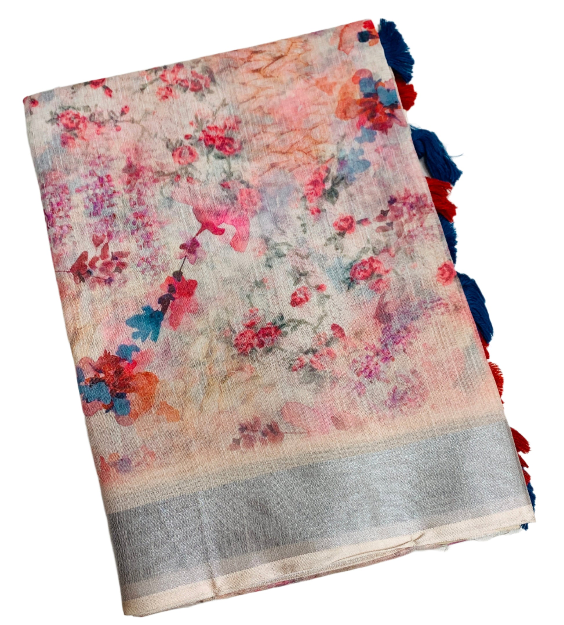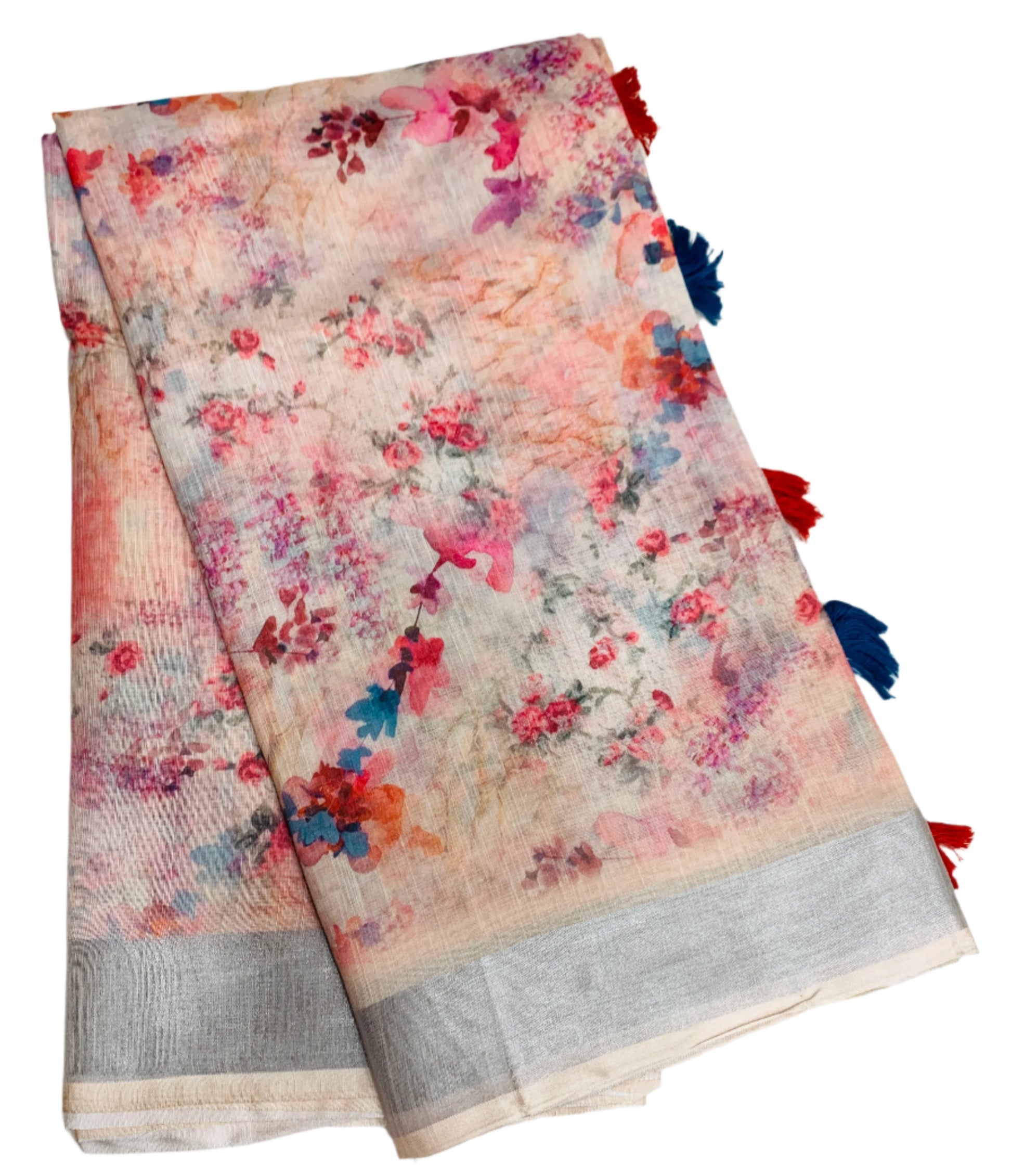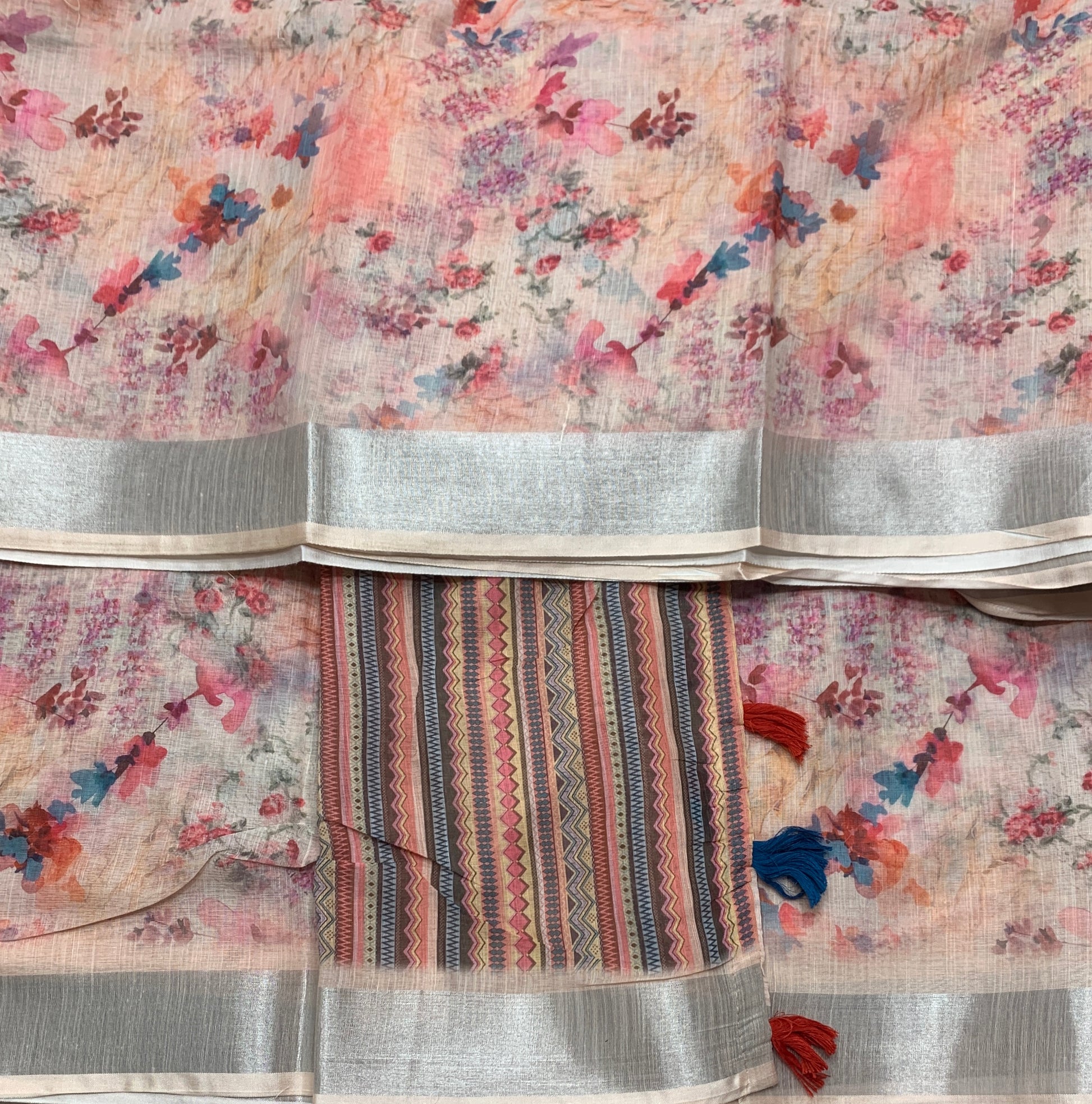 Jute Cotton Saree Baby Pink Shade with Thread Border.Light weight and easy to drape.
