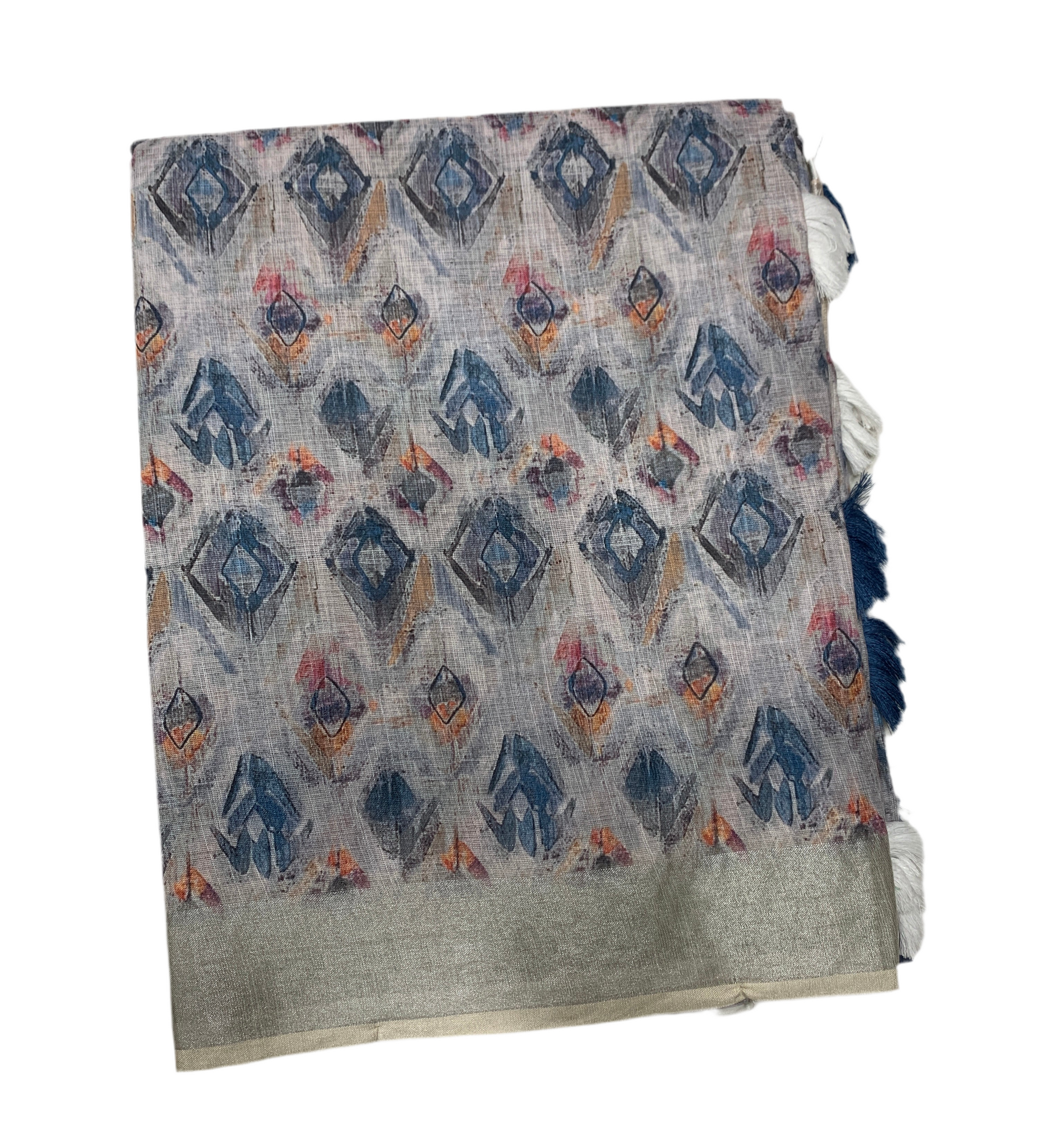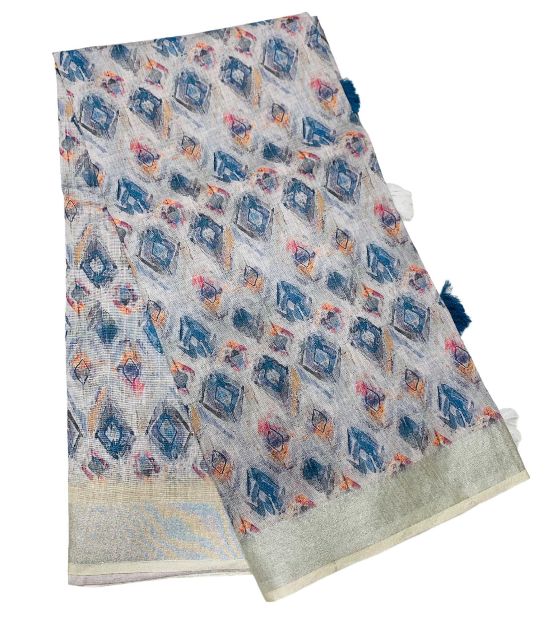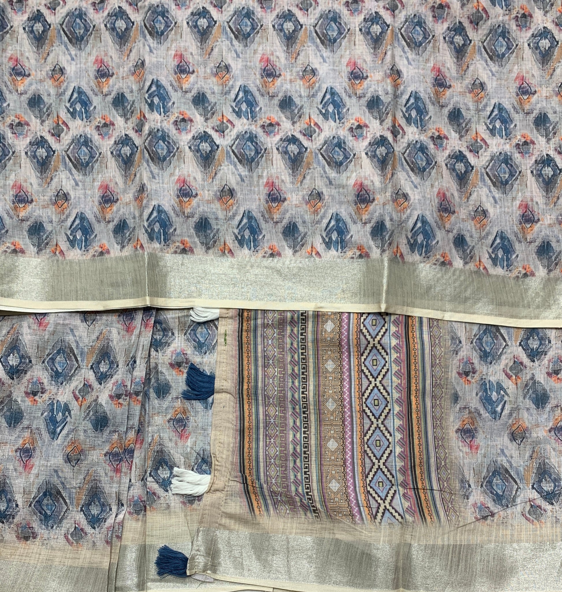 Jute Cotton Saree Light Off White Shade with Thread Border.Light weight and easy to drape.