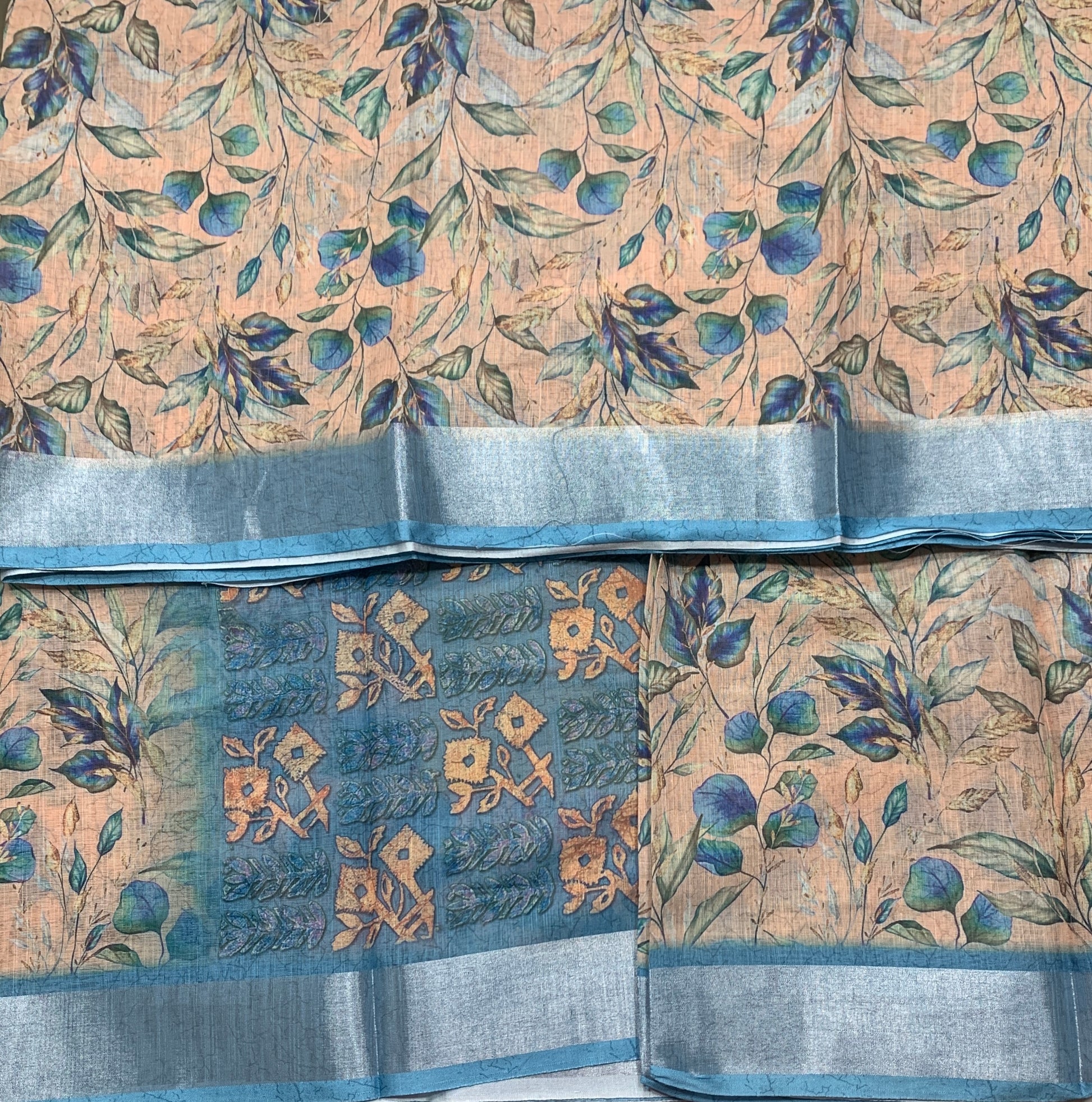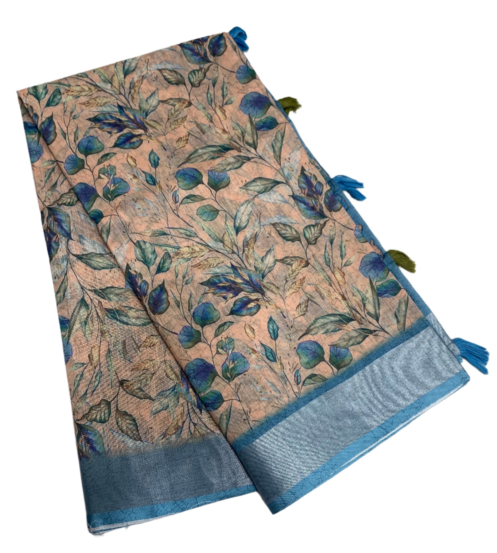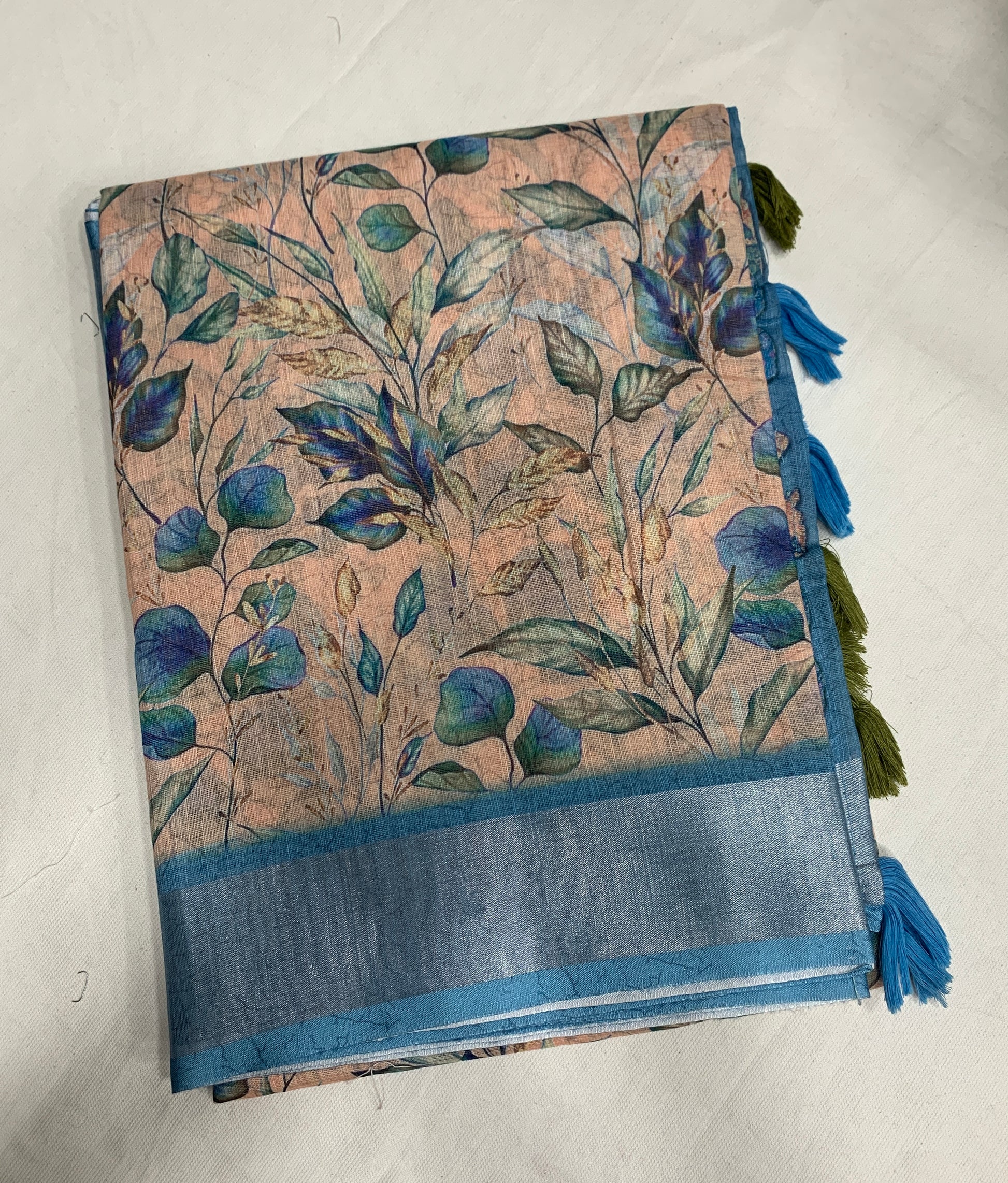Jute Cotton Saree Light Peach Shade with Thread Border.Light weight and easy to drape.