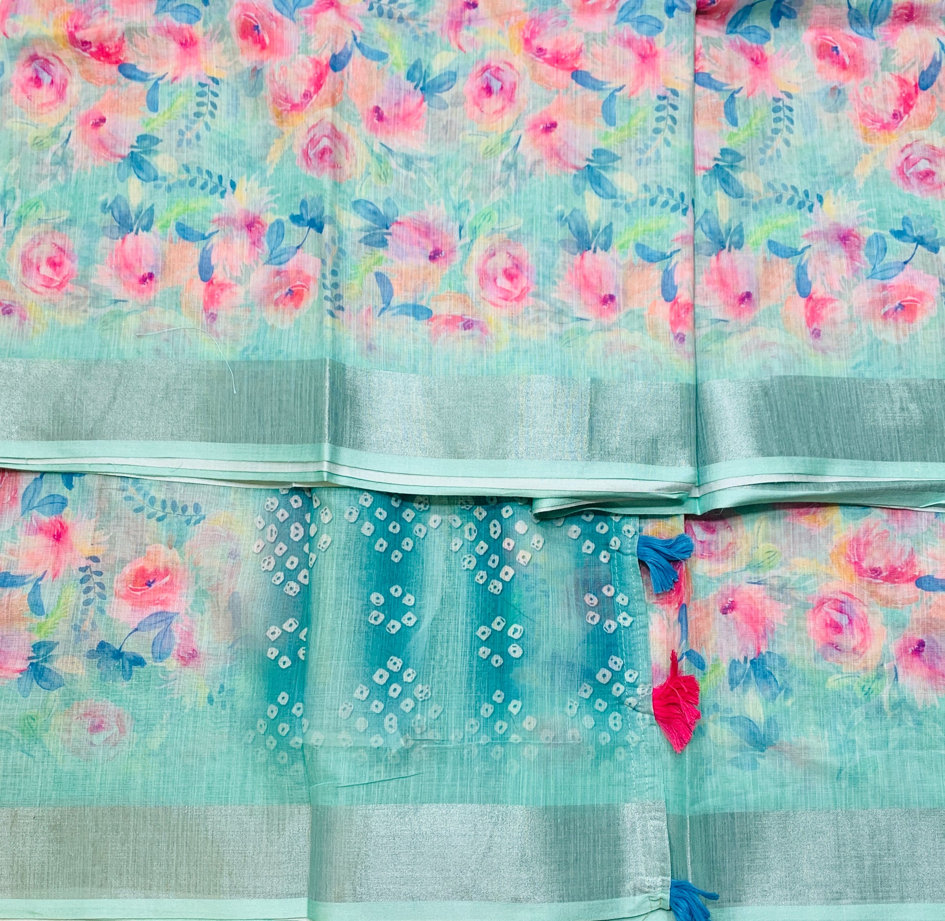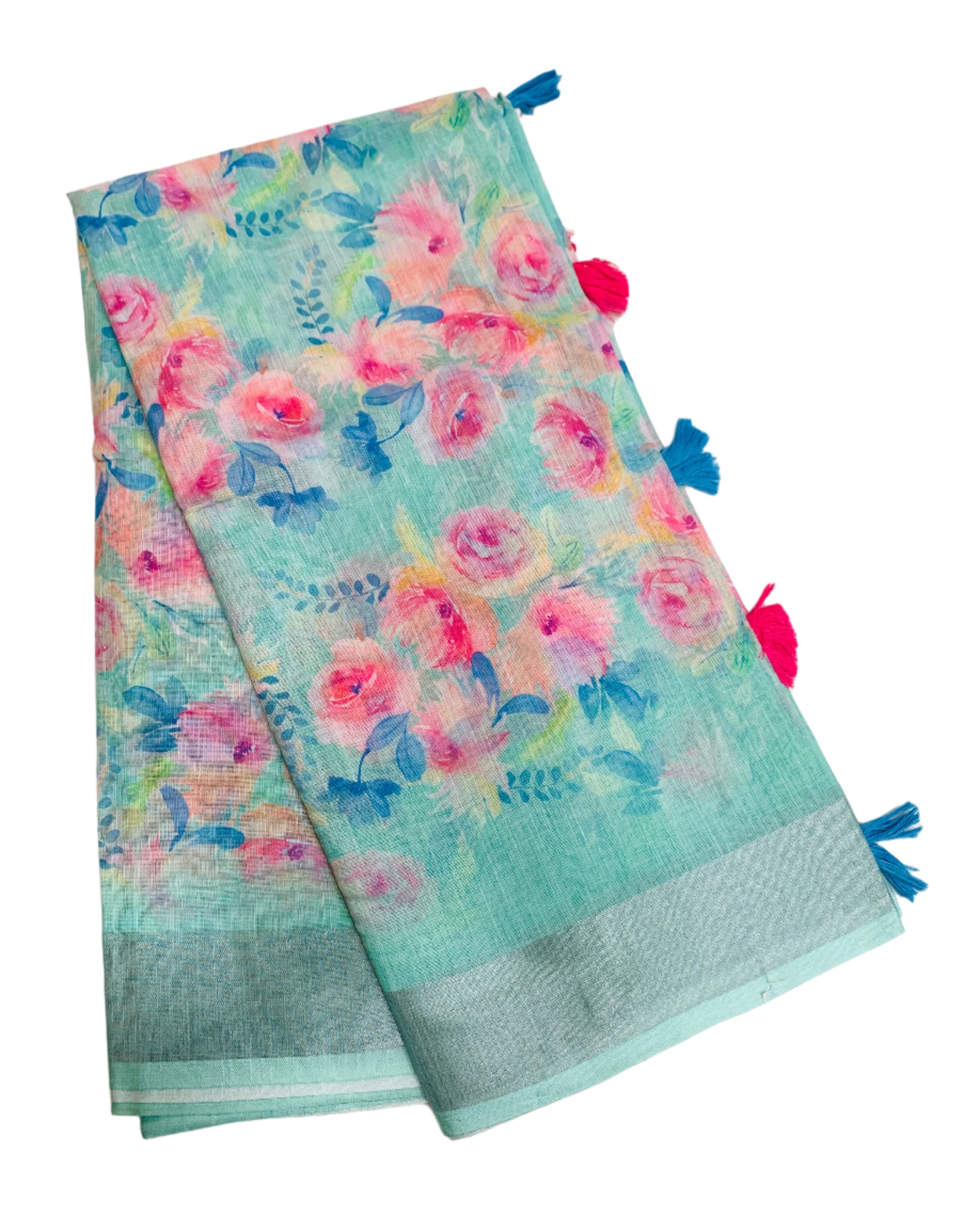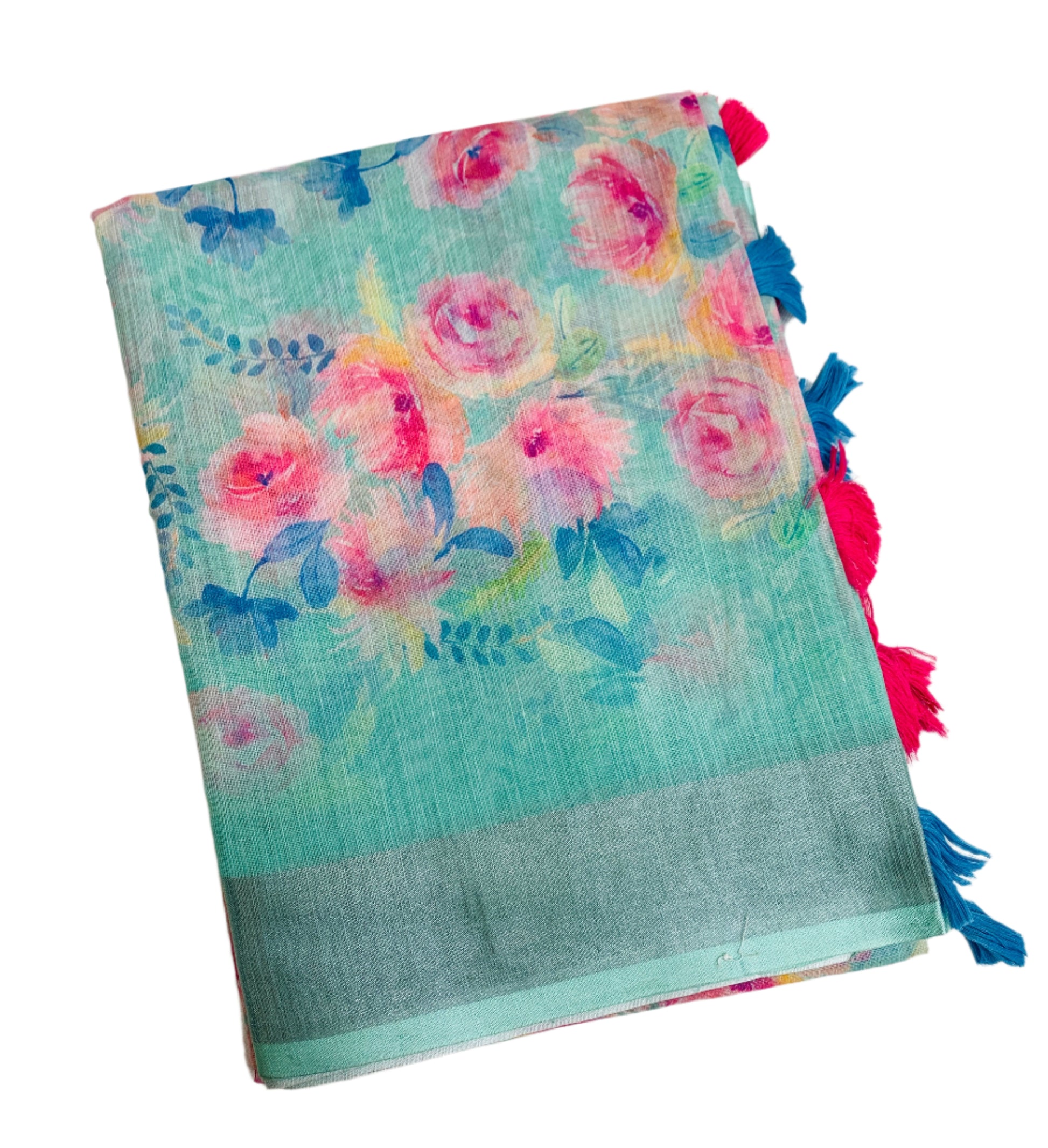 Jute Cotton Saree Mint Green Shade with Thread Border.Light weight and easy to drape.