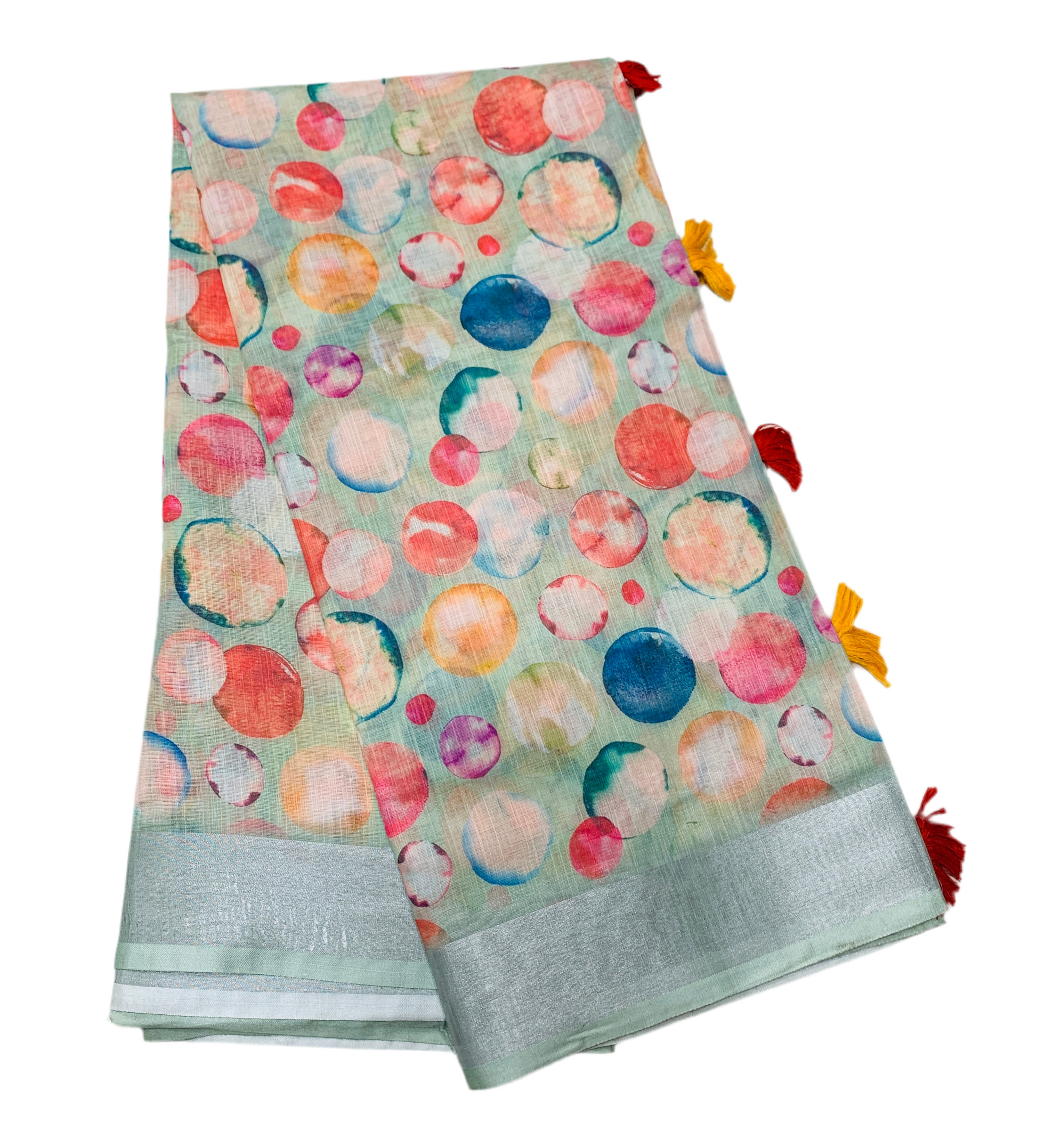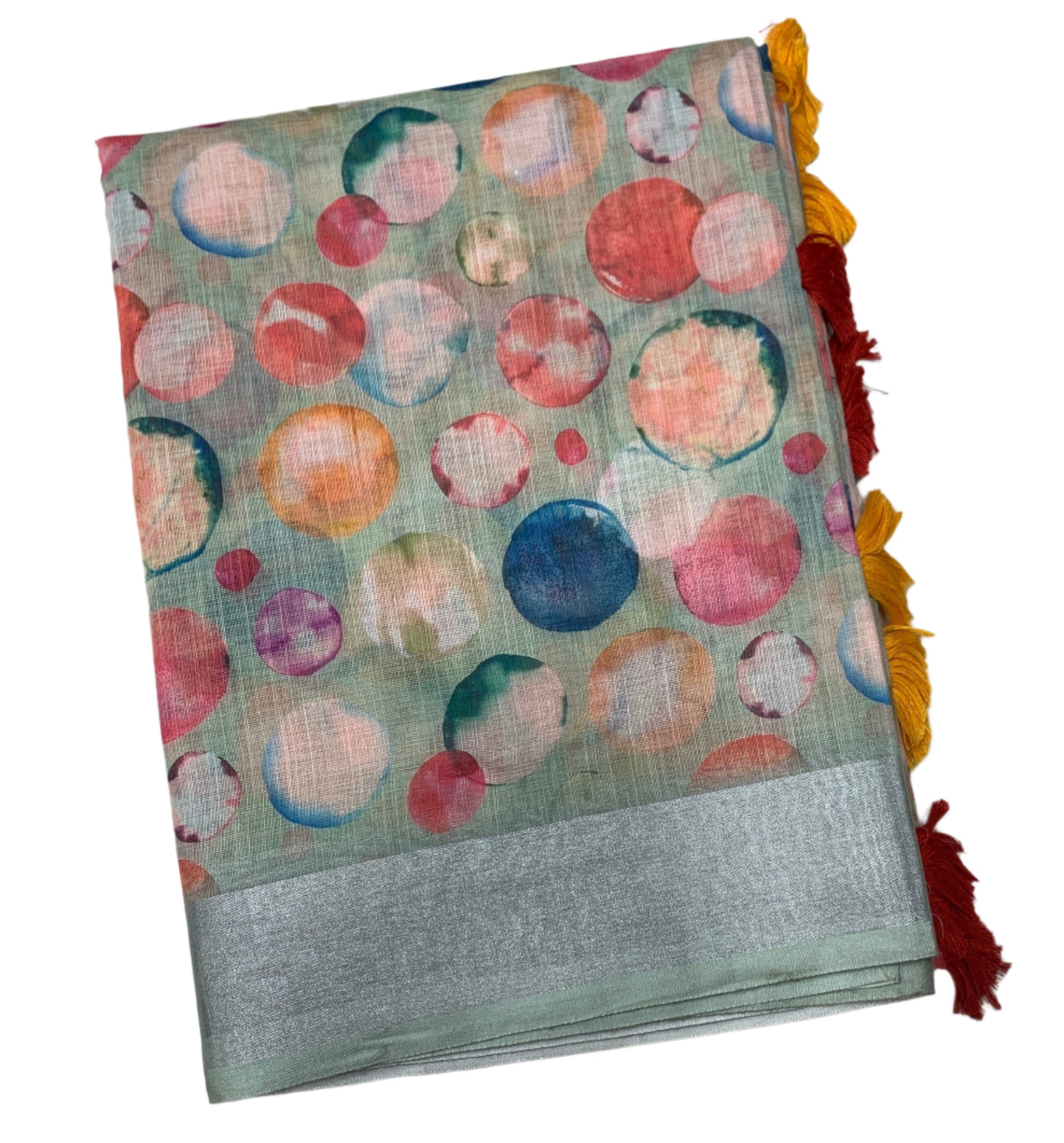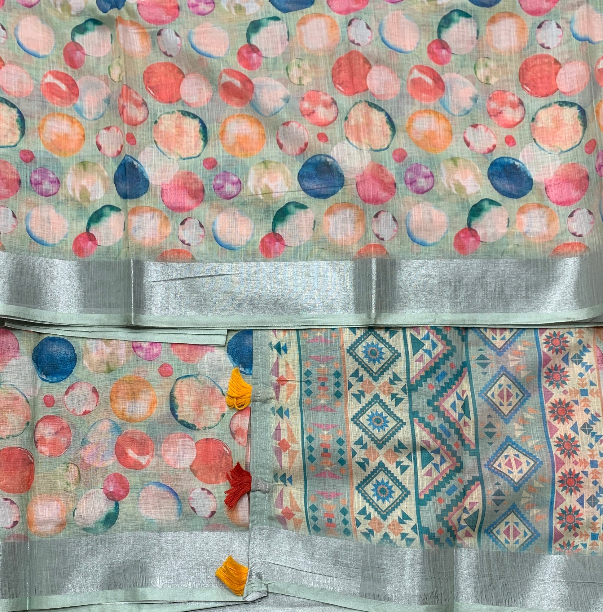 Jute Cotton Saree Mint Green Shade with Thread Border.Light weight and easy to drape.
