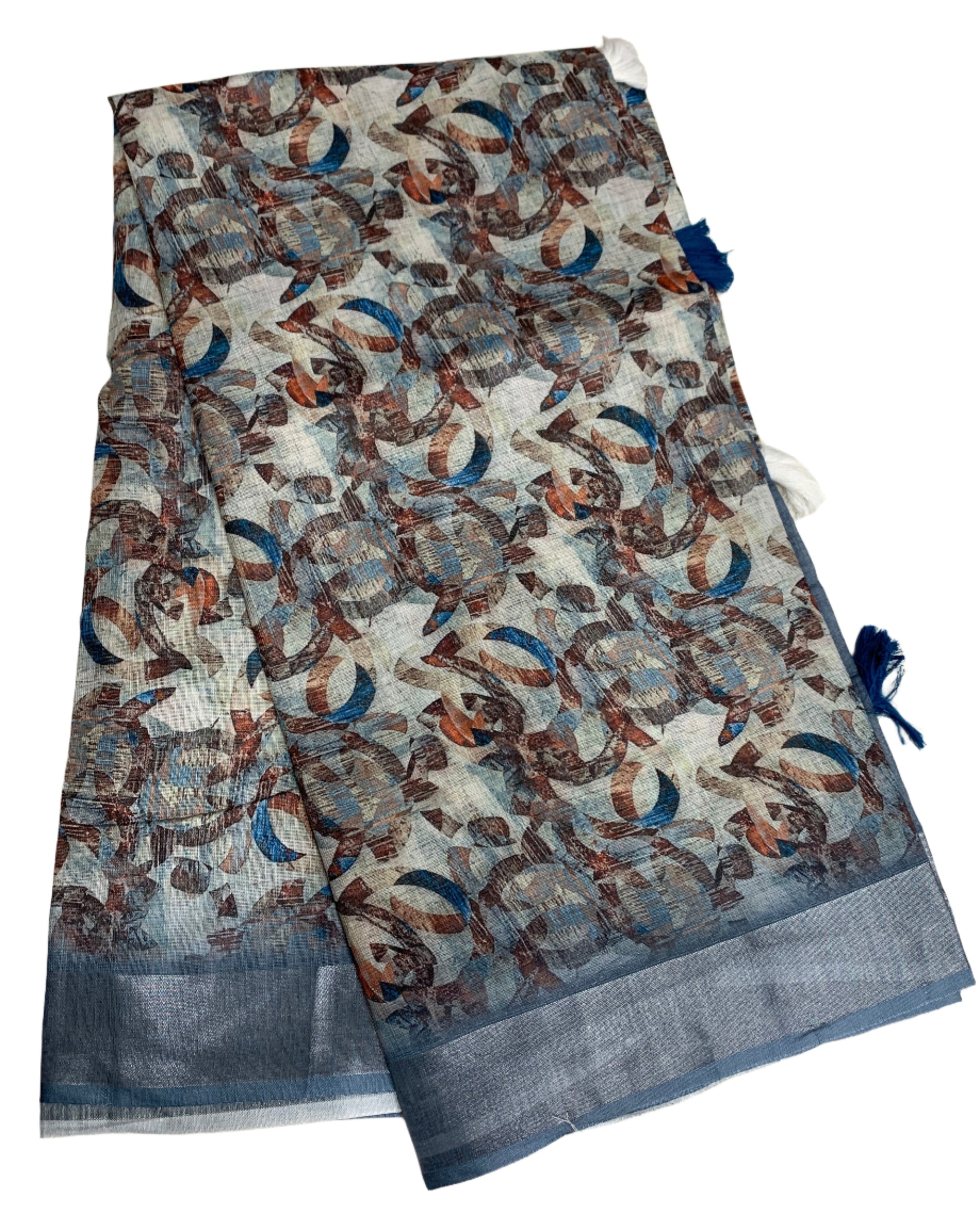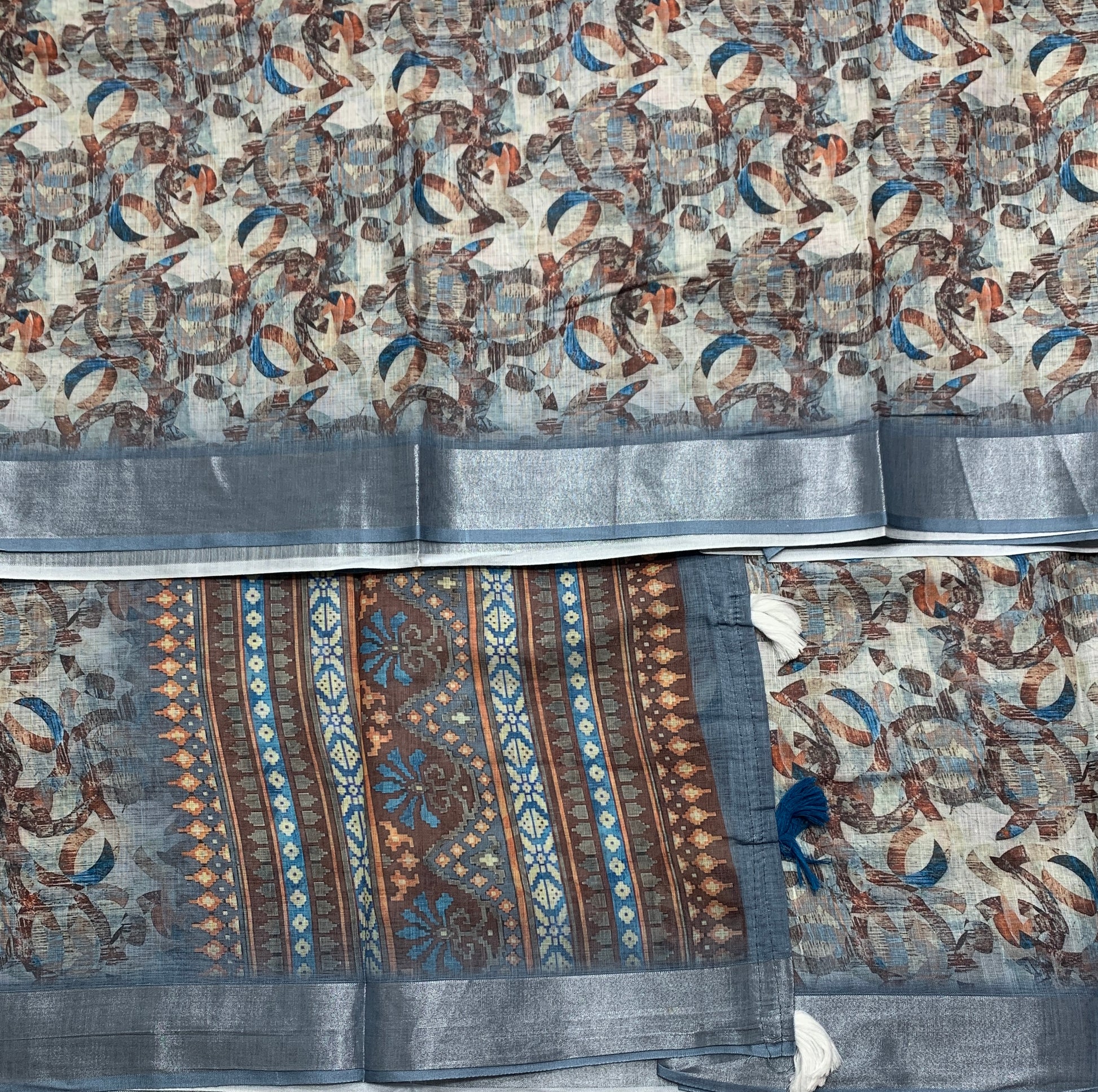Jute Cotton Saree Tussar Shade with Thread Border.Light weight and easy to drape.
