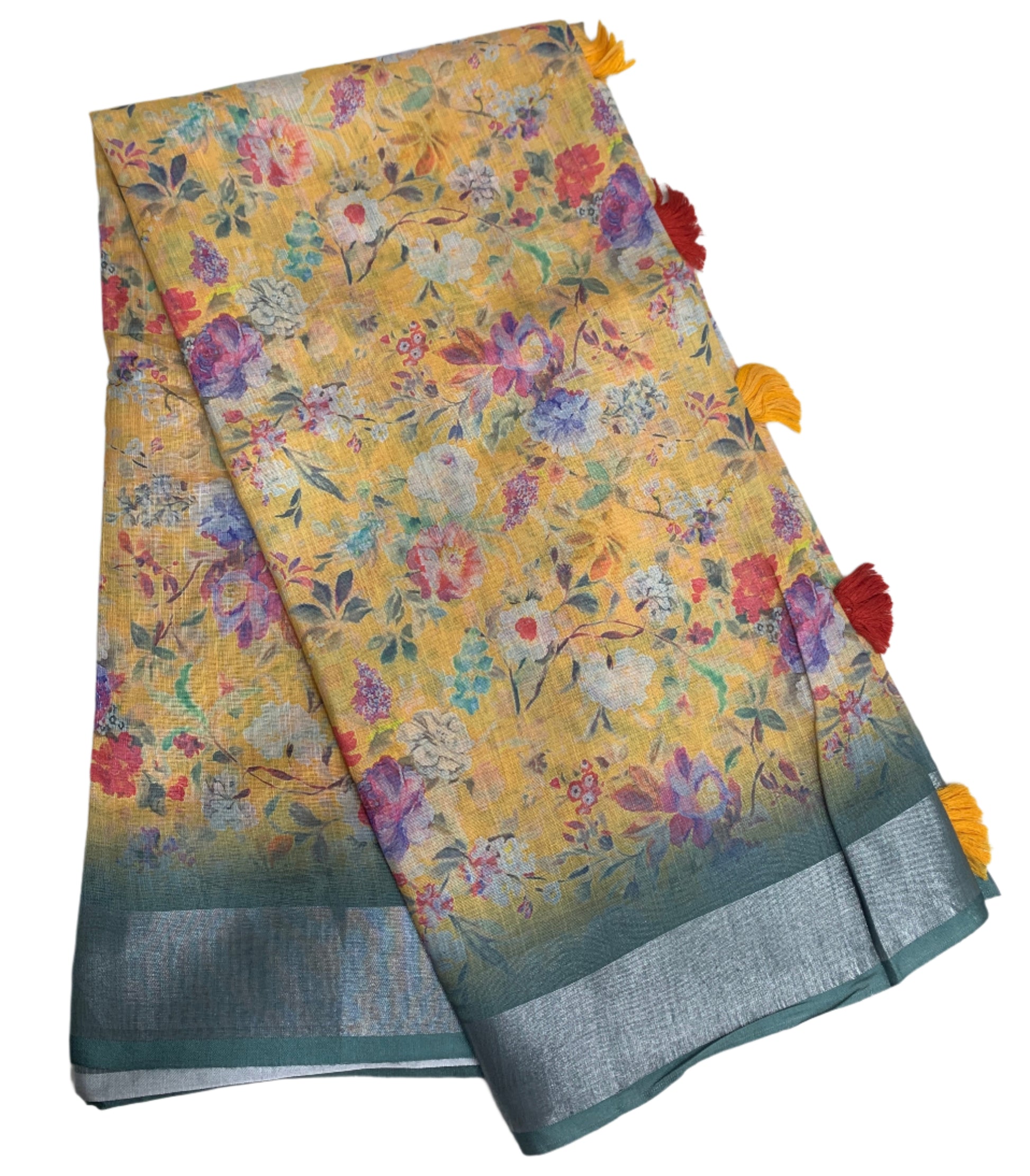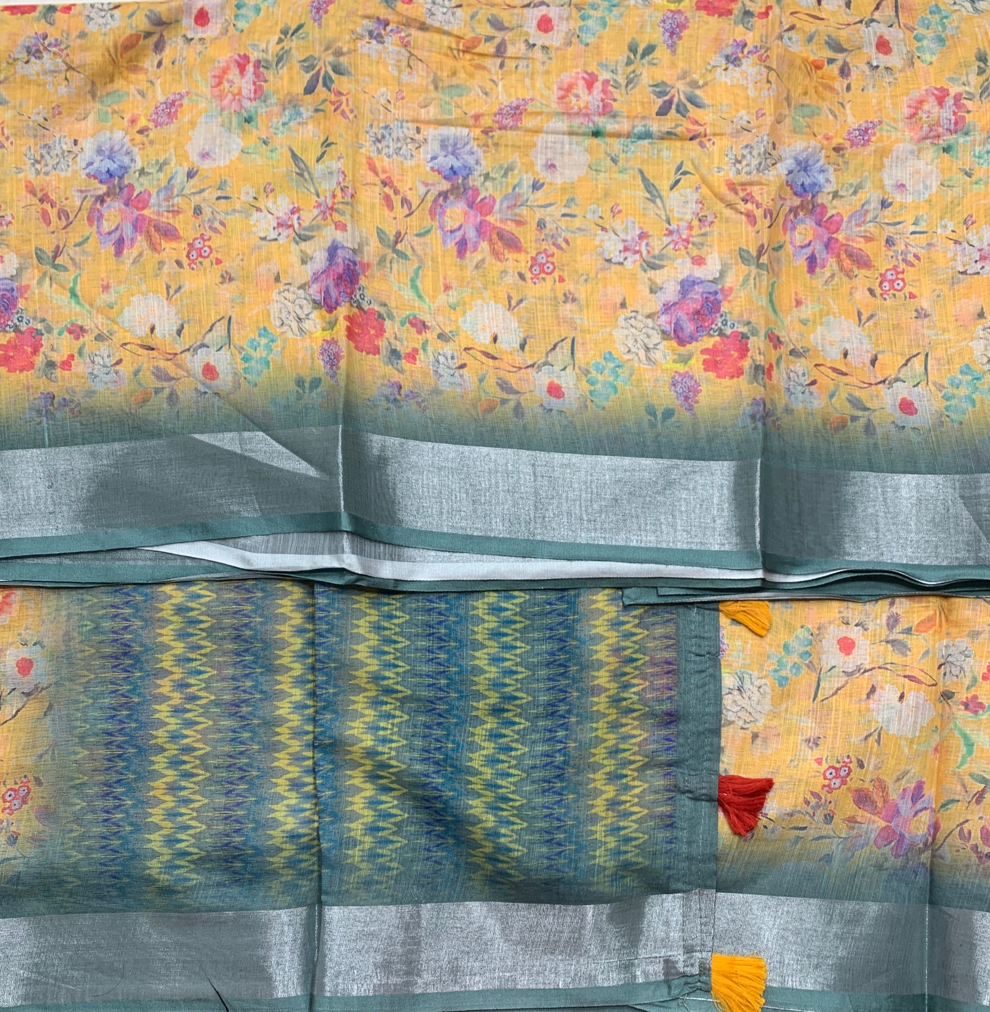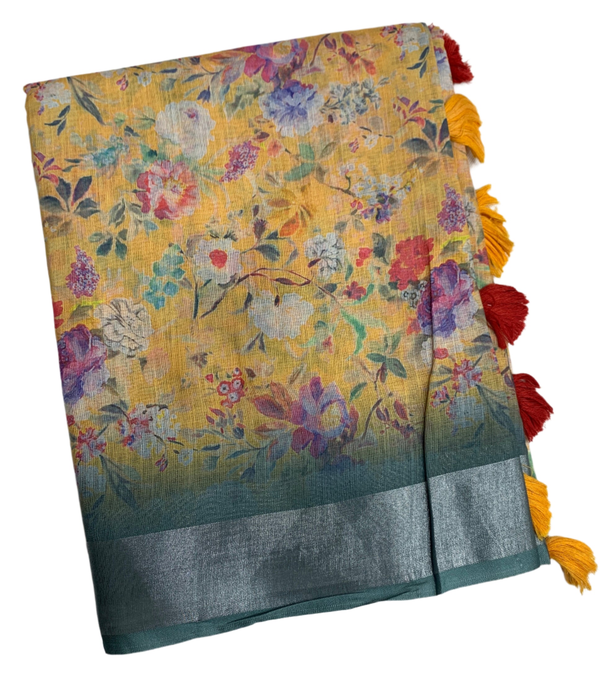 Jute Cotton Saree Yellow Shade with Thread Border.Light weight and easy to drape.