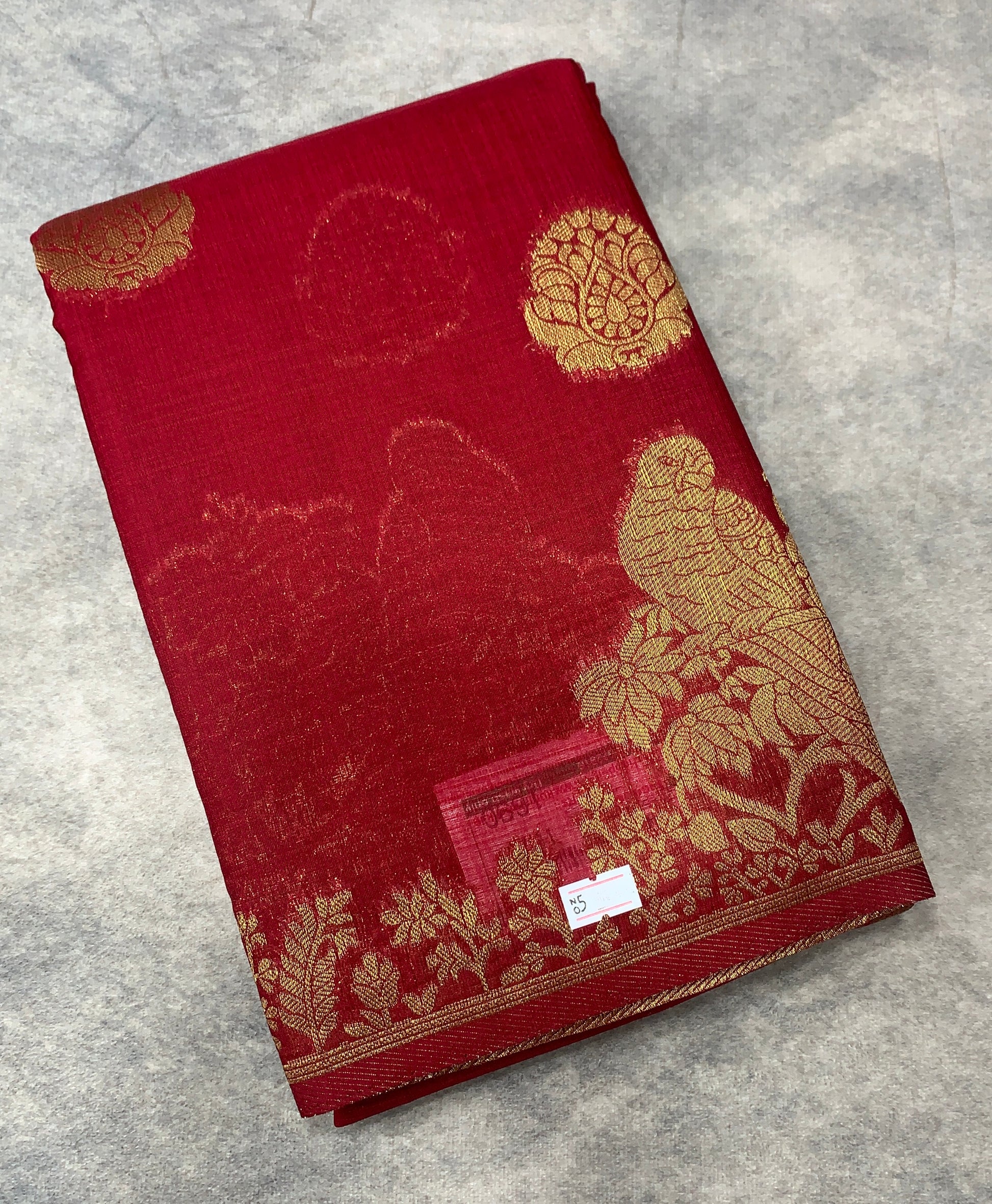 Kora Silk Saree Red Colour with Flower and Parrot Design Border