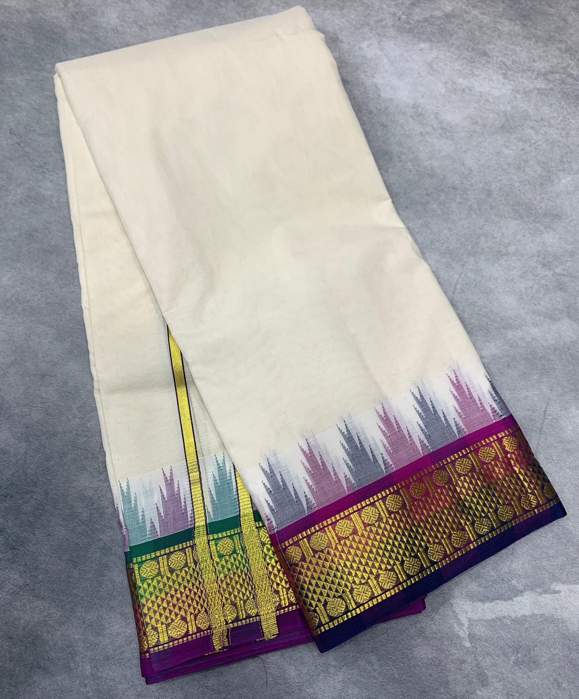 9X5 Korvai Cotton Dhoti Half White Colour with Multi Colour Border