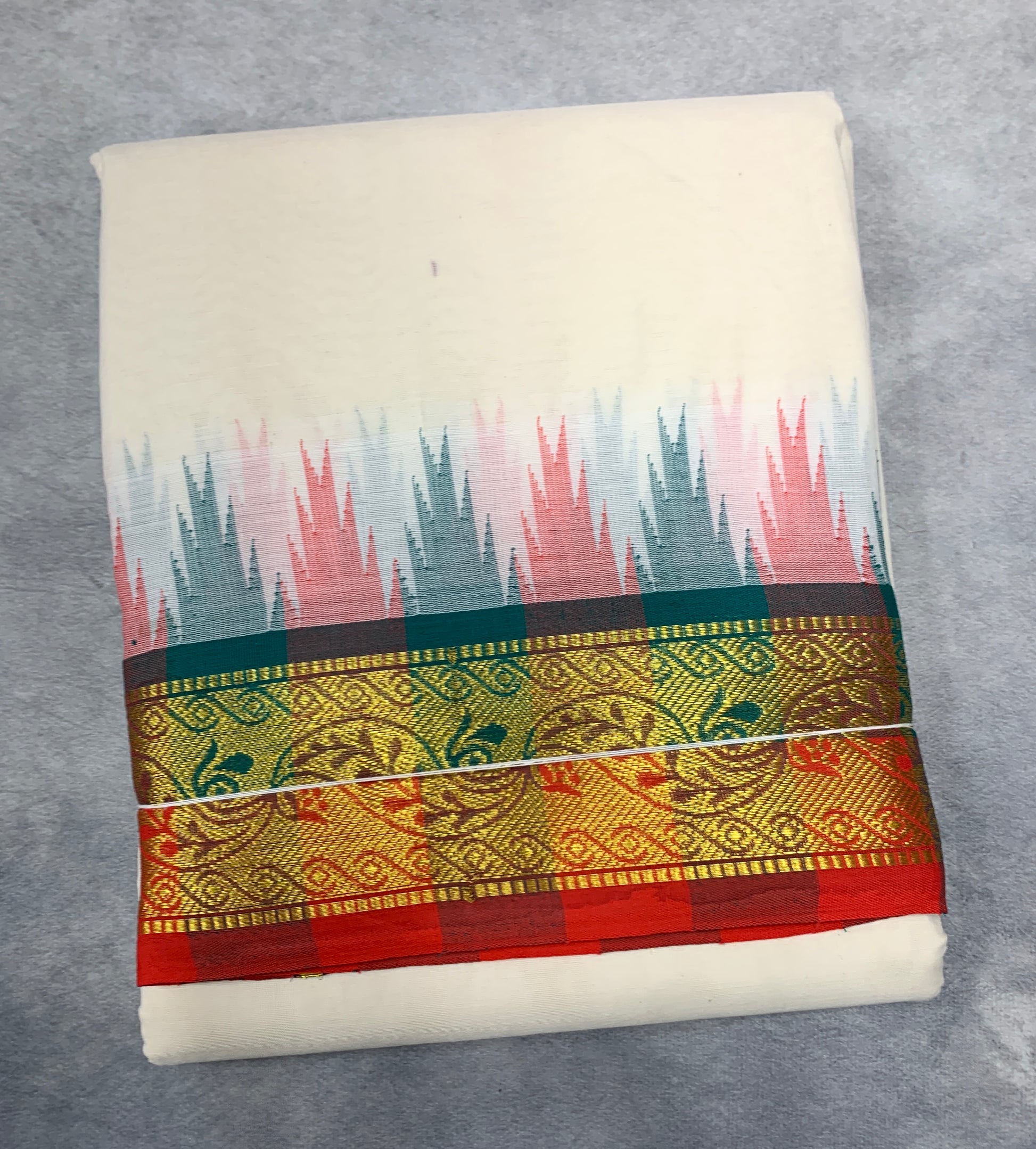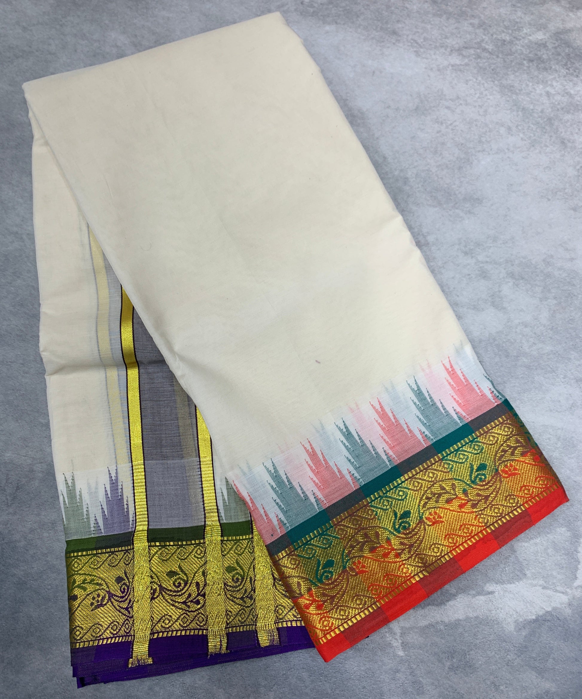 9X5 Korvai Cotton Dhoti Half White Colour Multi Colour Border.