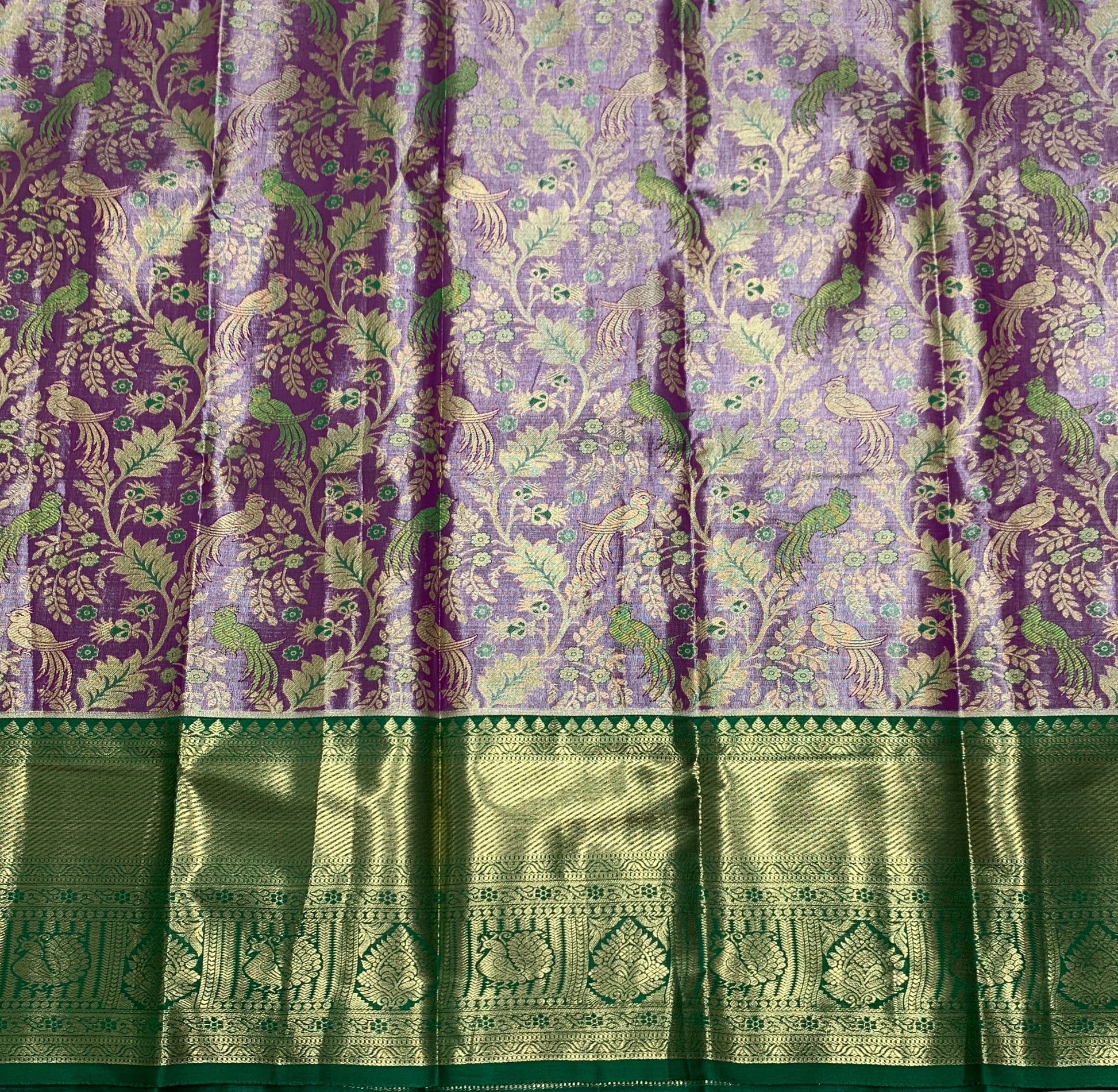 Lavender Shade with Contrast Border Vegan silk unstitched Pattu Pavadai material for kids age 2 to 5