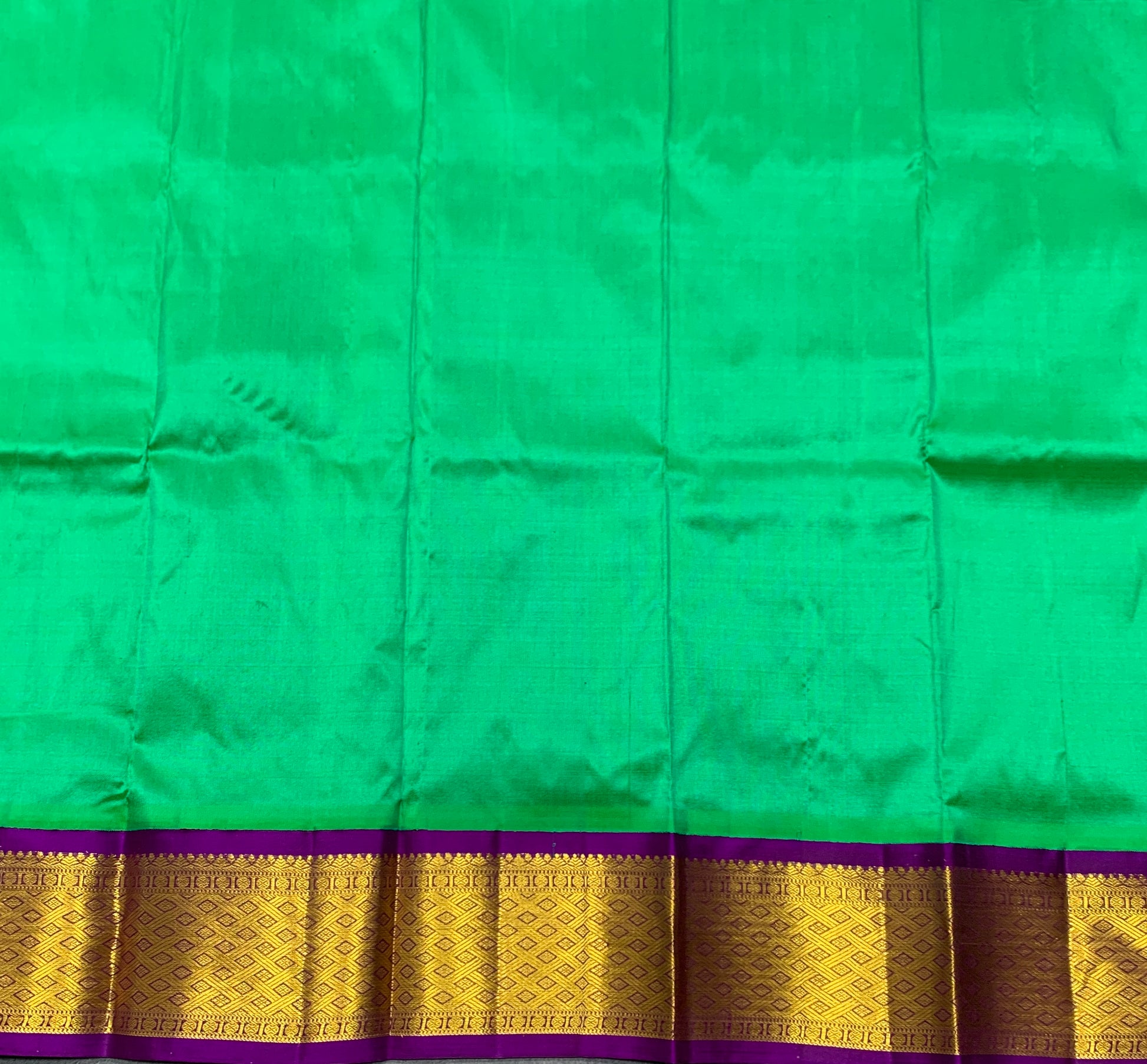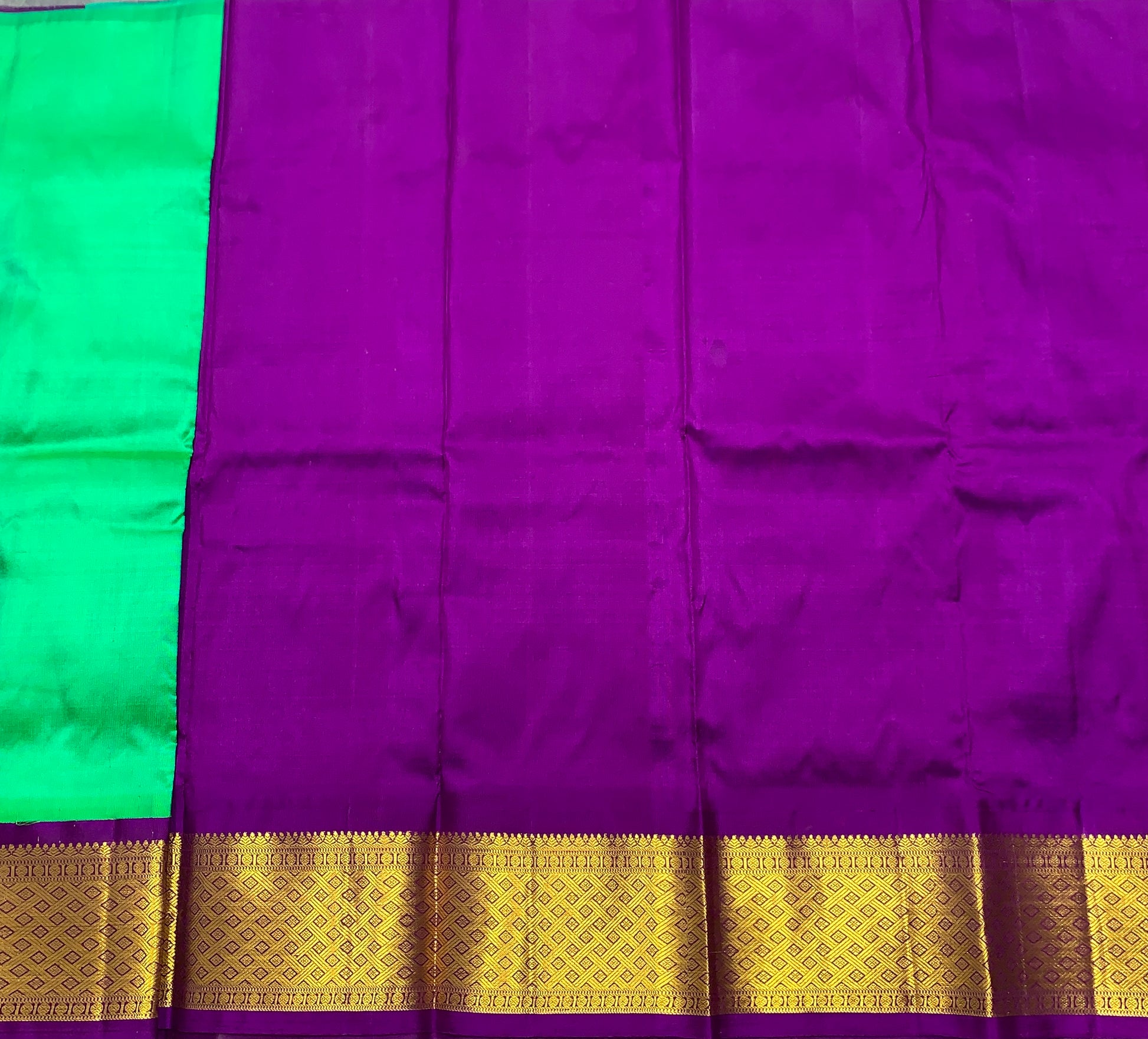 Light Green Shade with Pink Contrast Border Pure Kanchipuram Pattu Pavadai Material for Kids Age Newborn to 2 Years