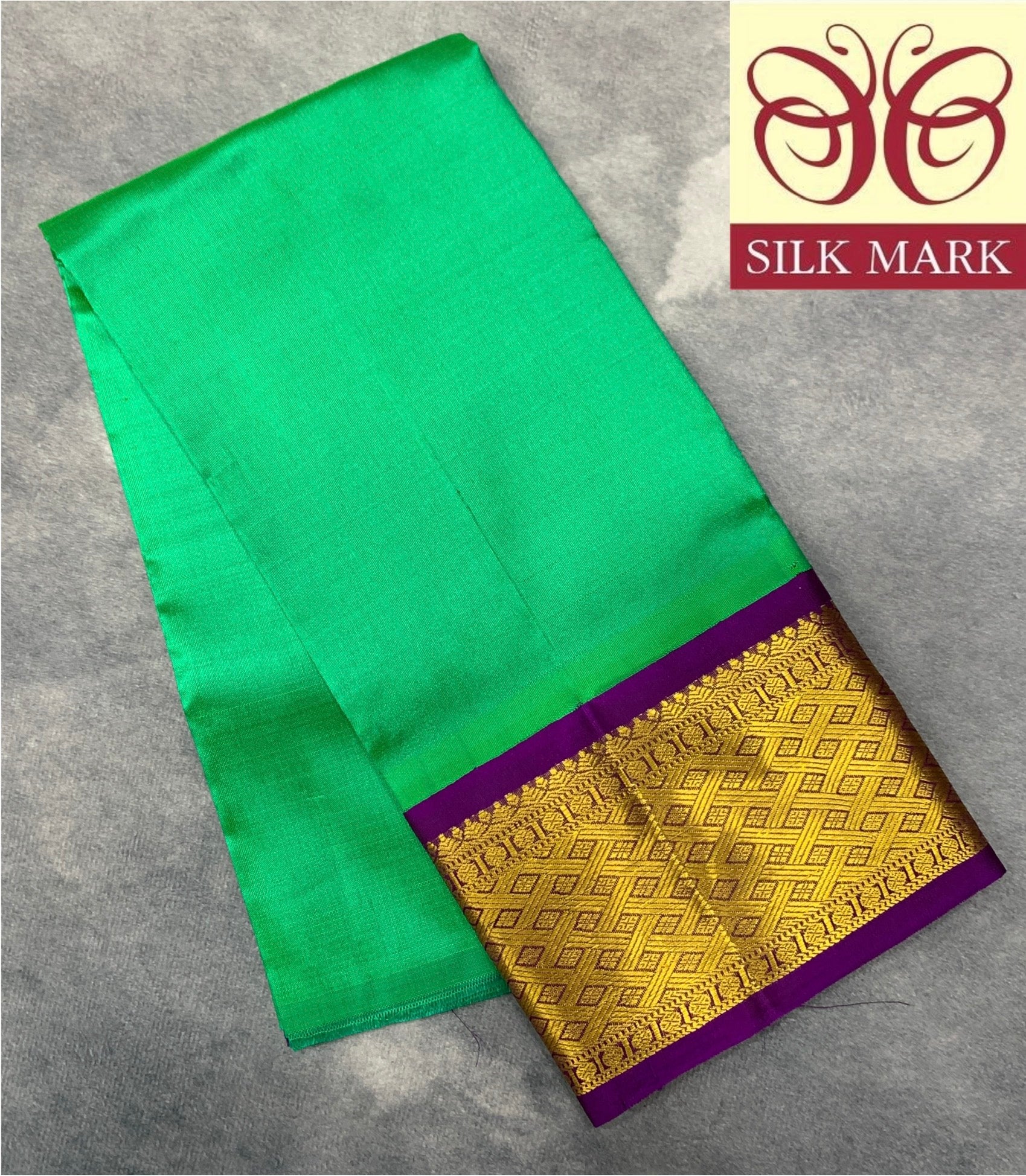 Light Green Shade Pure Kanchipuram Kids Pattu Pavadai with Contrast Border for Newborn to 2 Years