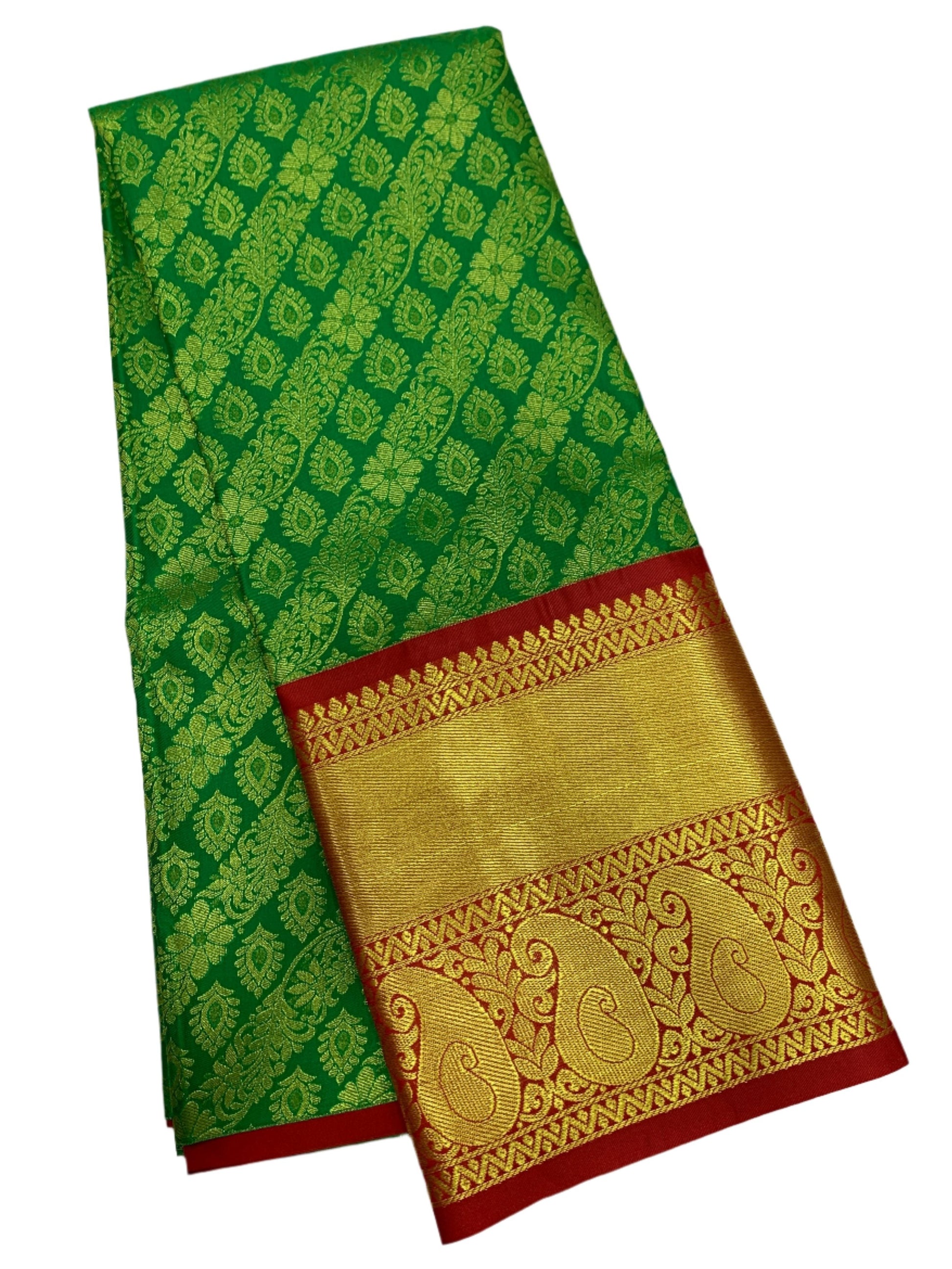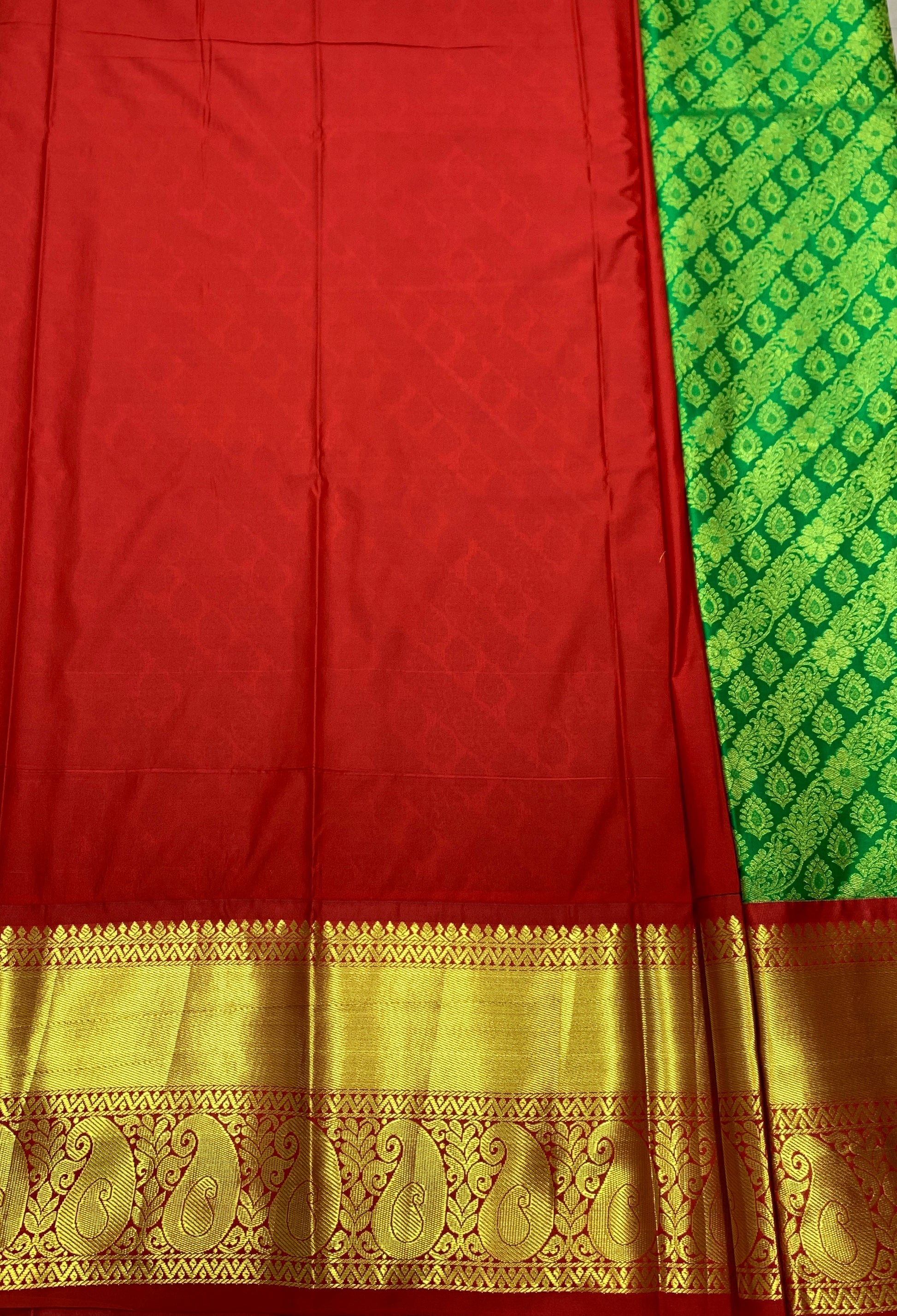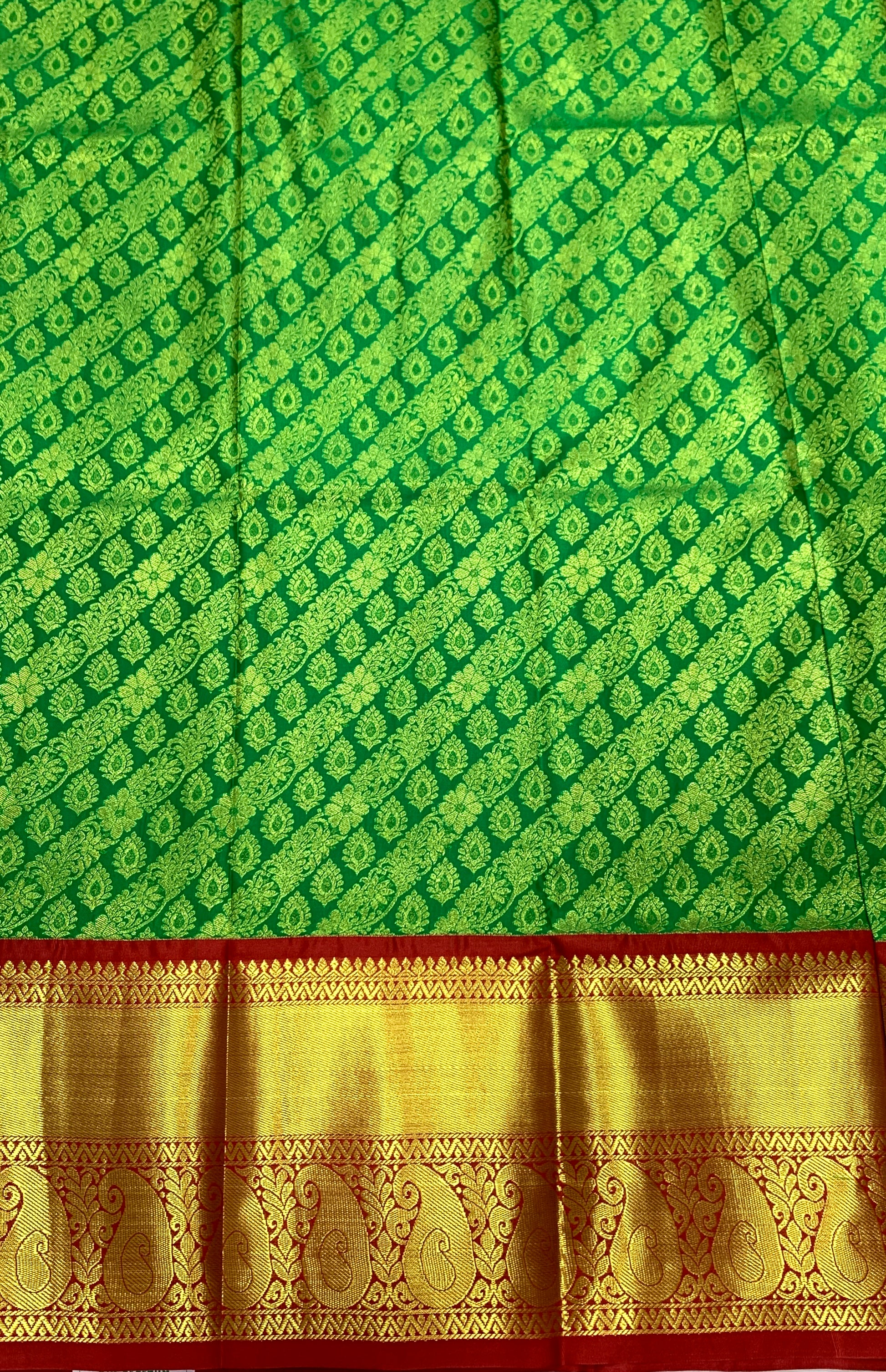 Light Green shade with contrast border Vegan silk unstitched Pattu Pavadai material for age Above 10 years