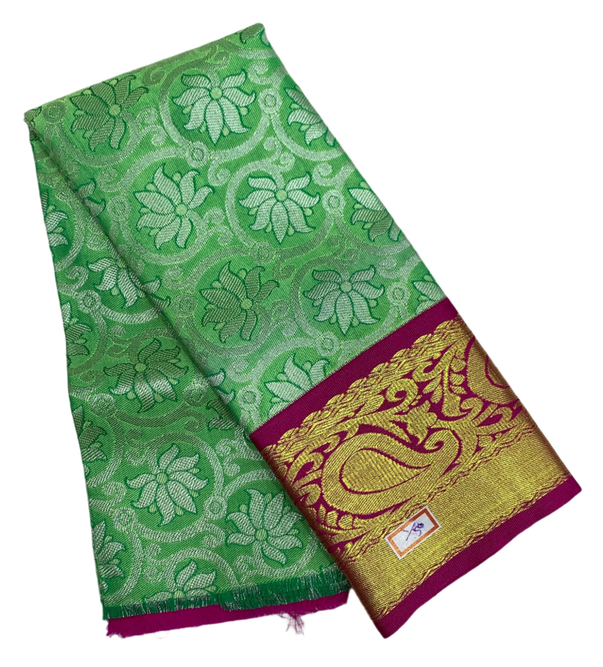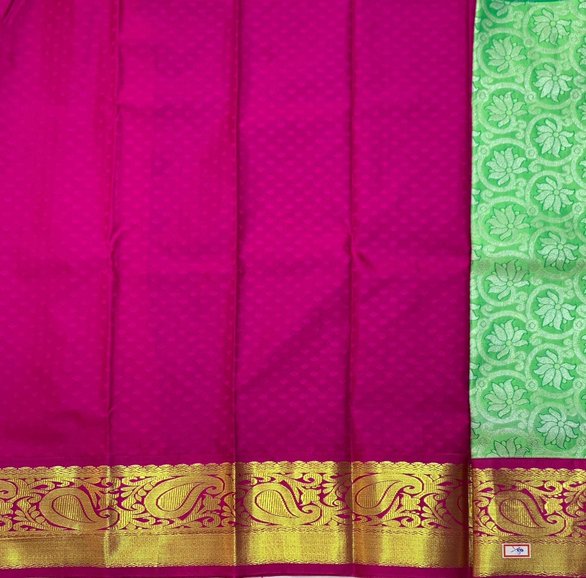 Light Green Shade Vegan Silk Kids Pattu Pavadai with Contrast Border unstitched Pattu Pavadai material for kids for age newborn to 2 Years