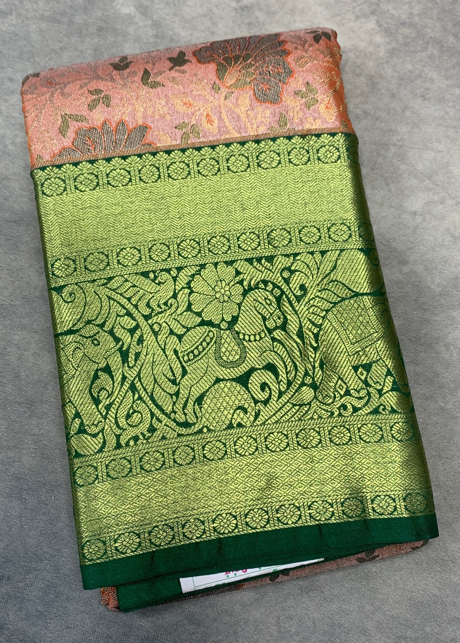 Light Orange Colour Soft kanchi pattu with Green Border