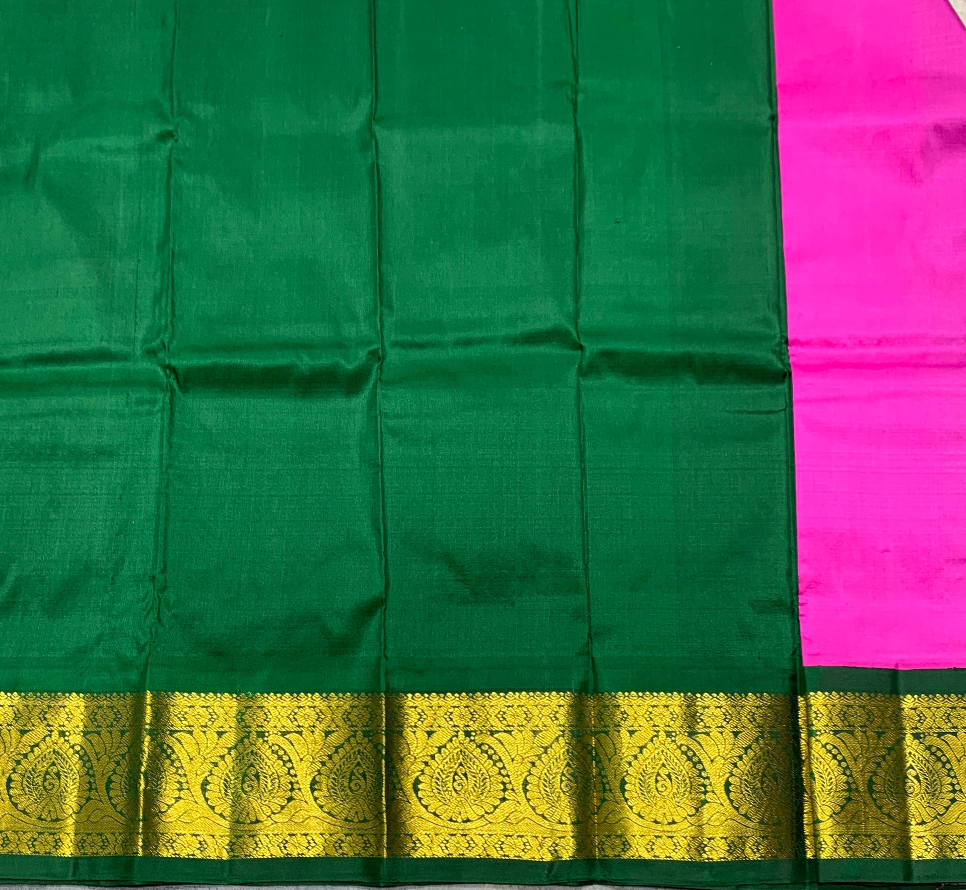 Light Pink Shade with Green Contrast Border Pure Kanchipuram Pattu Pavadai Material for Kids Age Newborn to 2 Years