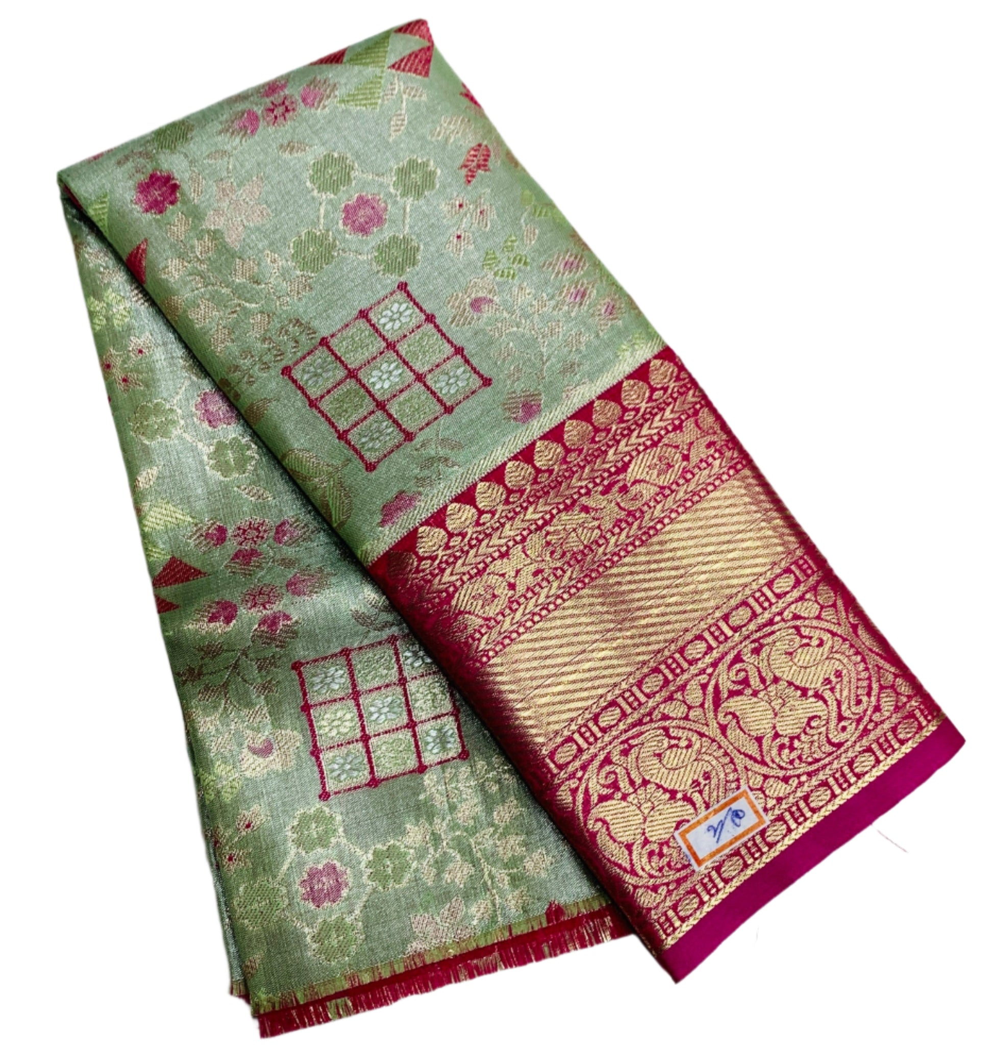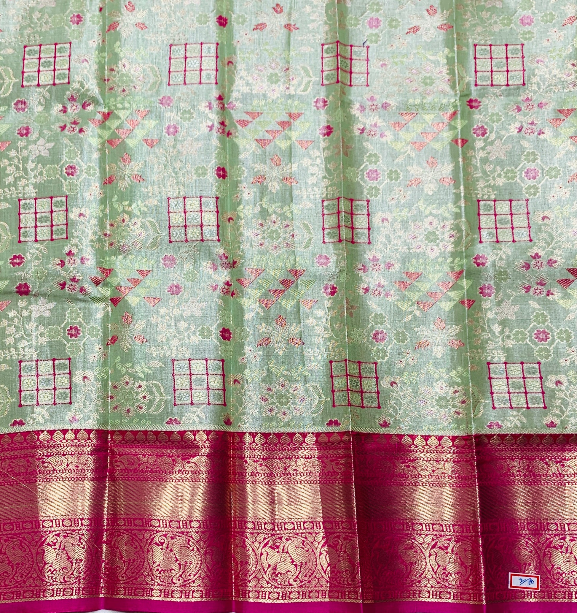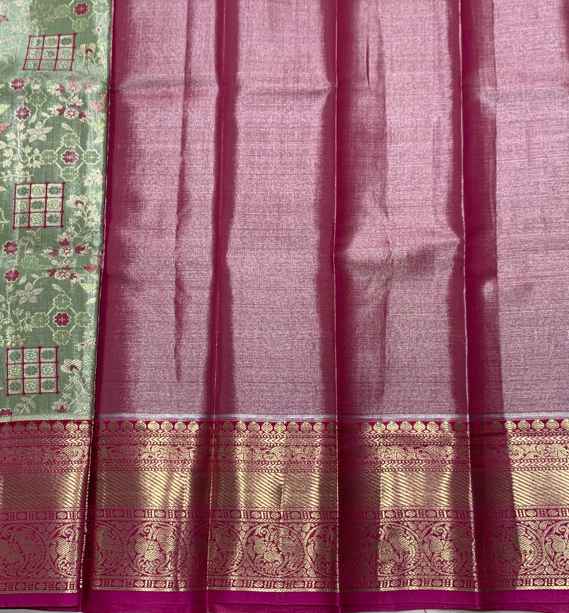 Light Pista Green Shade Vegan Silk Kids Pattu Pavadai with Contrast Border unstitched Pattu Pavadai material for kids for age newborn to 2 Years
