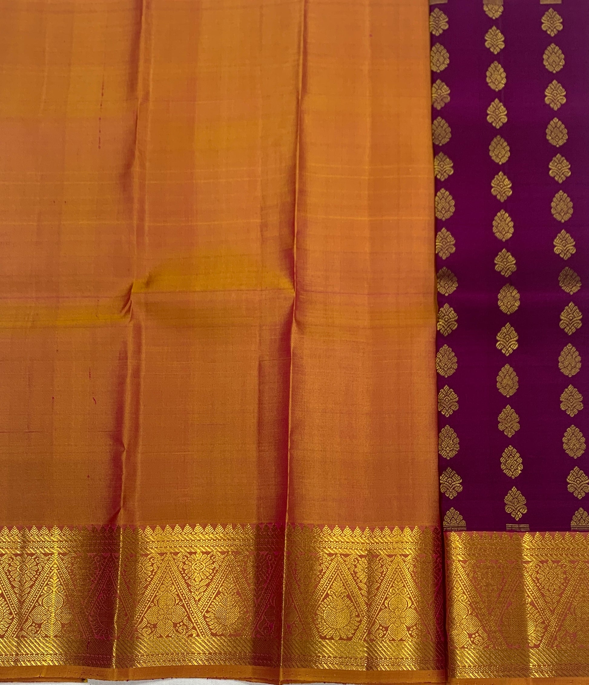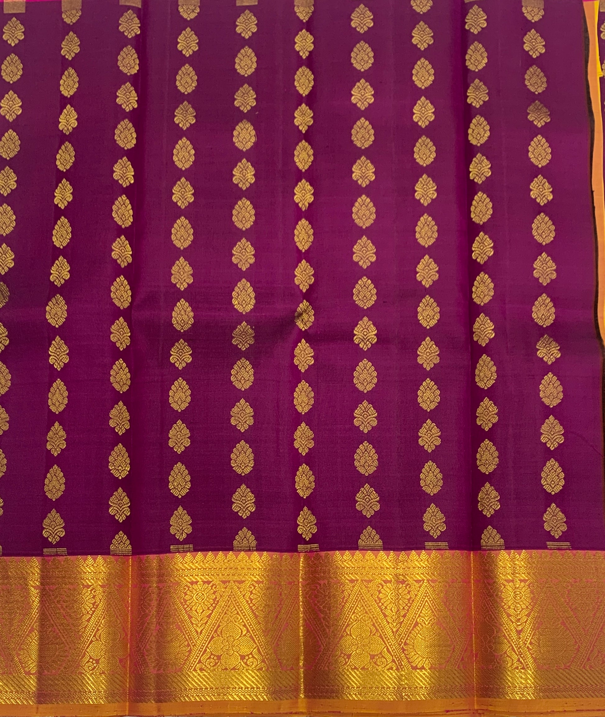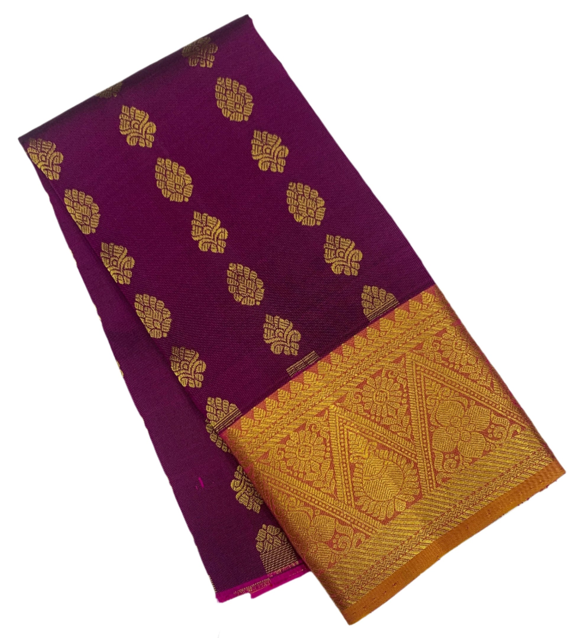 Magenta shade with Golden Yellow contrast border Pure Kanchipuram Pattu Pavadai material for kids age newborn to 2 Years