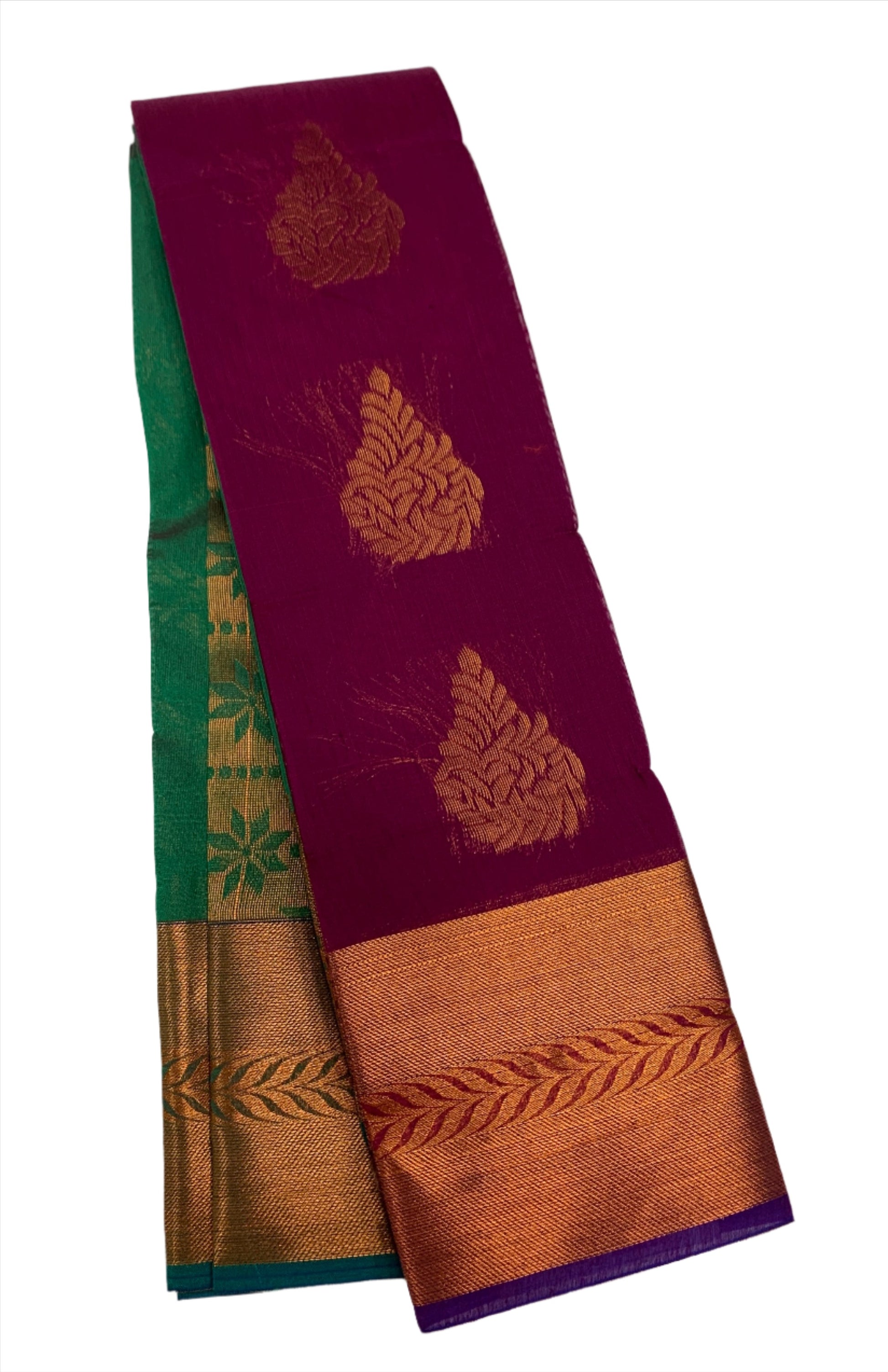 Magenta Shade Silk Cotton Saree with Copper Zari Border