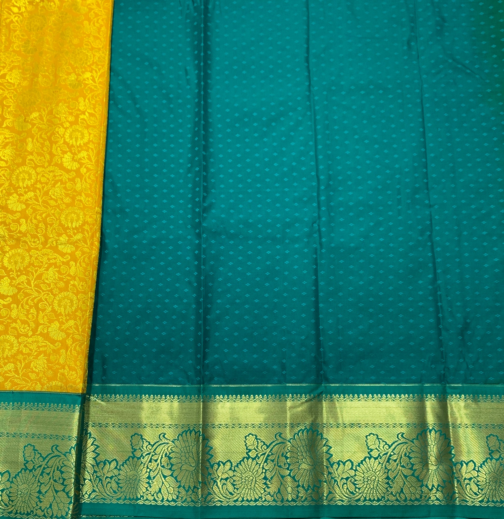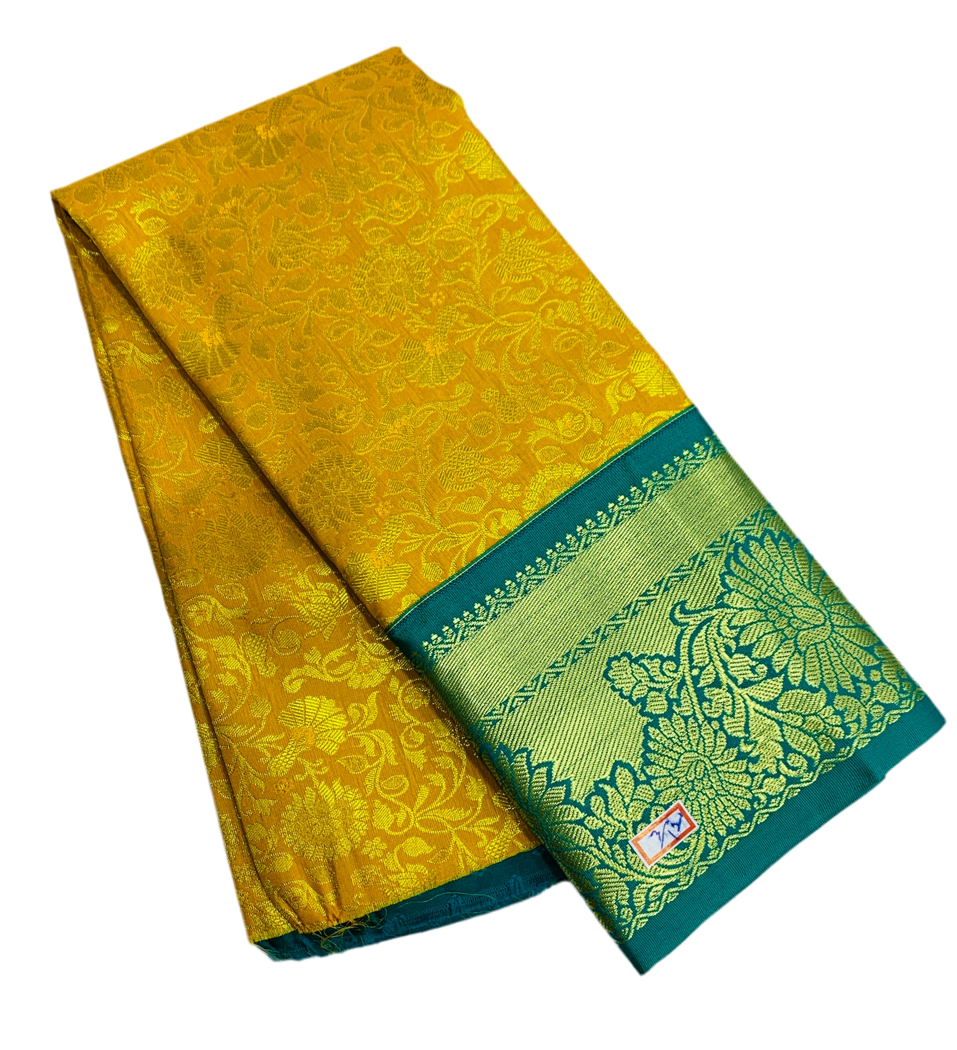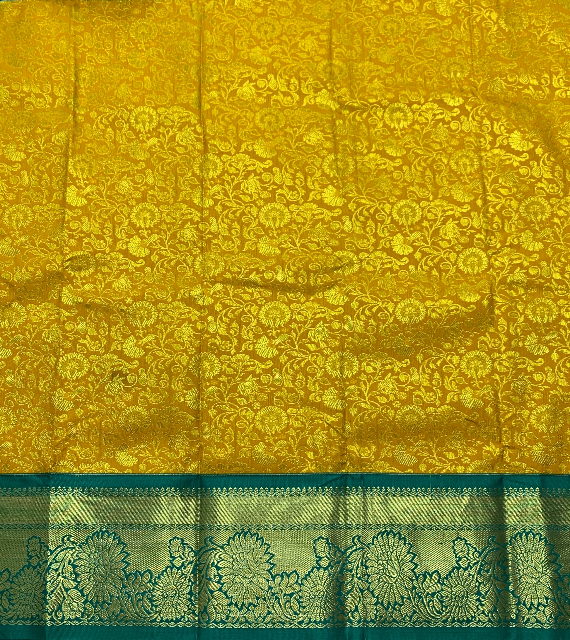 Mustard Shade with Contrast Border Vegan Silk unstitched Pattu Pavadai material for kids age 2 to 5