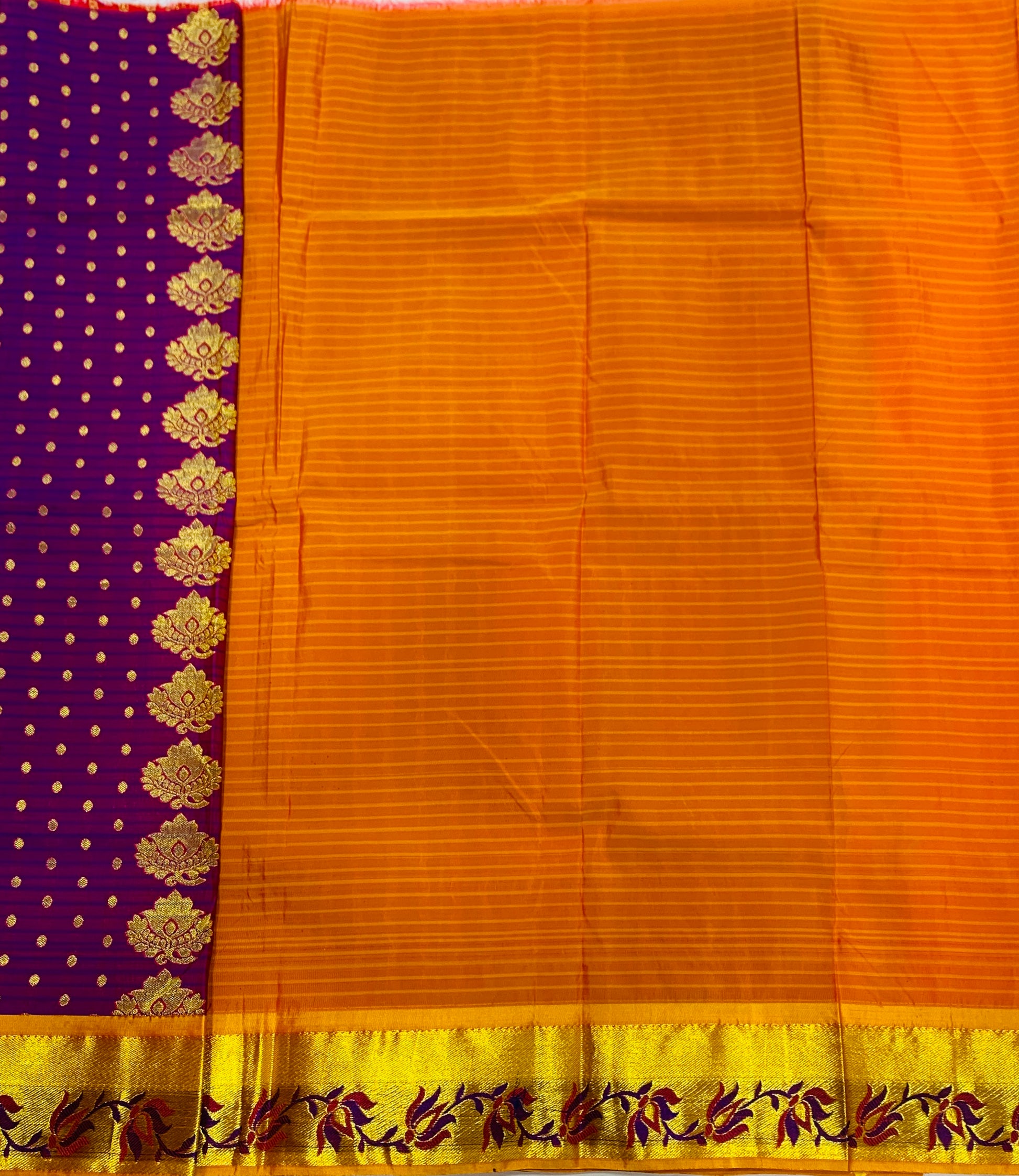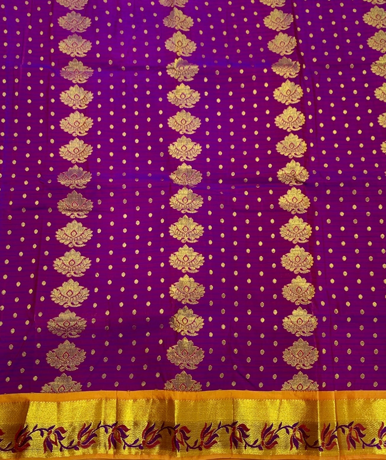 Magenta Shade Vegan Silk Kids Pattu Pavadai with contrast border for newborn to 2 Years