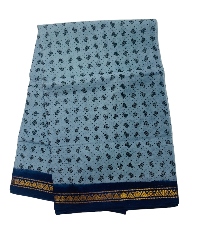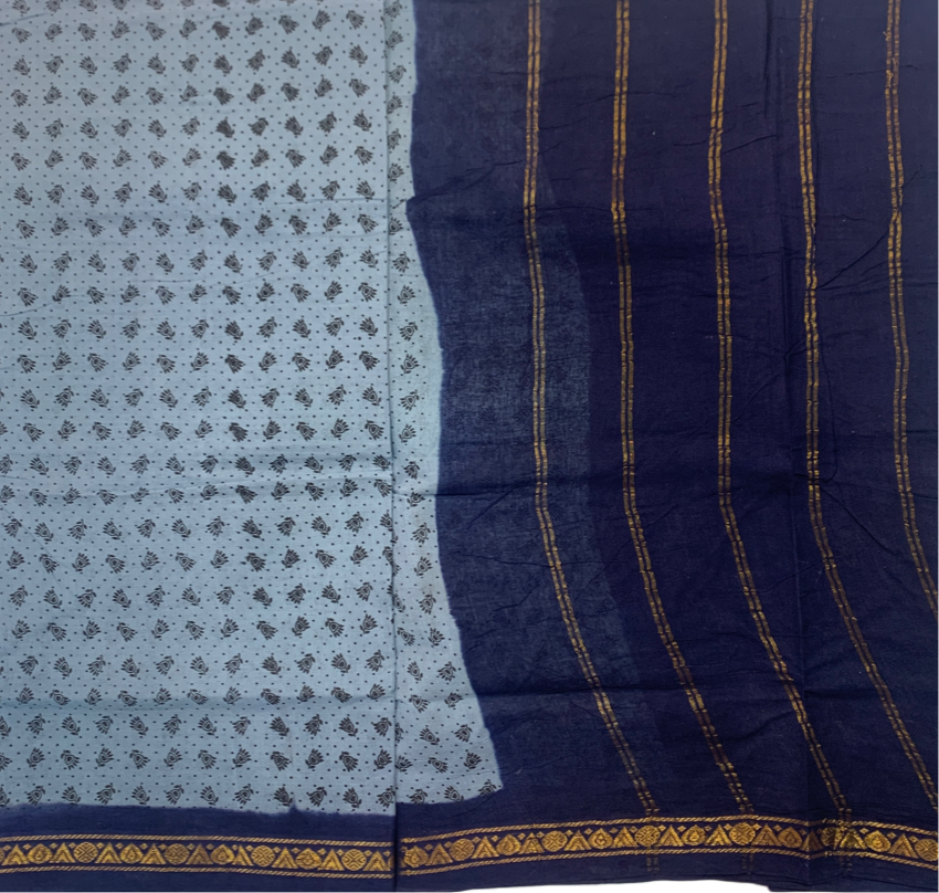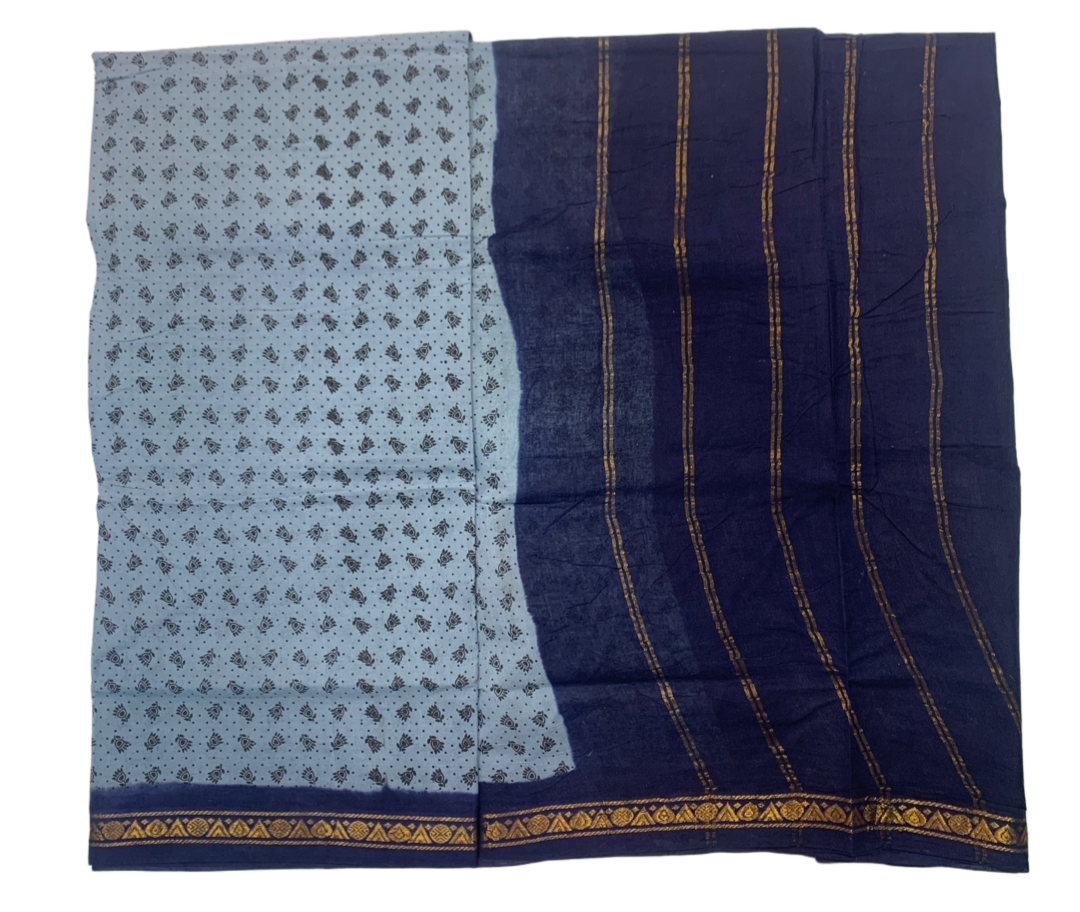 9 yards Cotton Saree Gray Colour with Navy Border.