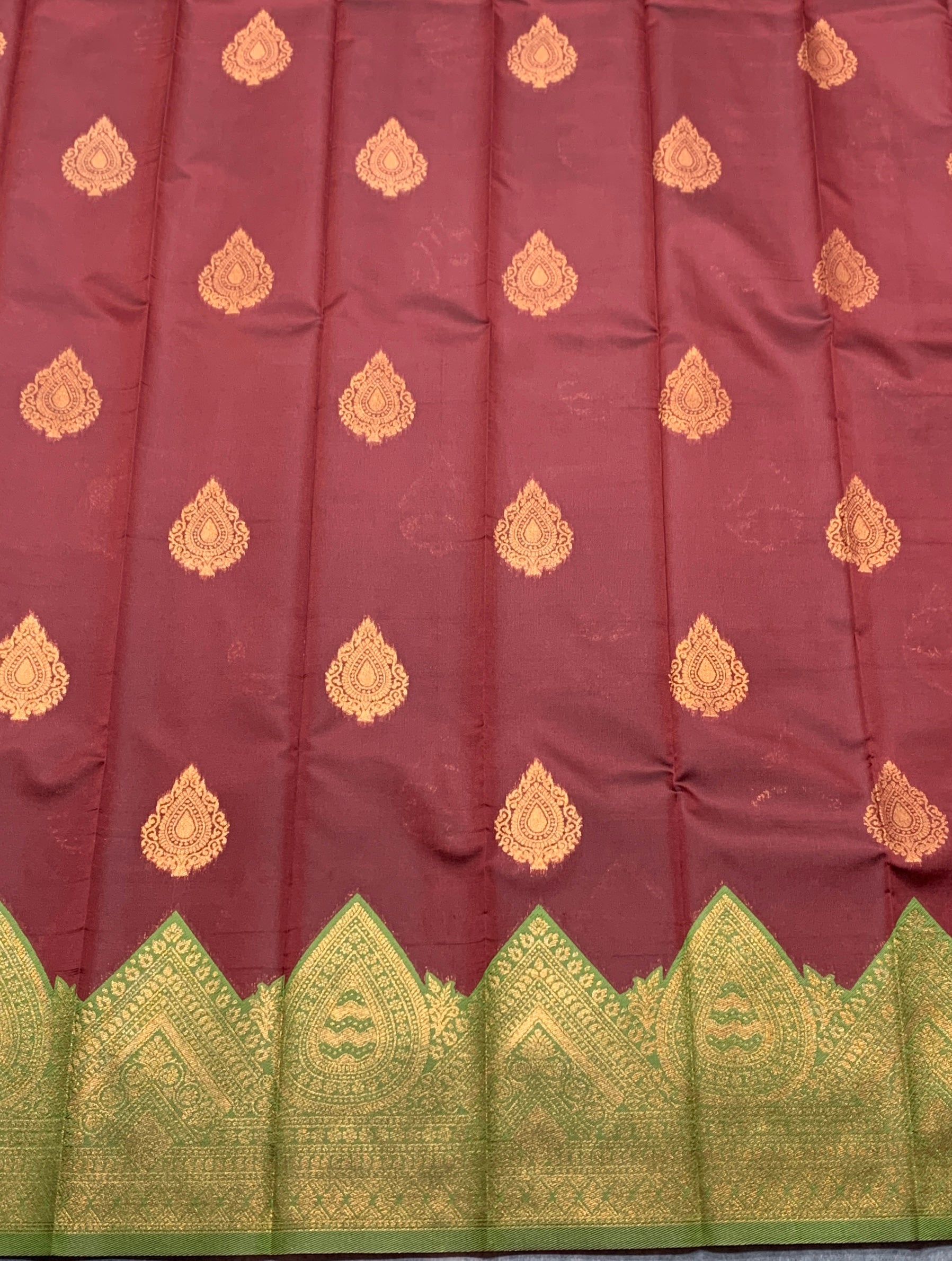 Maroon Colour Art Silk Saree with Olive Green Border.