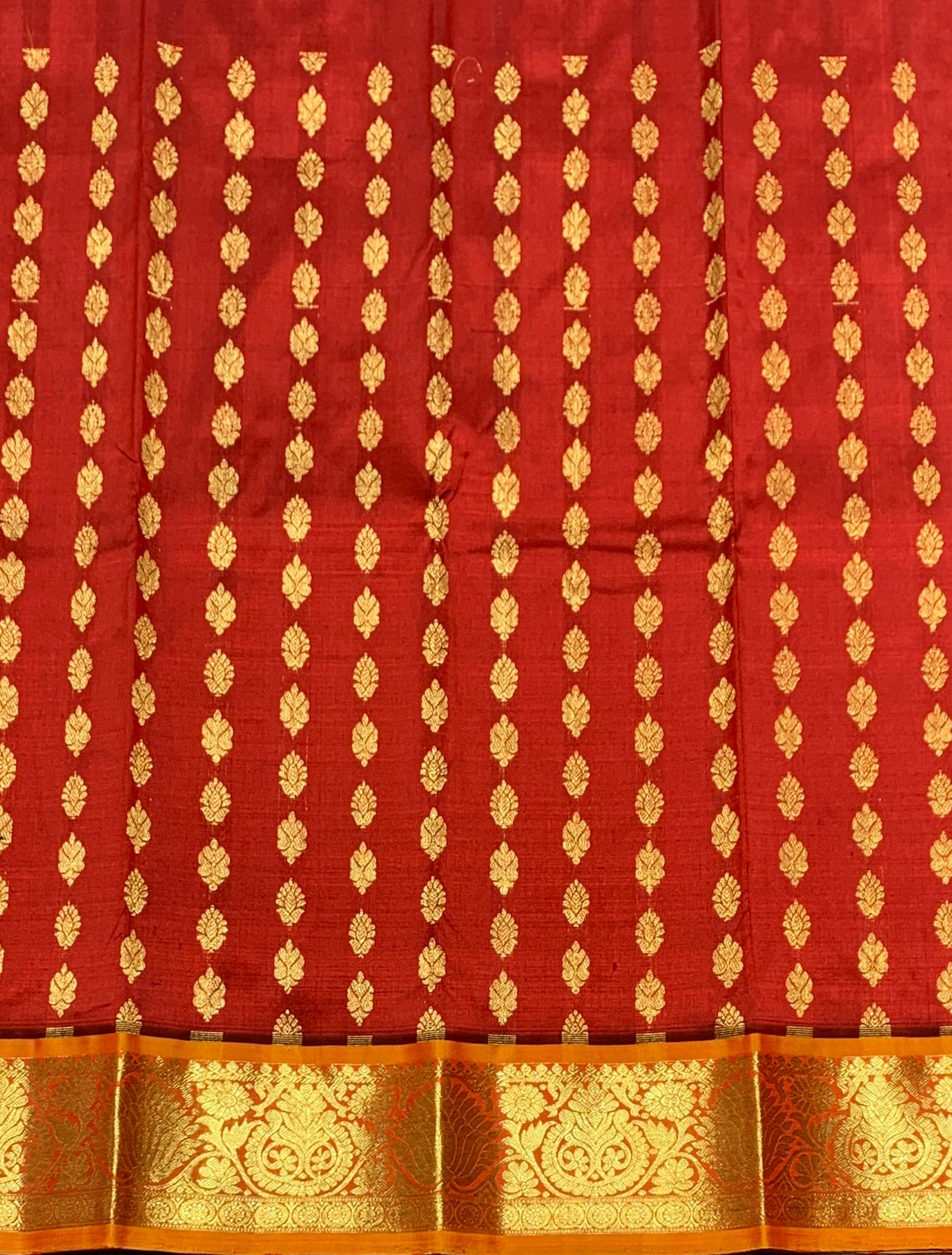 Maroon shade with Golden Yellow Contrast Border Pure Kanchipuram Pattu Pavadai Material for Kids Age Newborn to 2 Years