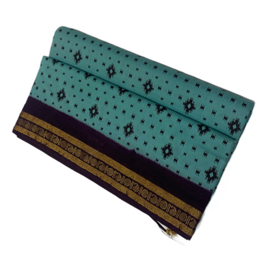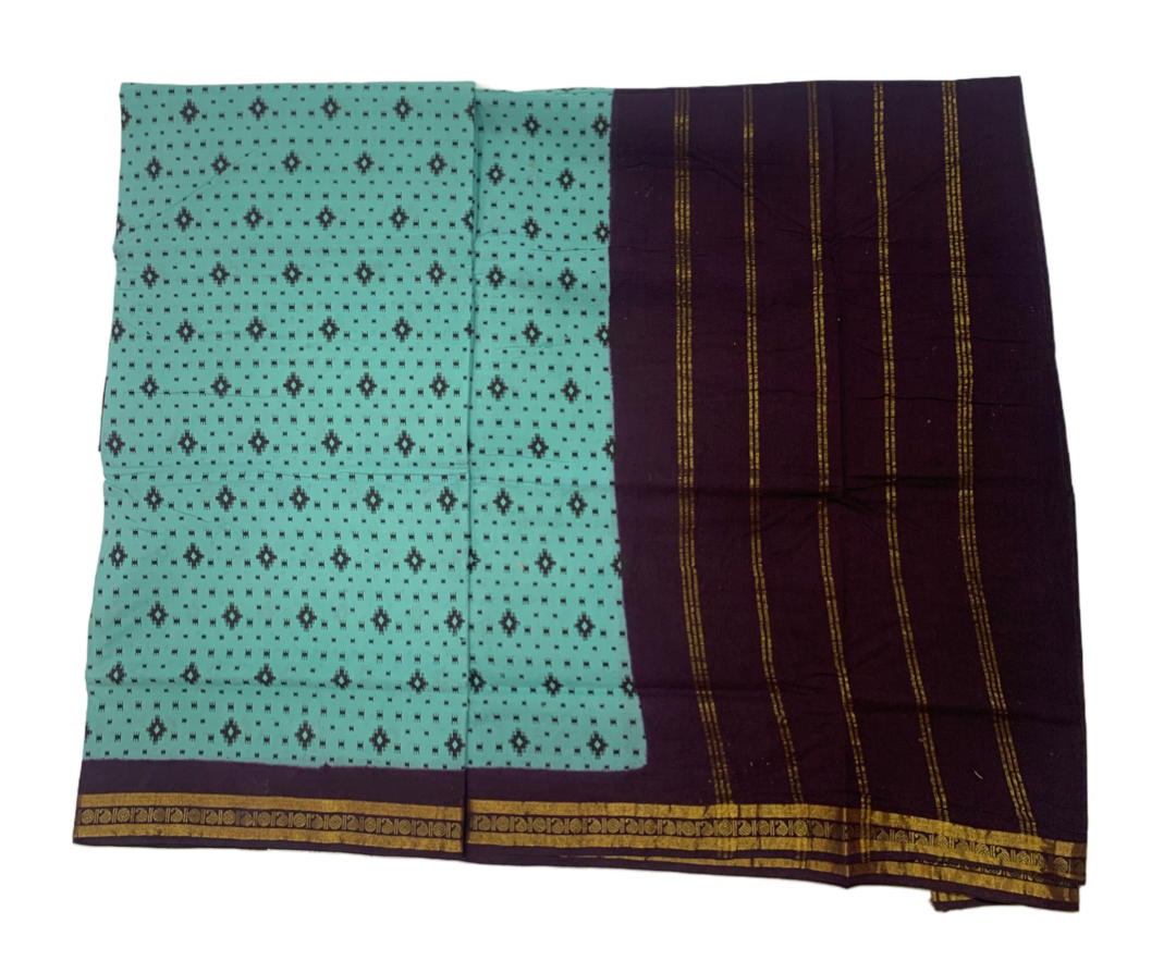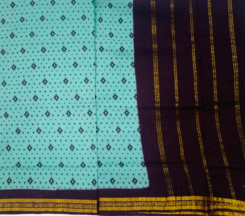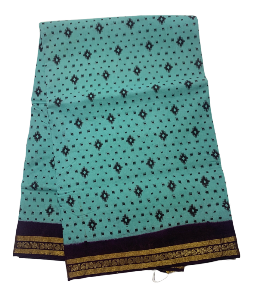 9 yards Cotton Saree Mint Green Colour with Brown border.