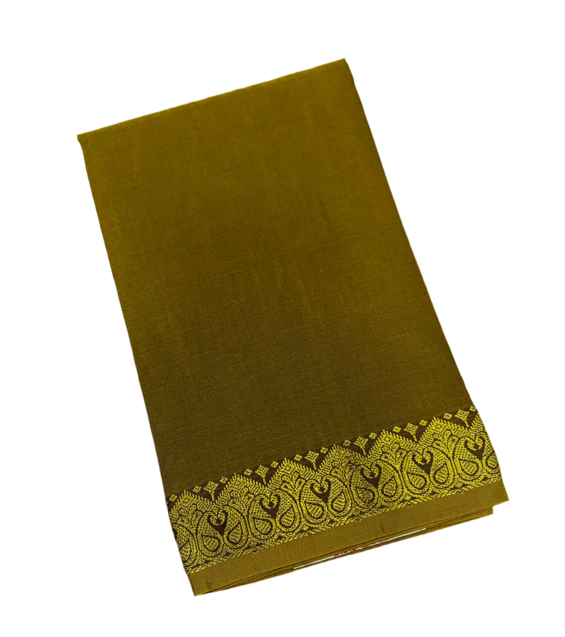Olive Green Colour Half Saree Shawl with Zari Border.