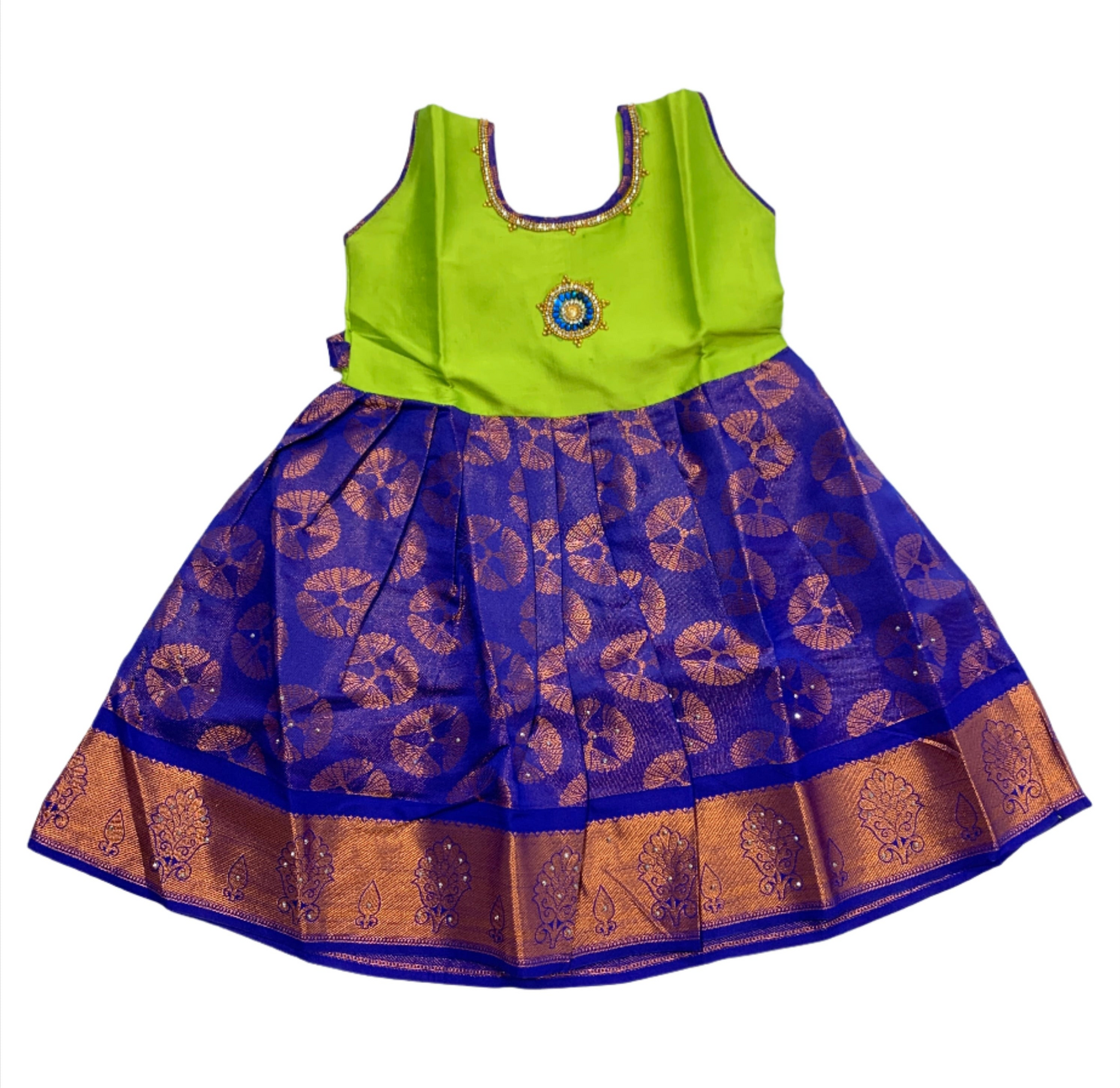 One Piece Ethnic Lehanga-Apple Green & Blue -1 Year Baby.