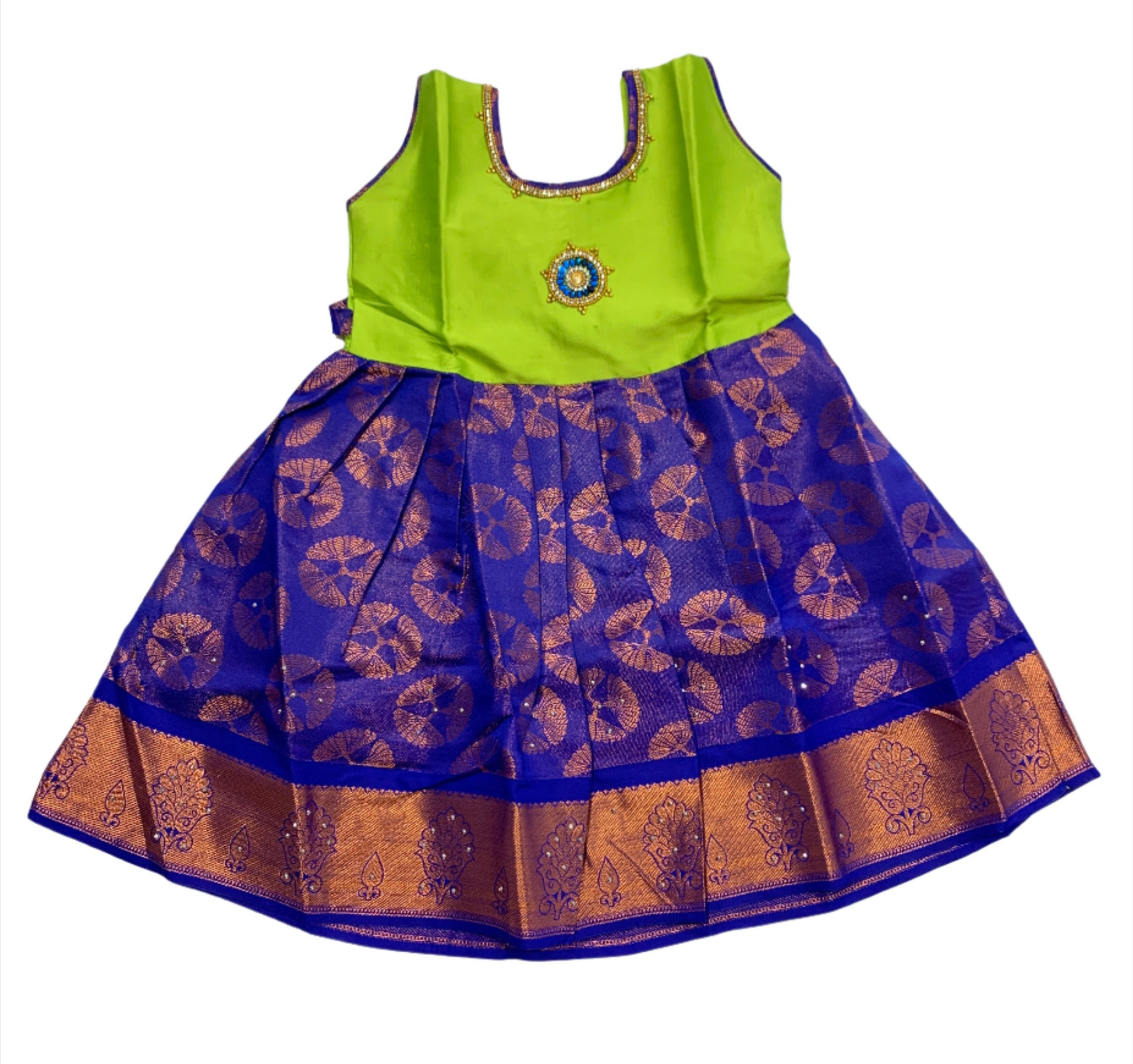 One Piece Ethnic Lehanga-Apple Green & Blue -2 Year Baby.