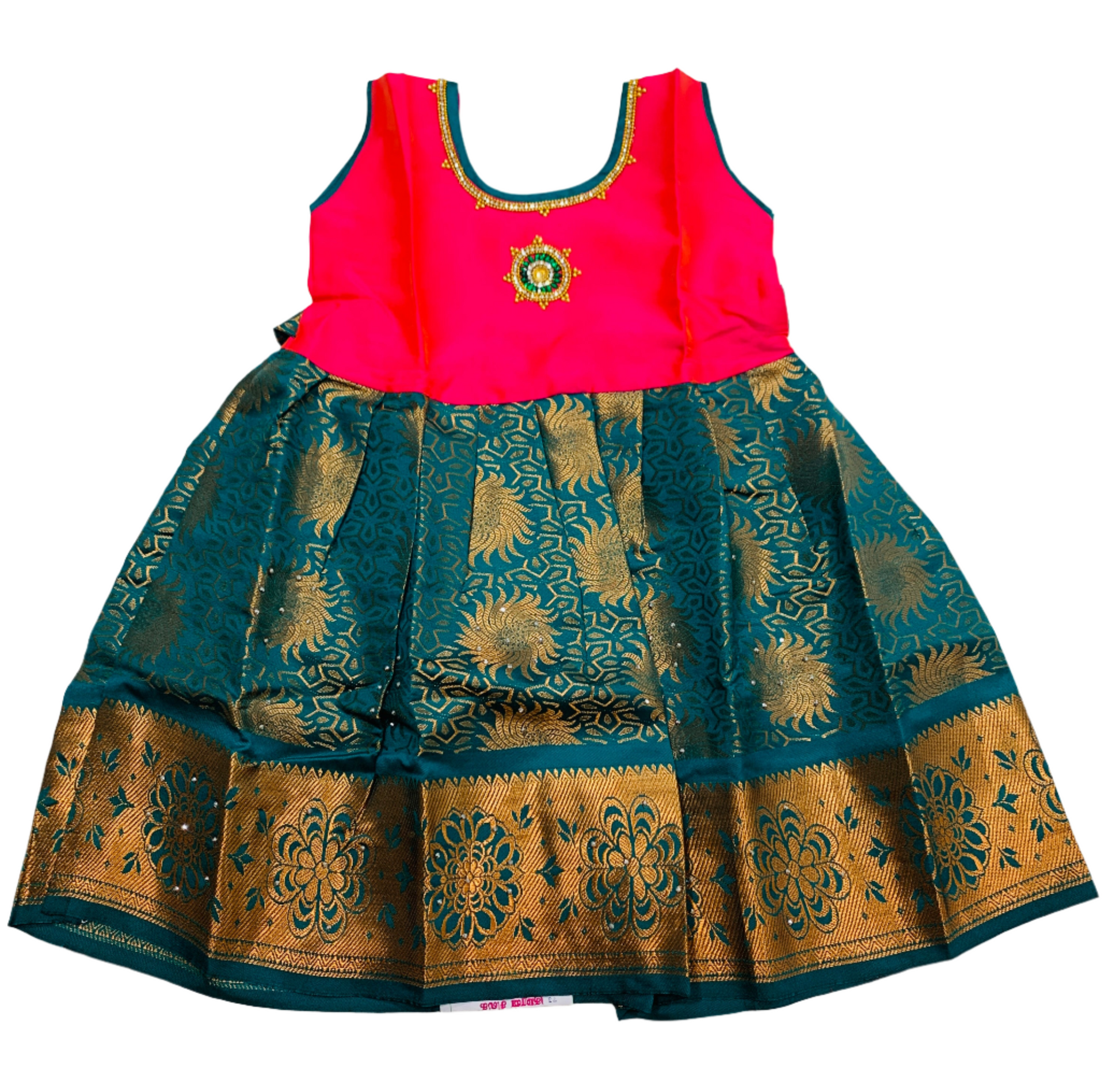 One Piece Ethnic Lehanga-Baby Pink & Green -2 Year Baby.