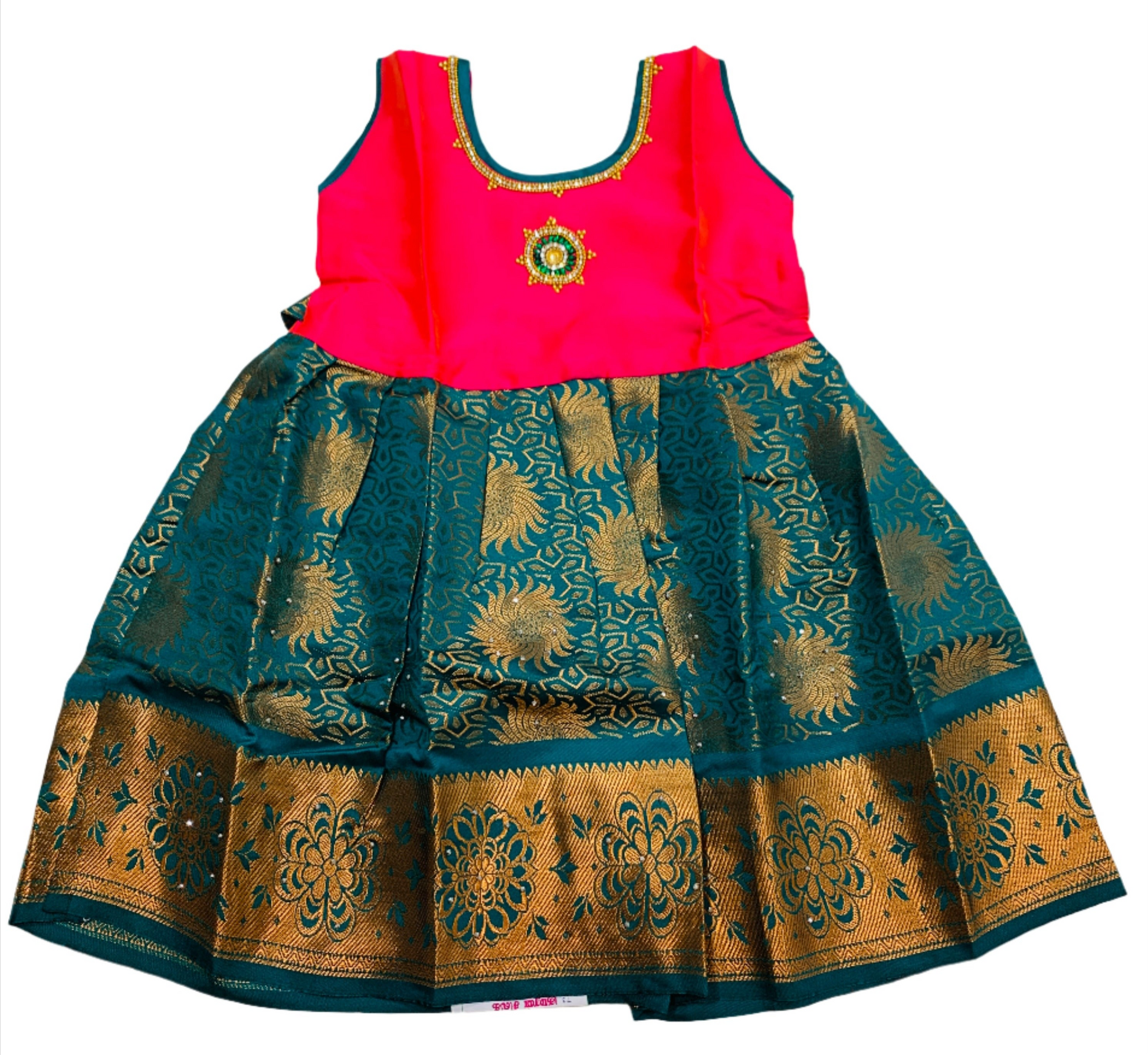 One Piece Ethnic Lehanga - Baby Pink & Green -1 Year Baby.