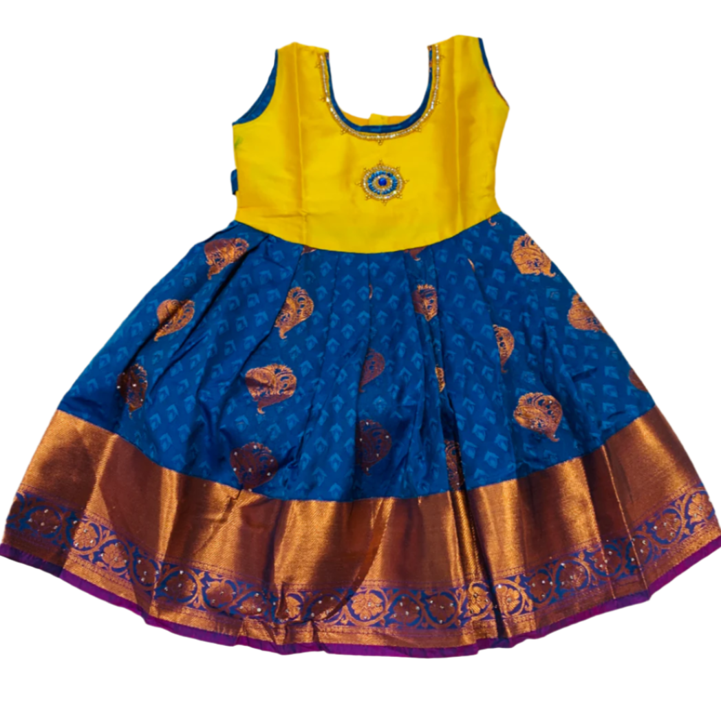 One Piece Ethnic Lehanga-Yellow & Sky Blue -2 Year Baby.