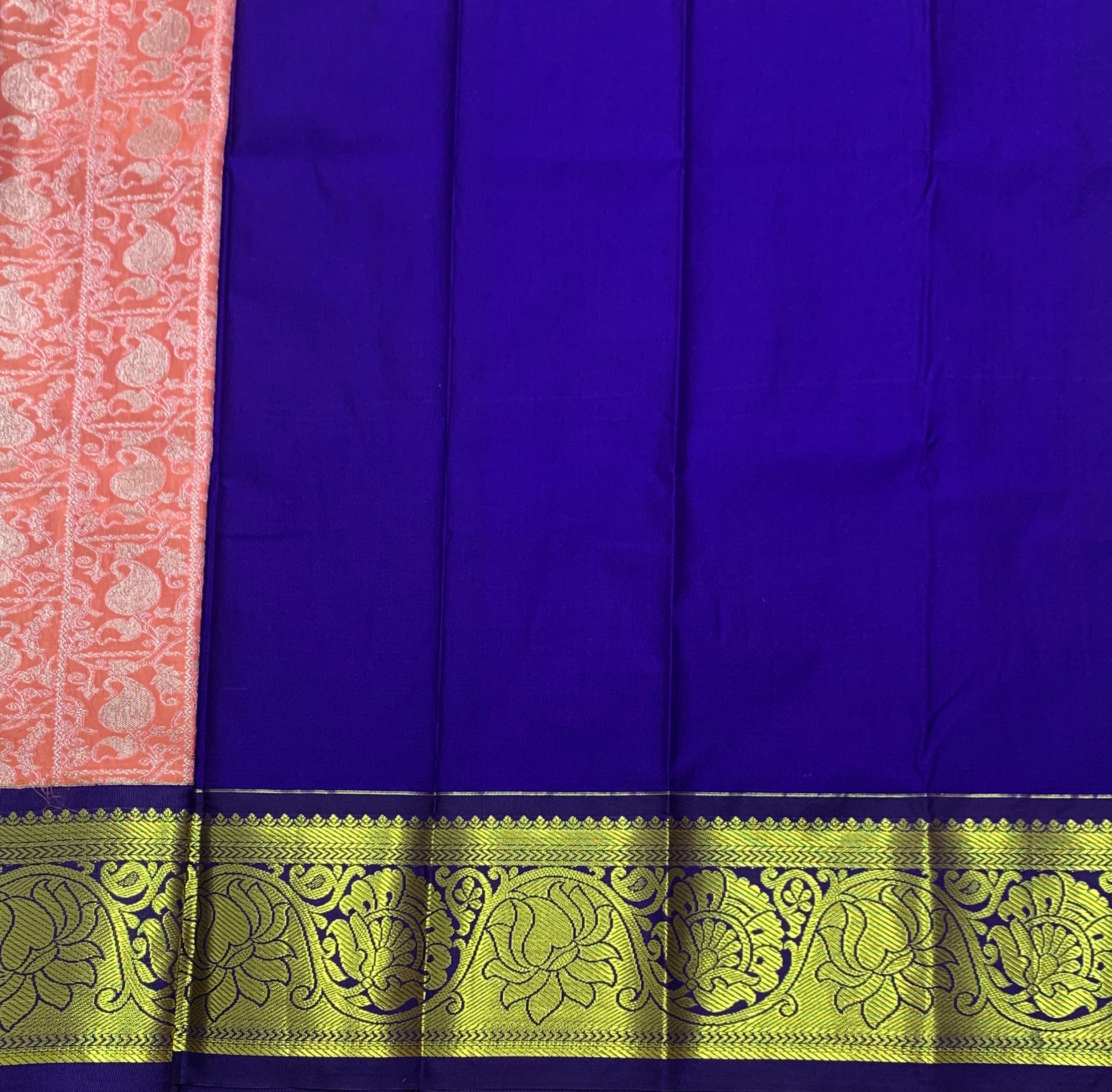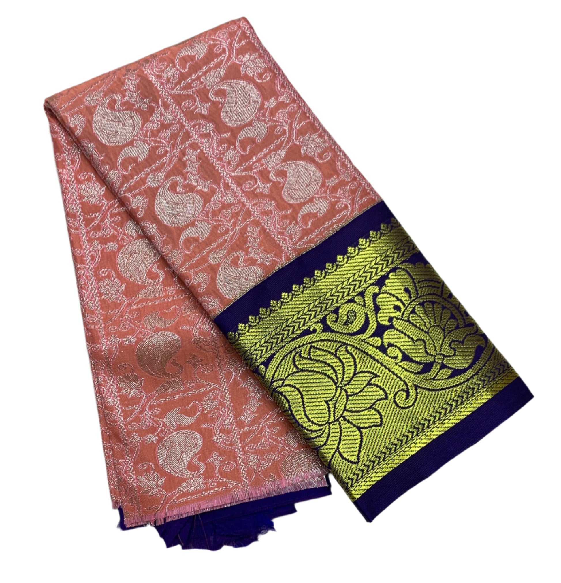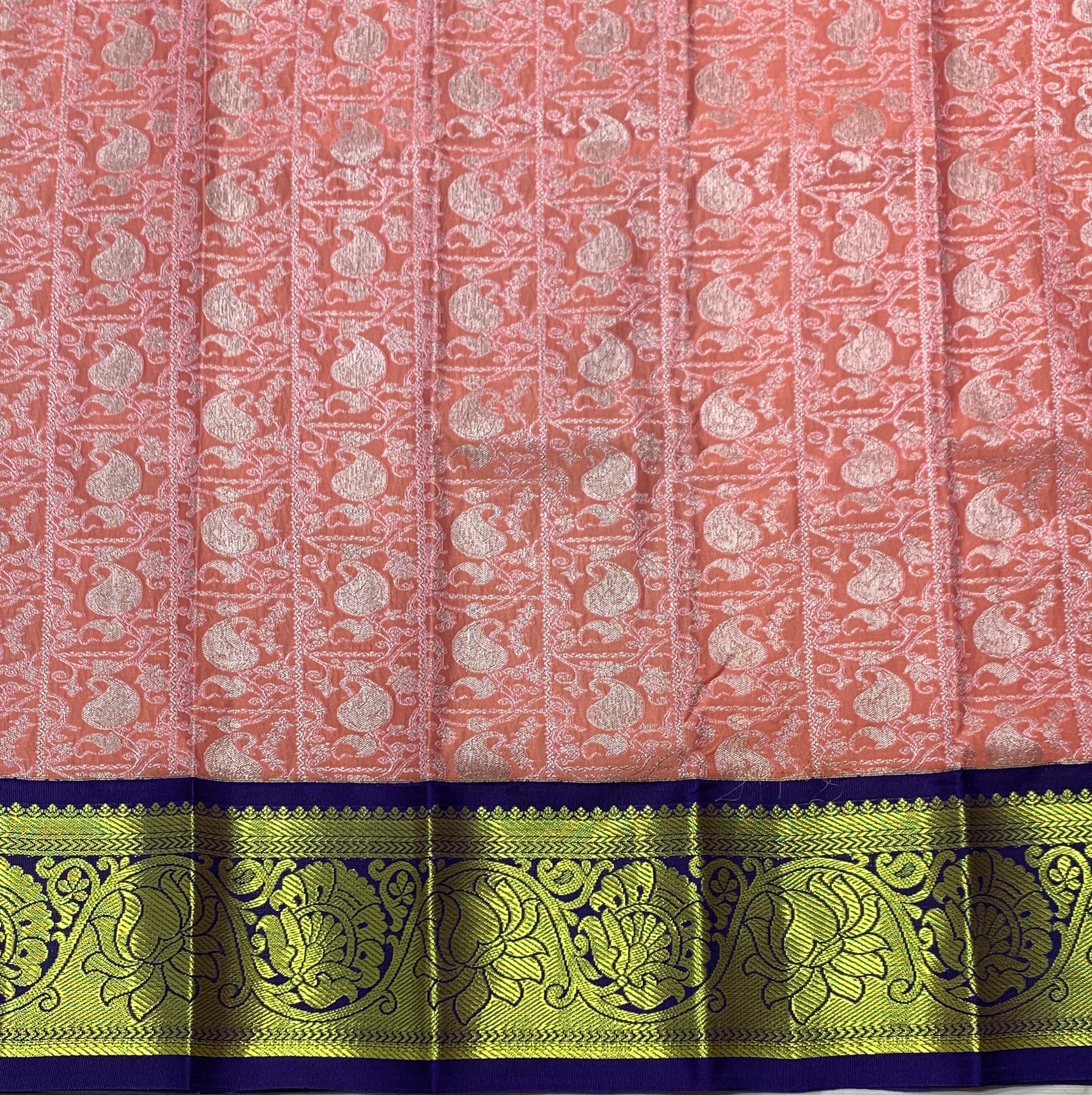 Peach Shade Vegan Silk Kids Pattu Pavadai with Contrast Border unstitched Pattu Pavadai material for kids for age newborn to 2 Years