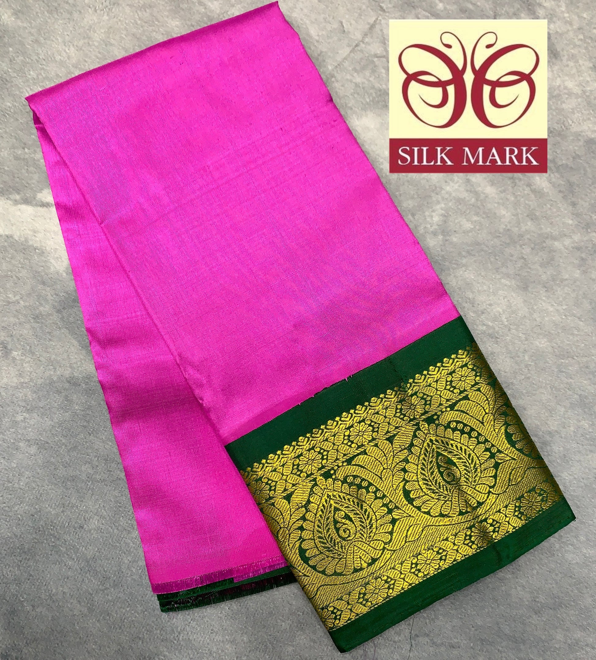 Pink shade with Green Contrast Border Pure Kanchipuram Pattu Pavadai Material for Kids Age Newborn to 2 Years