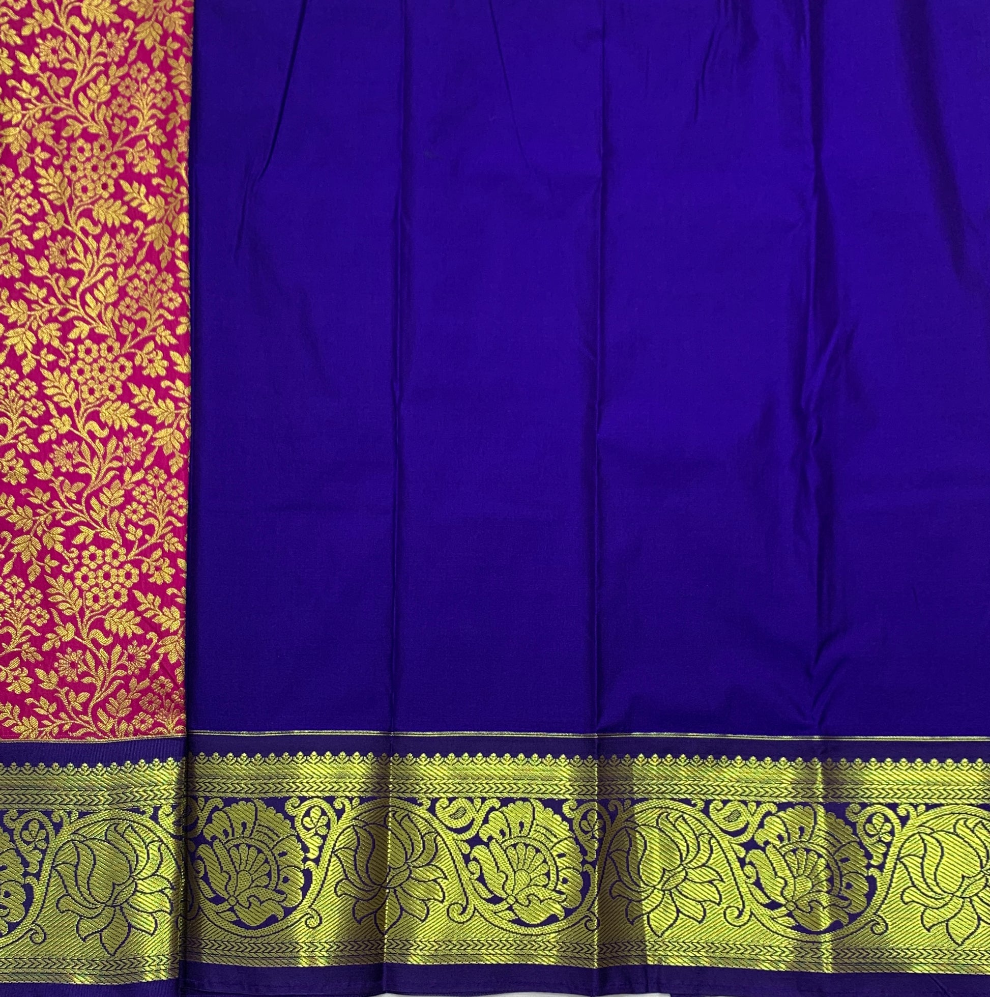 Pink Shade Vegan Silk Kids Pattu Pavadai with Contrast Border unstitched Pattu Pavadai material for kids for age newborn to 2 Years