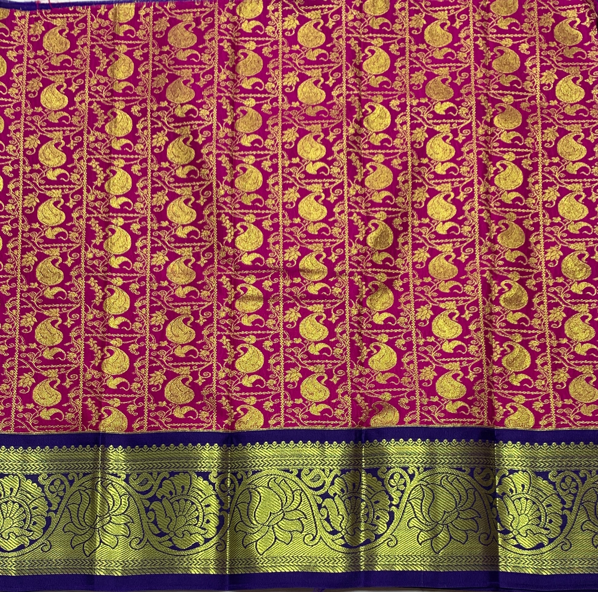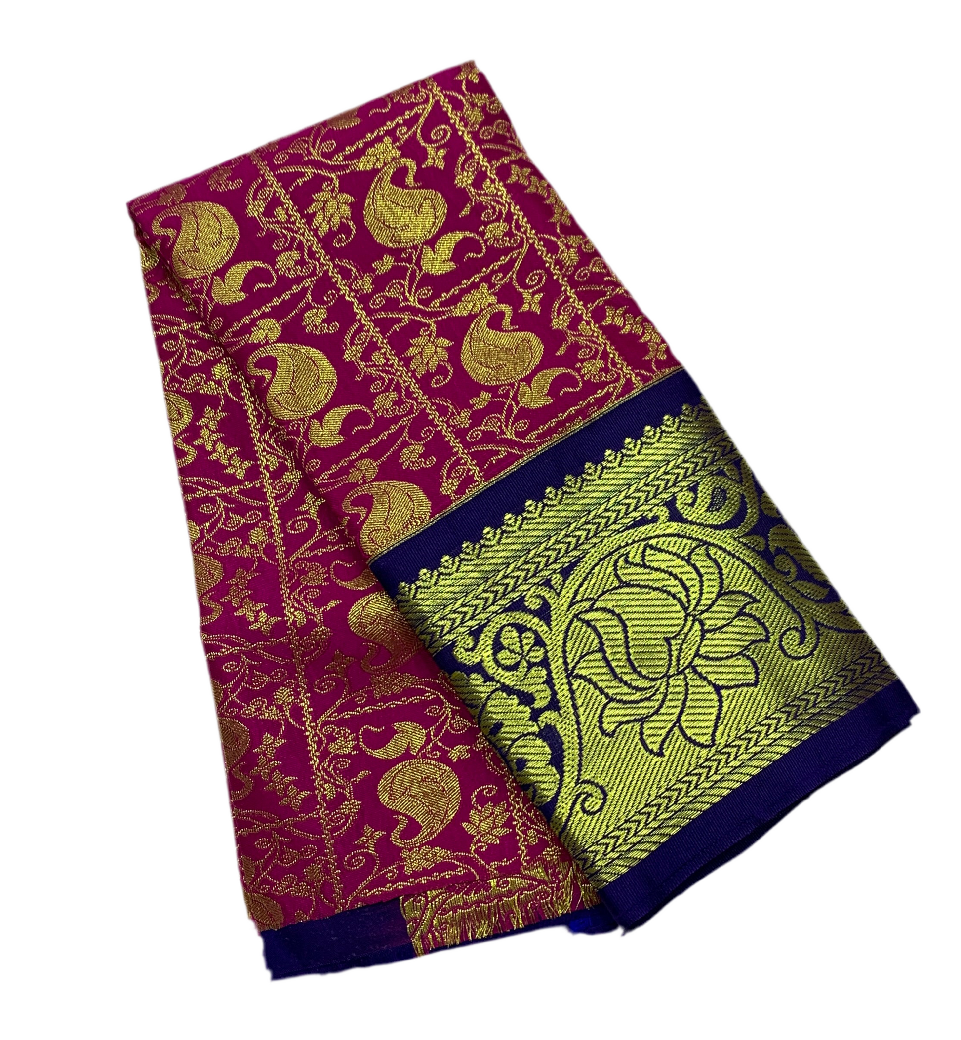 Pink Shade Vegan Silk Kids Pattu Pavadai with Contrast Border unstitched Pattu Pavadai material for kids for age newborn to 2 Years