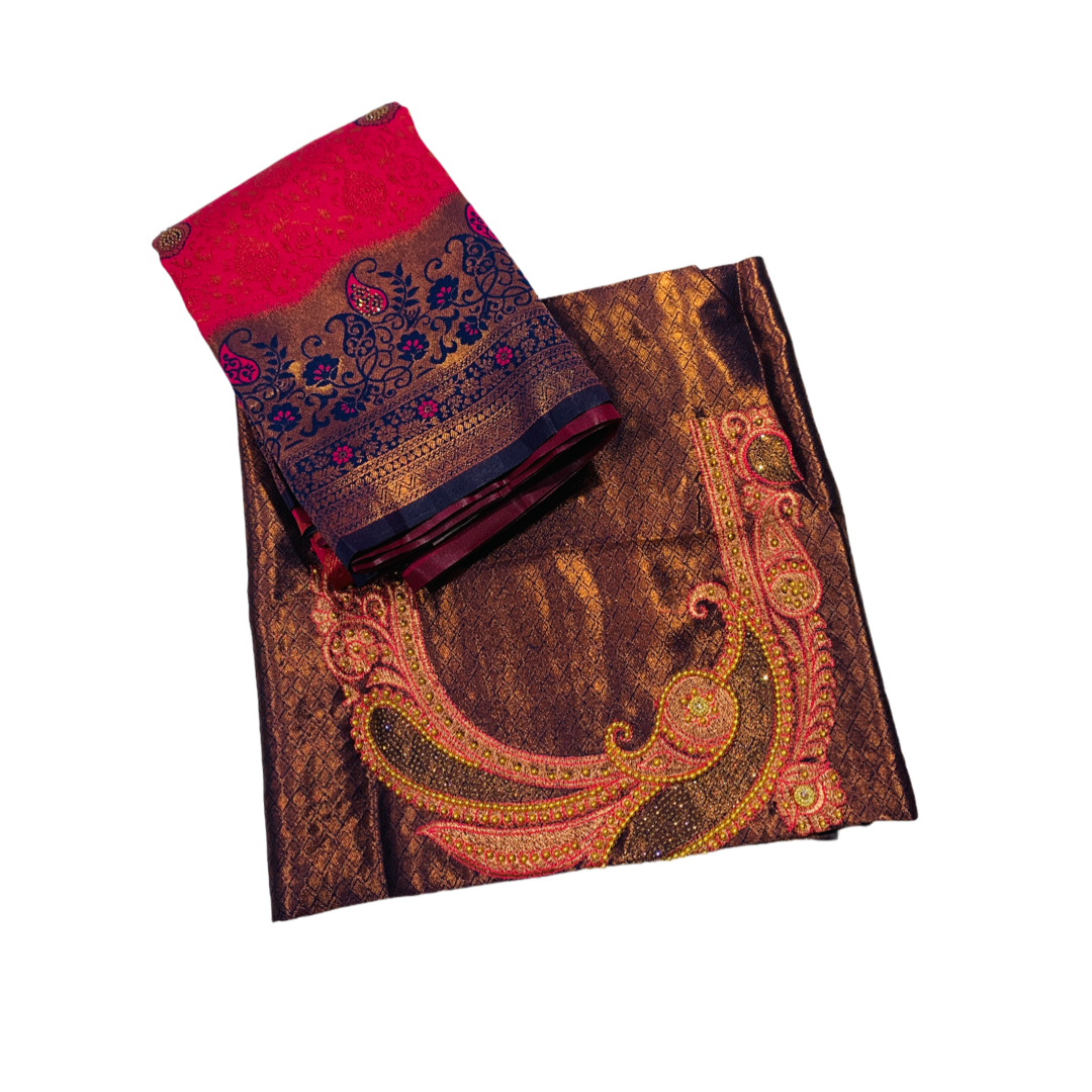 Pink shade with Unstitched blouse in Aari work.