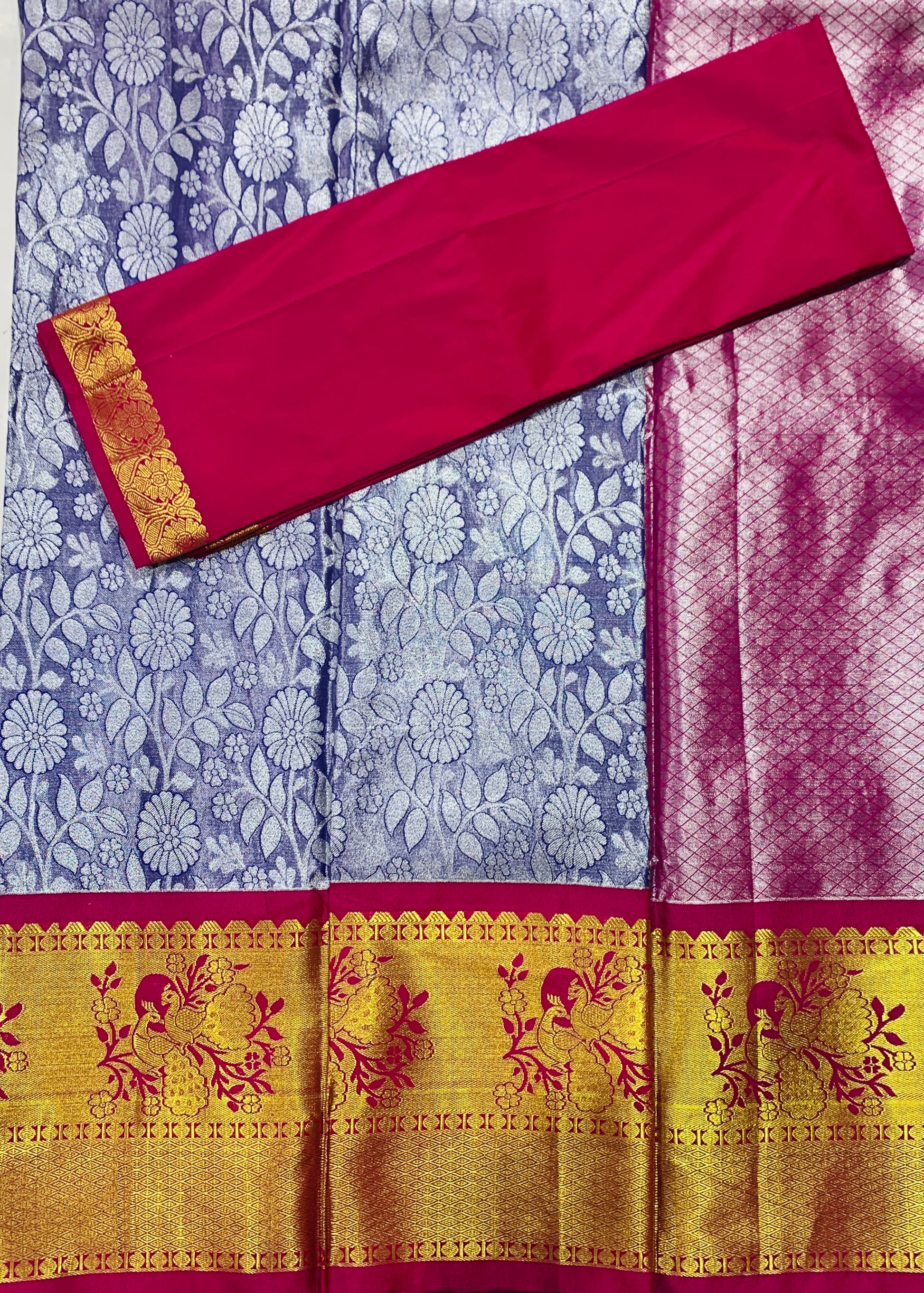 Pavadai : Sliver Gray shade with Flower Design