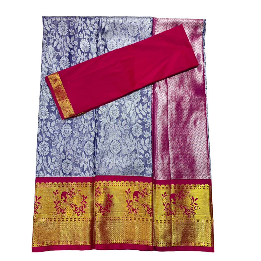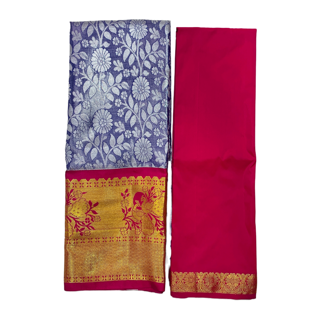 Sliver Gray Shade Vegan Silk Half Saree Contrast Border (Above 10 years )