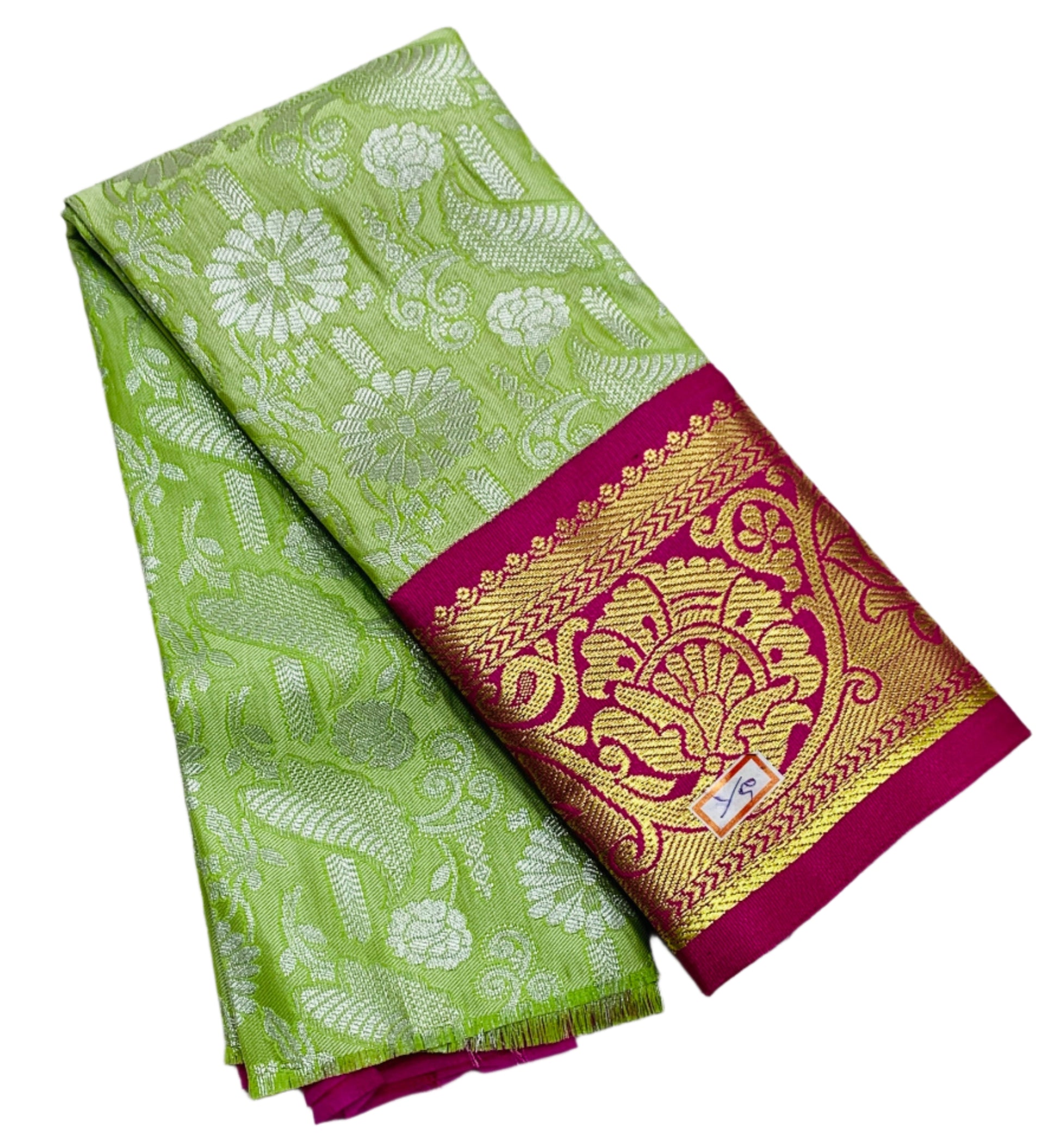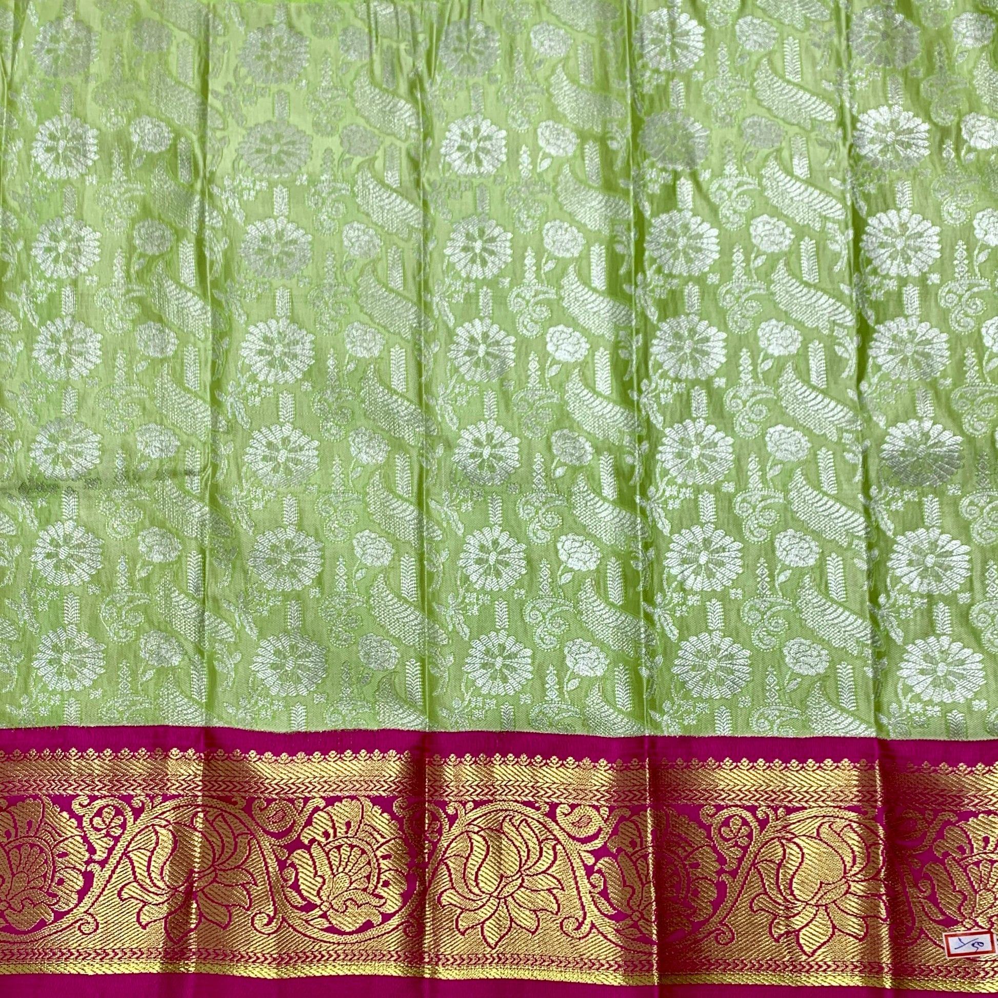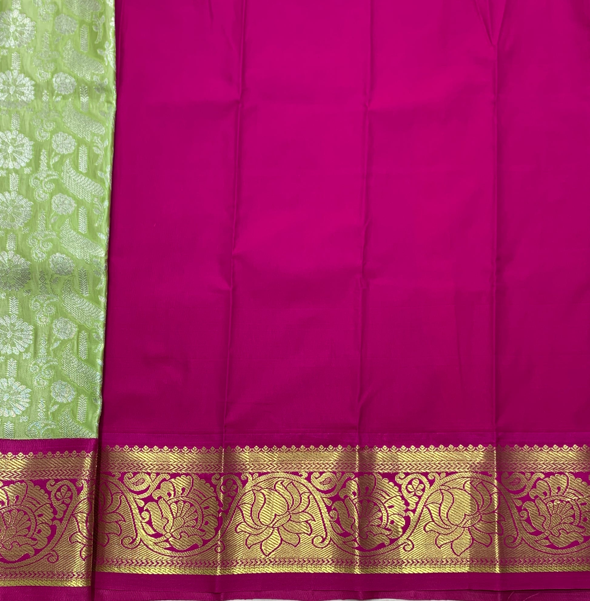 Pista Green Shade Vegan Silk Kids Pattu Pavadai with Contrast Border unstitched Pattu Pavadai material for kids for age newborn to 2 Years