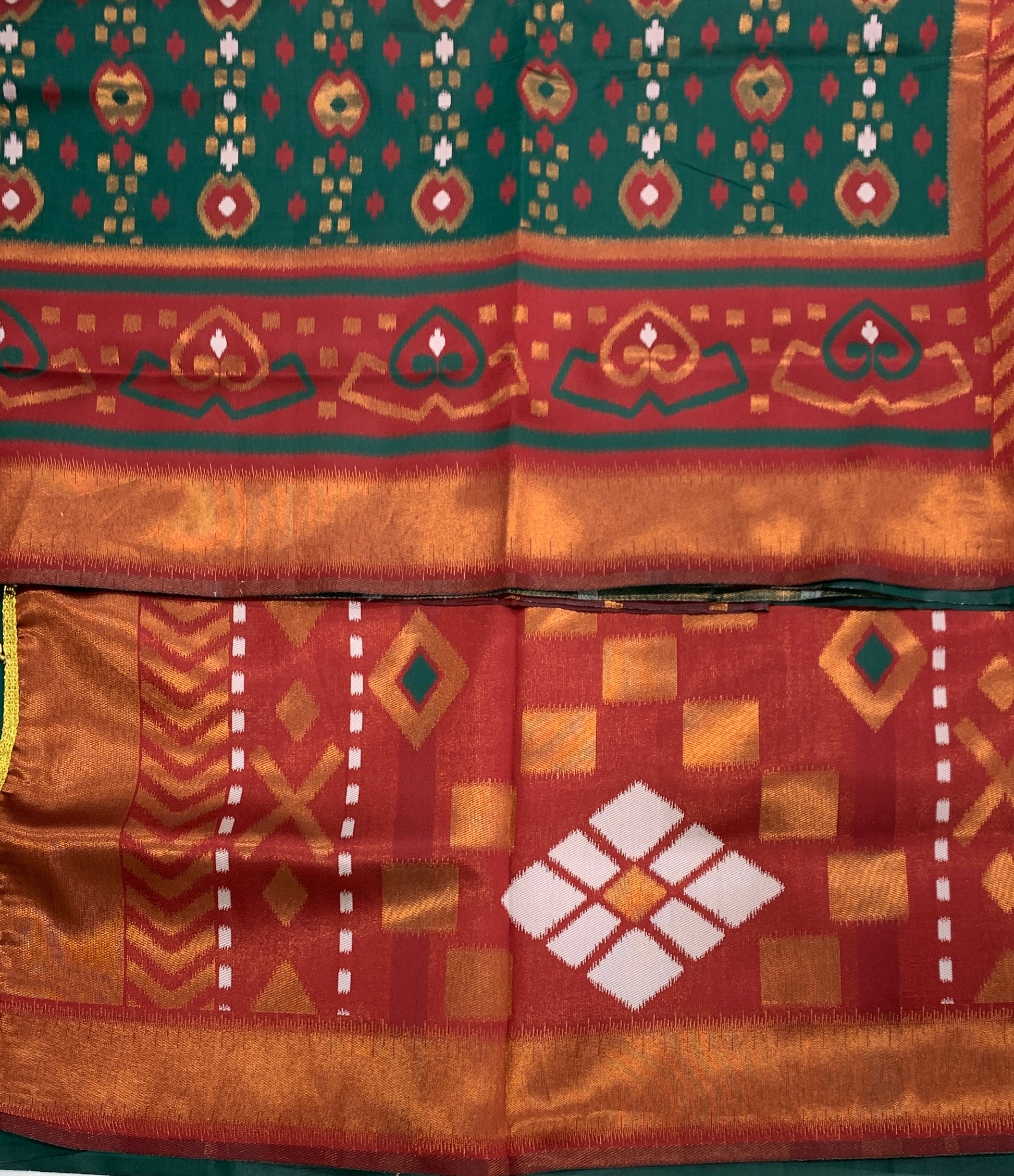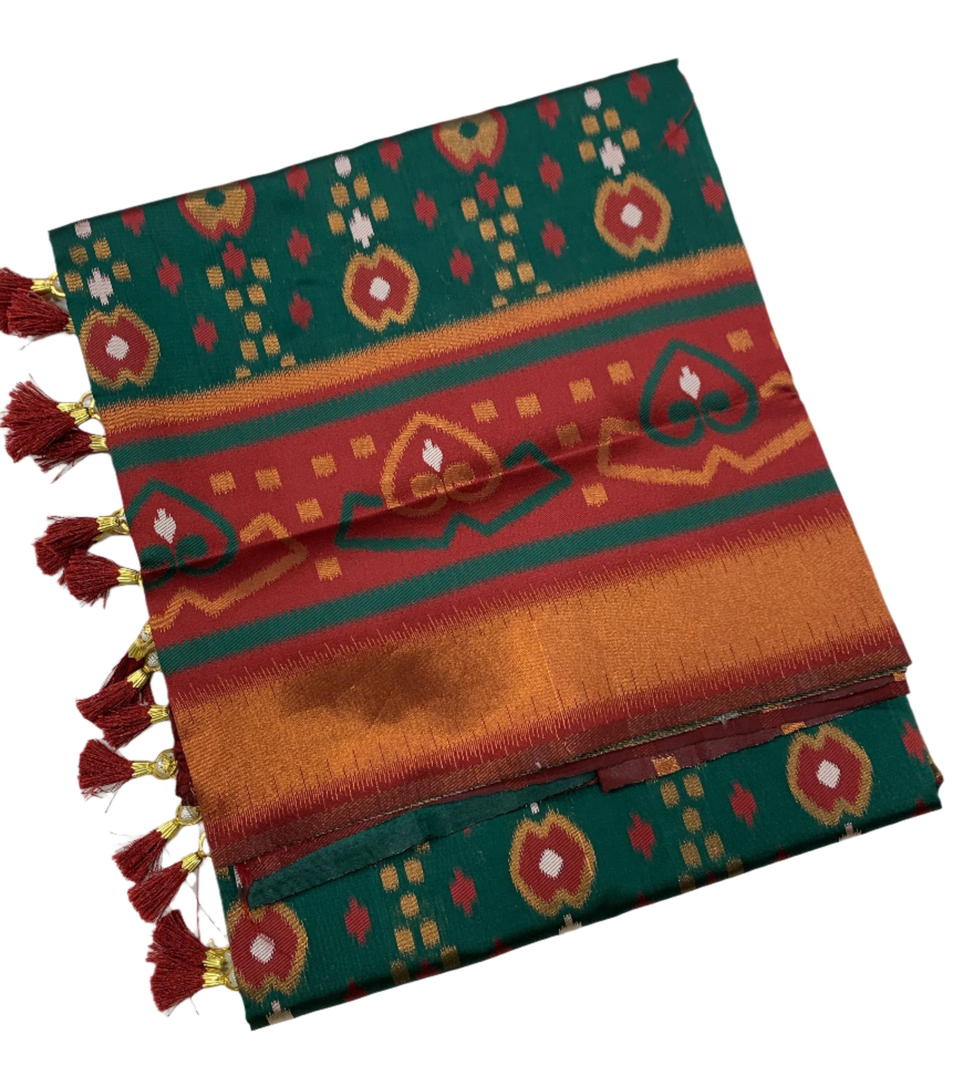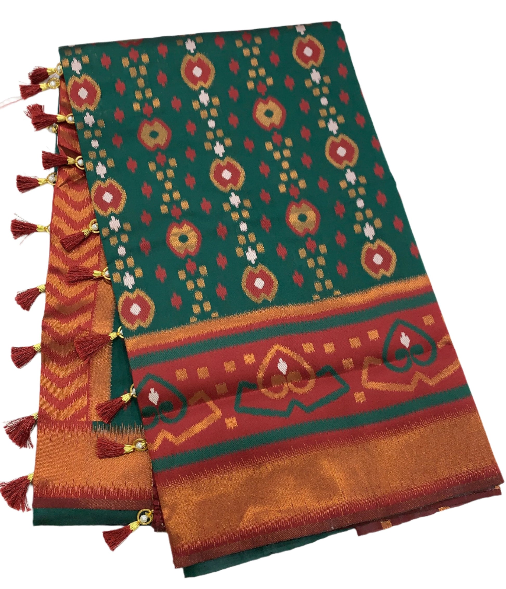 Pochampalli Semi Silk Saree Green Colour with Maroon Border