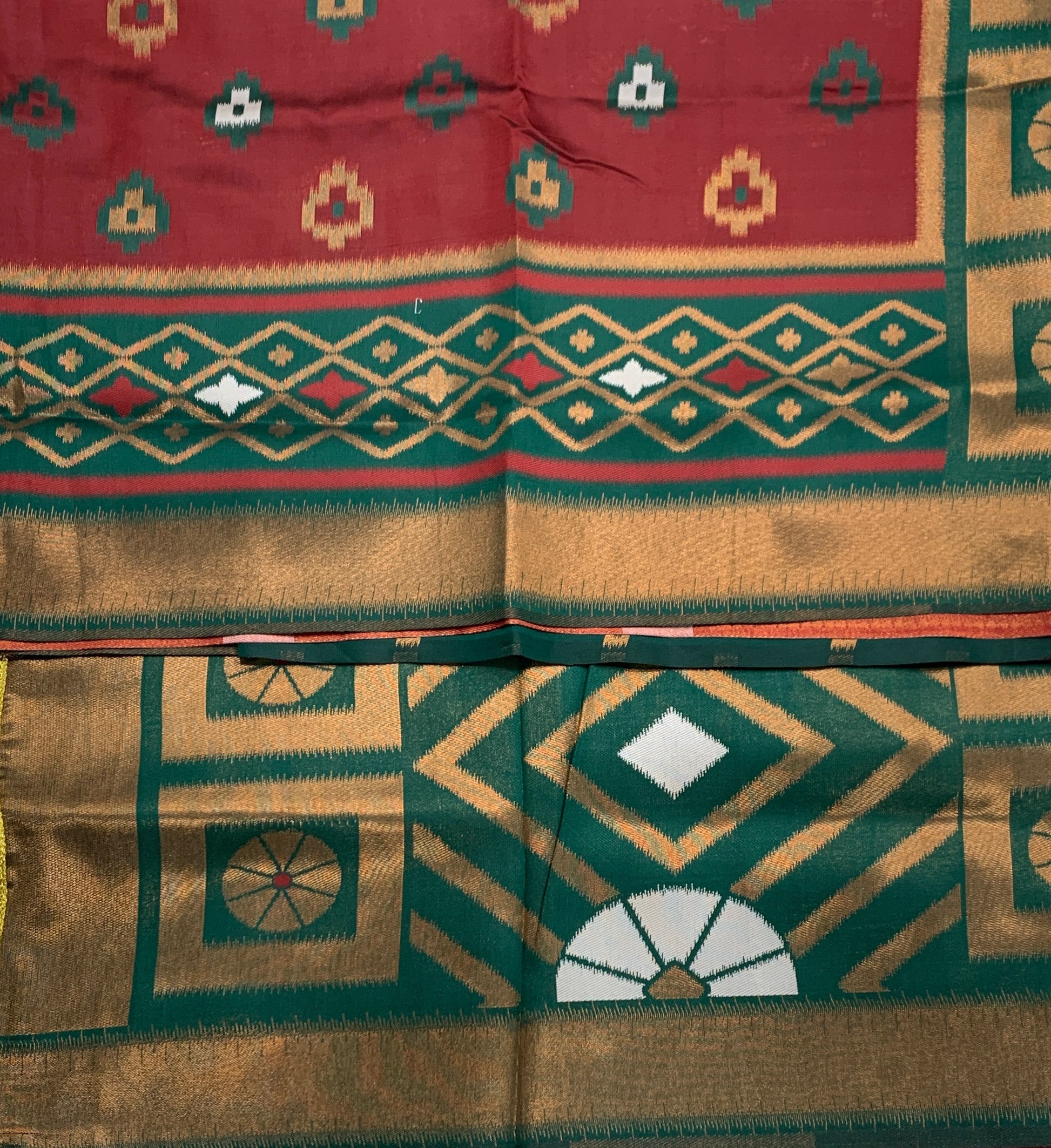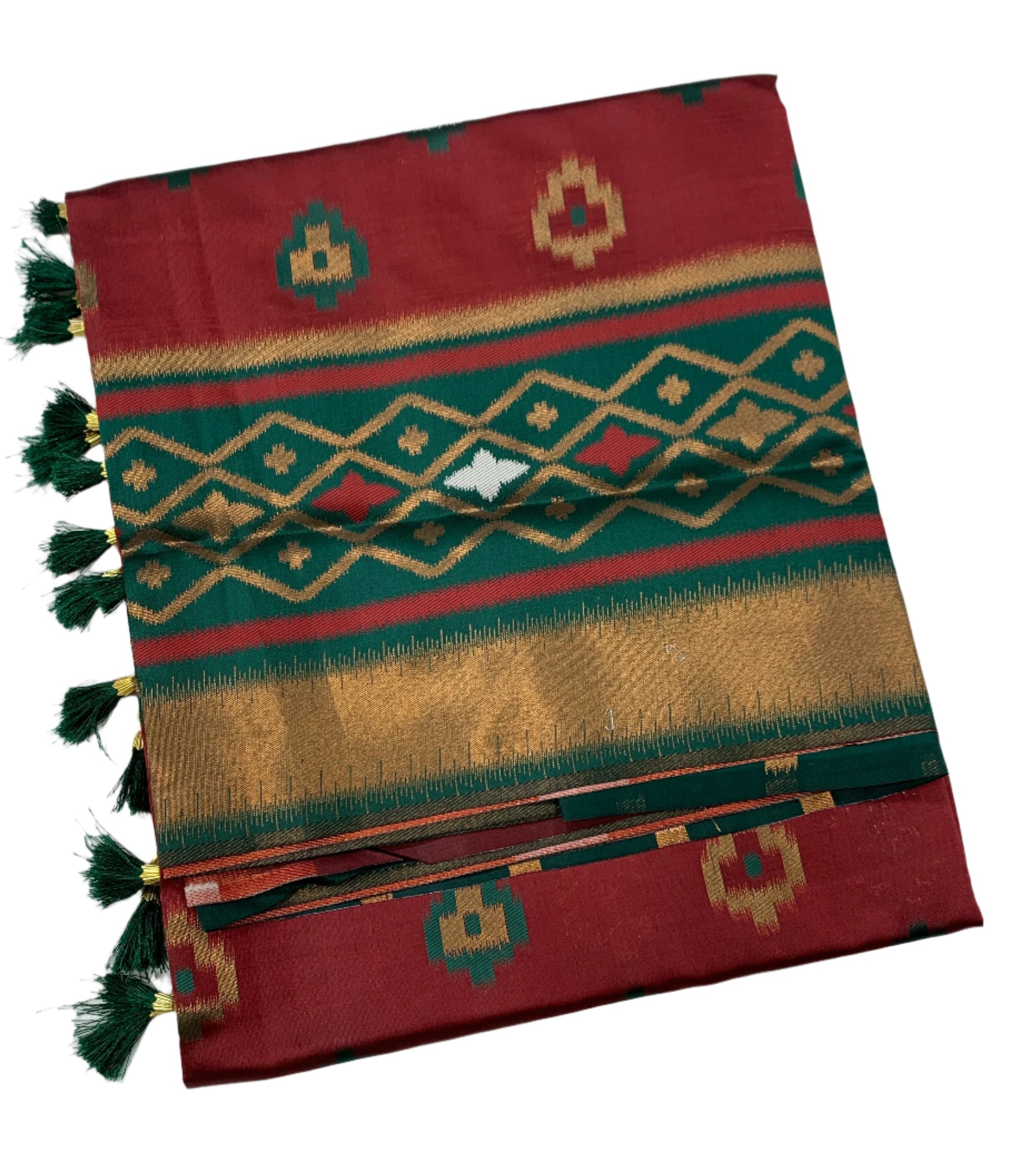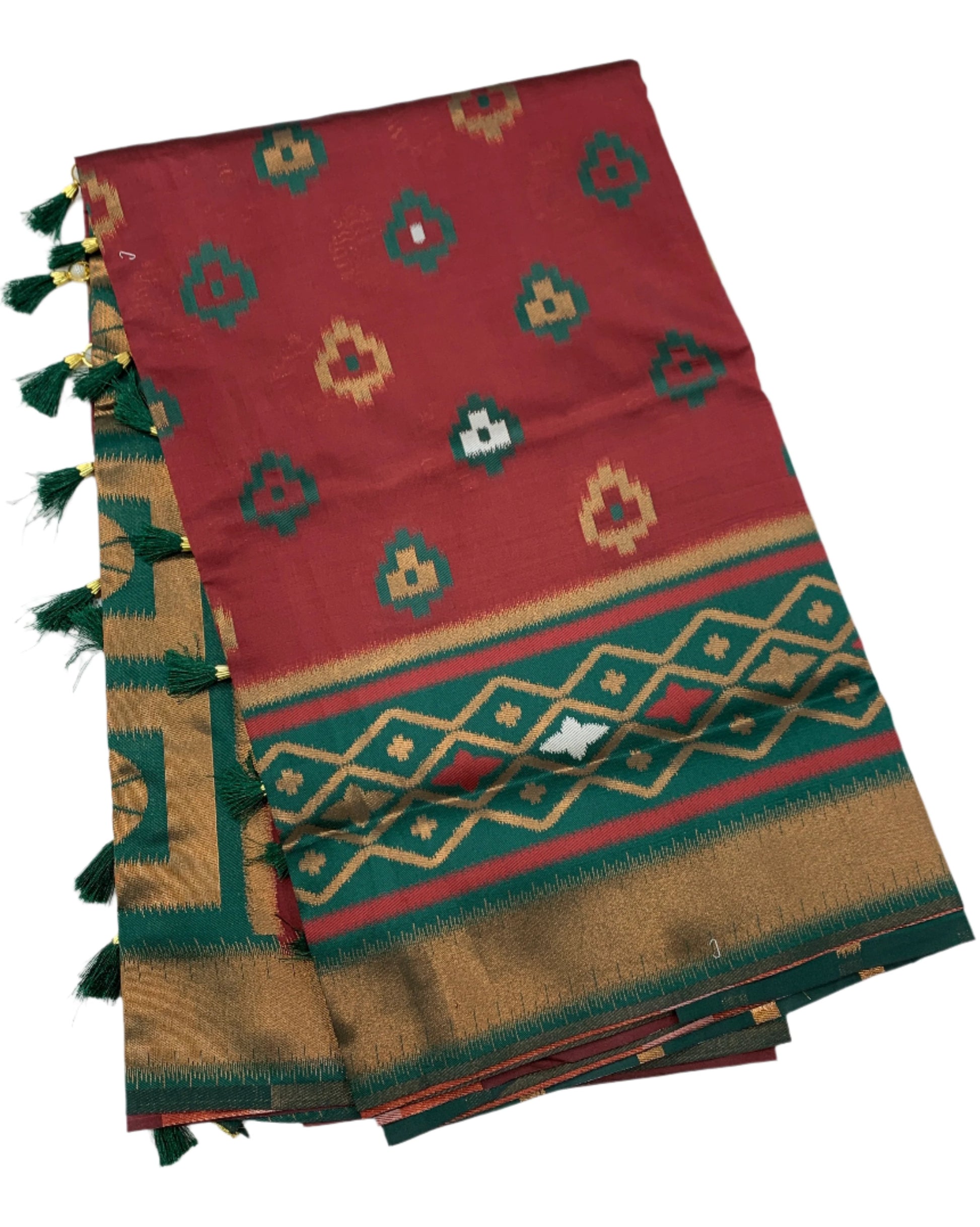Pochampalli Semi Silk Saree Maroon Colour with Green Border