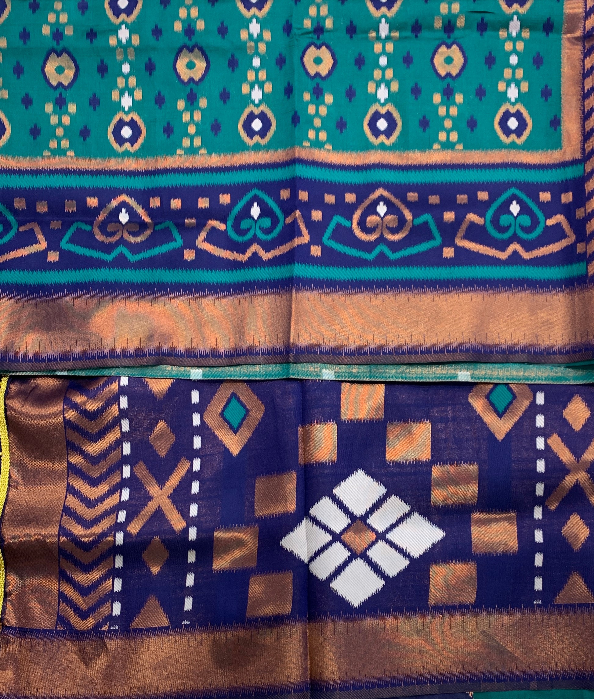 Pochampalli Semi Silk Saree Peacock Green Colour with Blue Border