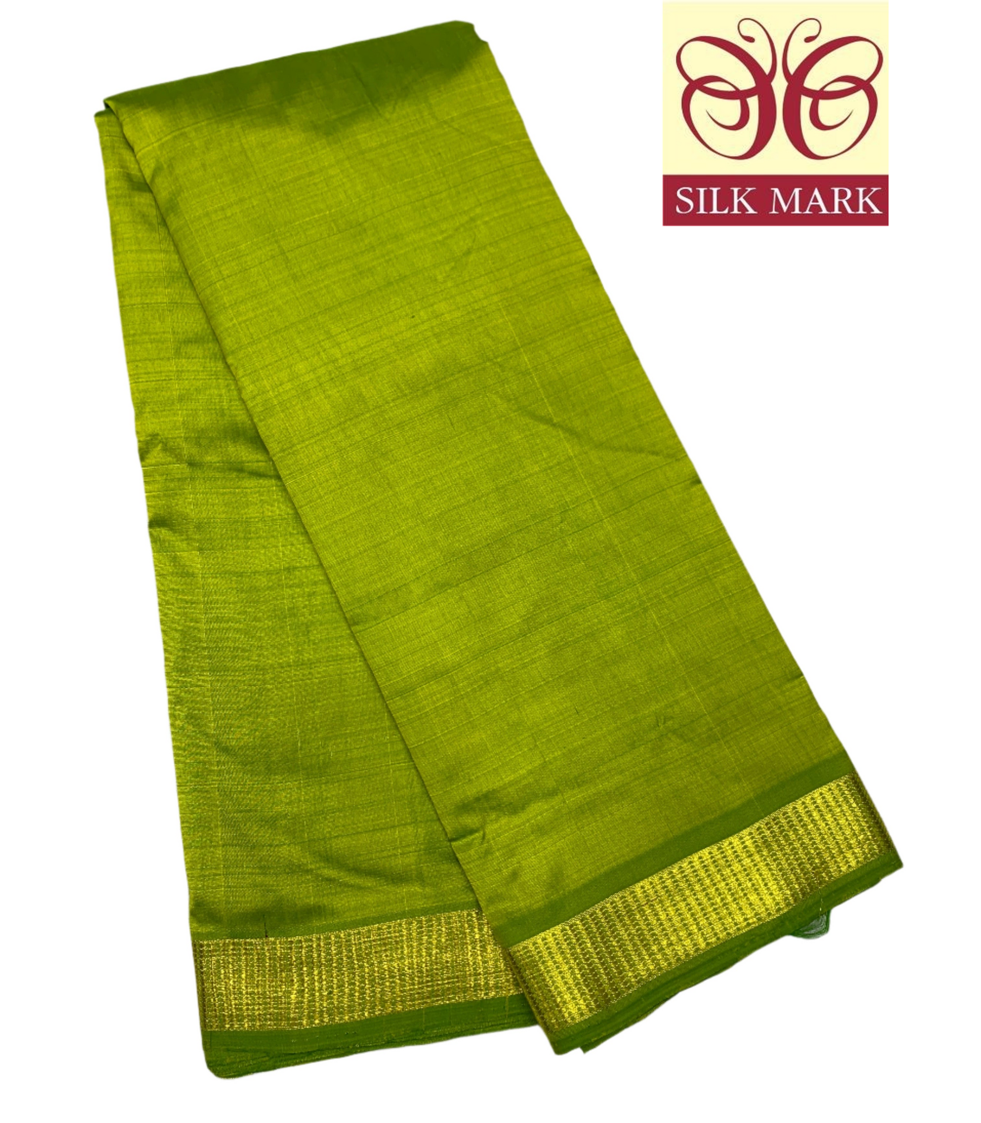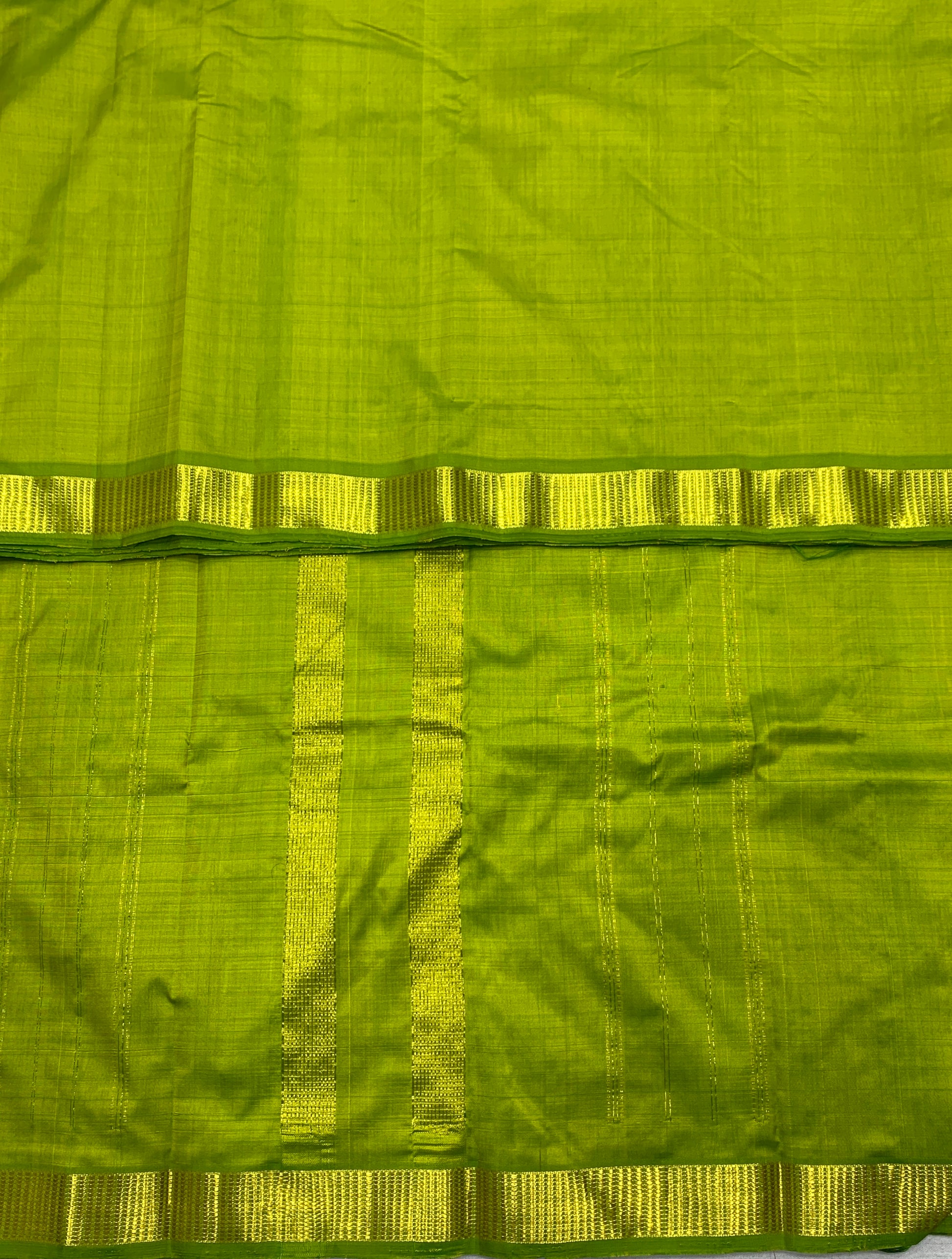Pure Kanchipuram Silk Parrot Green Colour with Golden Zari Border